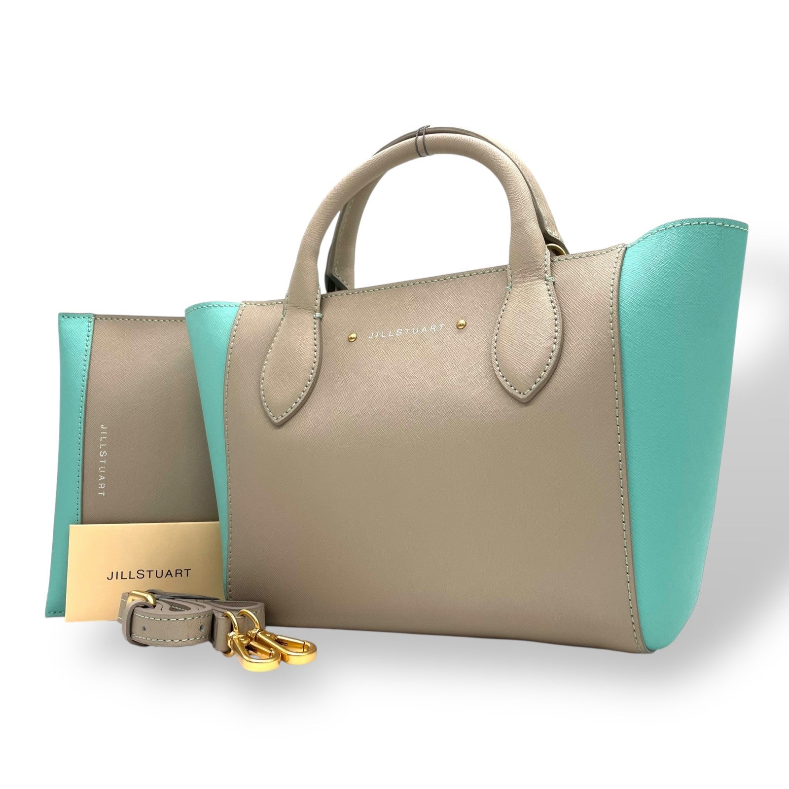 美品 ジルスチュアート JILLSTUART トートバッグ ショルダーバッグ 肩掛け 2WAY バイカラー ゴールド ポーチ付き ベージュ×ミントグリーン D2