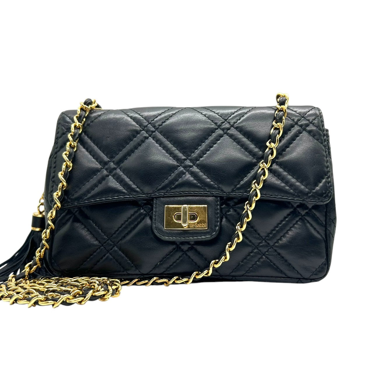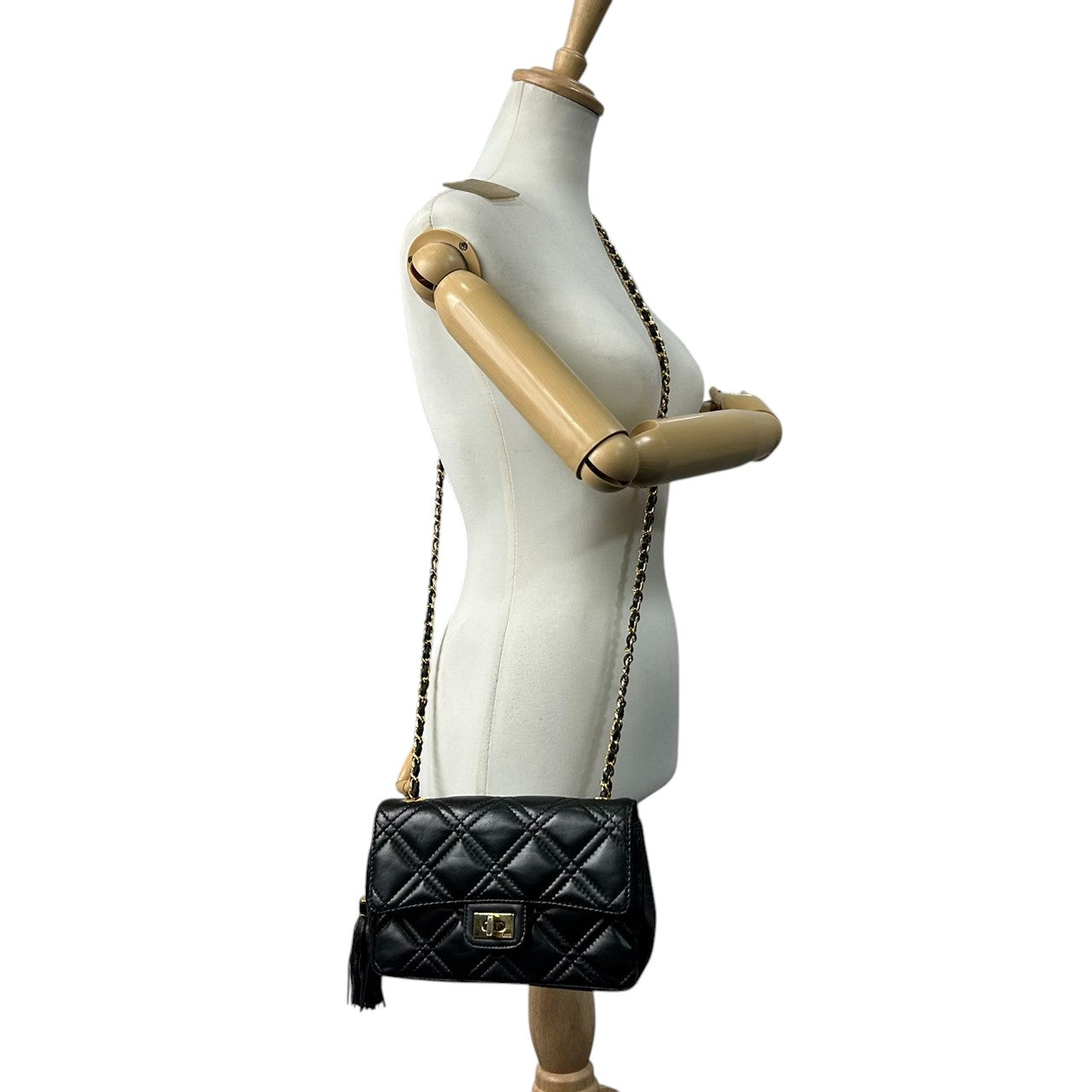 【美品】Le Sabi ルサビ チェーンショルダーバッグ キルティング マトラッセ風 レザー 本革 ブラック ゴールド金具 タッセル 斜め掛け可 クロスボディ レディース エレガント フォーマル パーティ 結婚式 二次会 お呼ばれ 高級感 U8