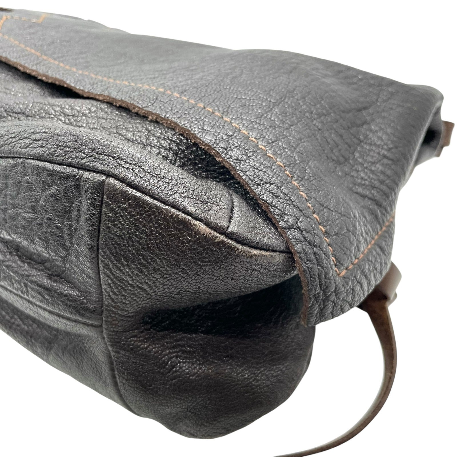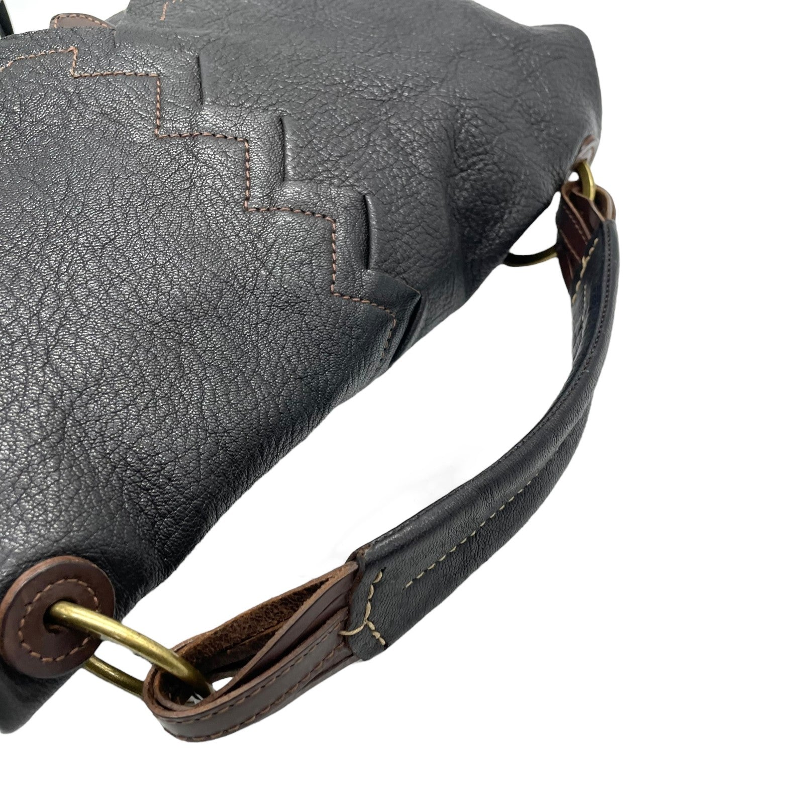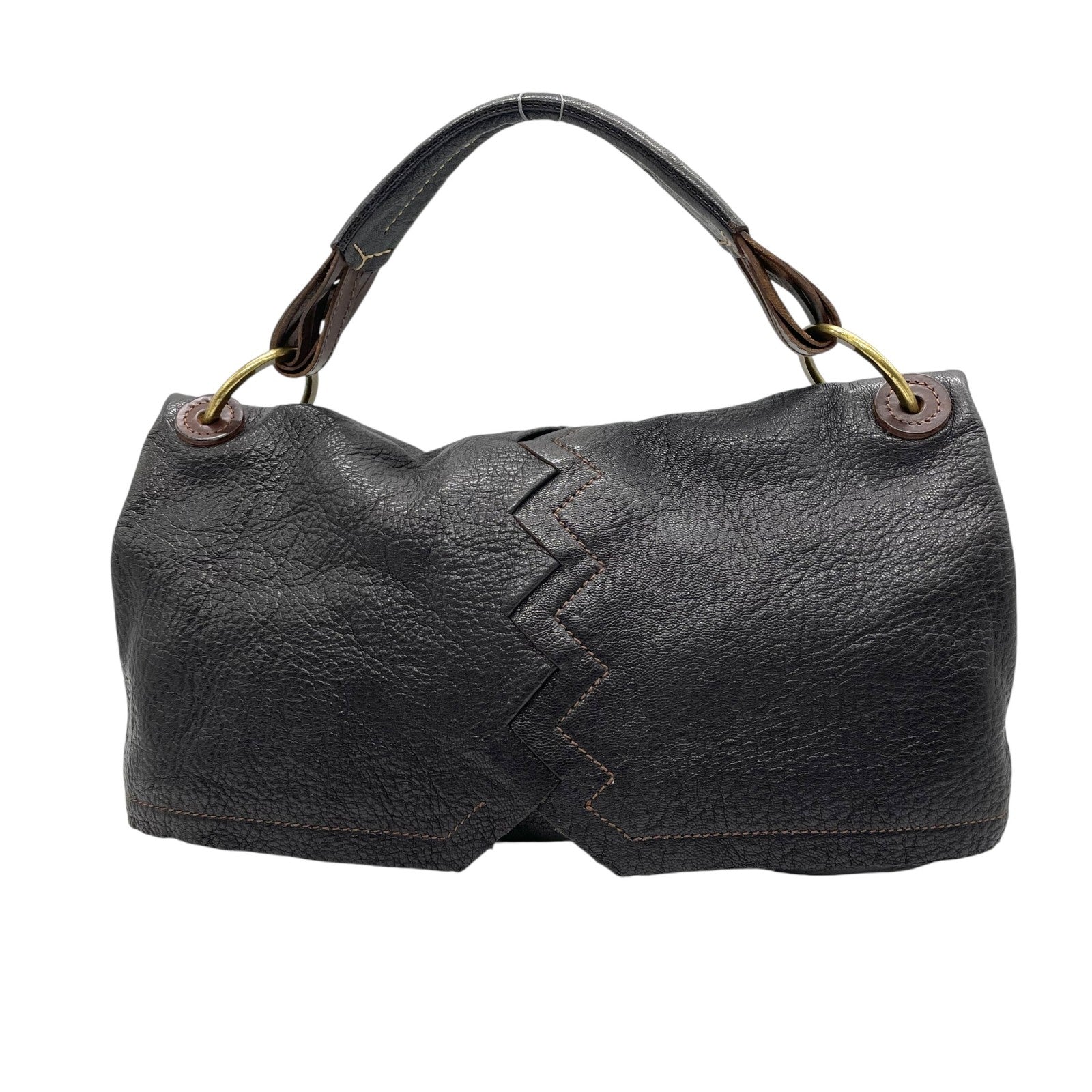 美品 genten ゲンテン ハンドバッグ 茶 ブラウン レザー ゴールド金具 ジグザグステッチ 横長 Y2K デザイン 手提げ コンパクト レディース バッグ U12