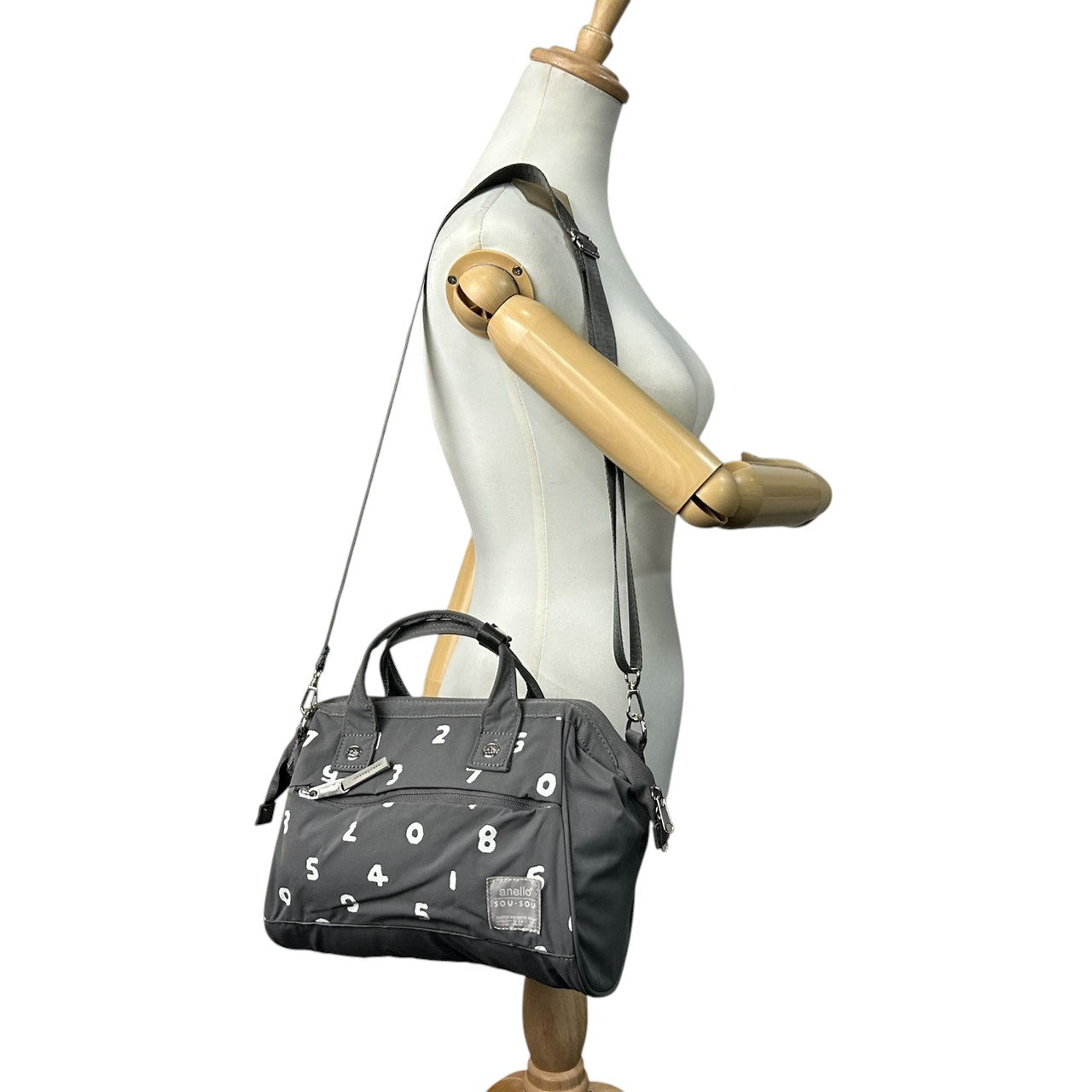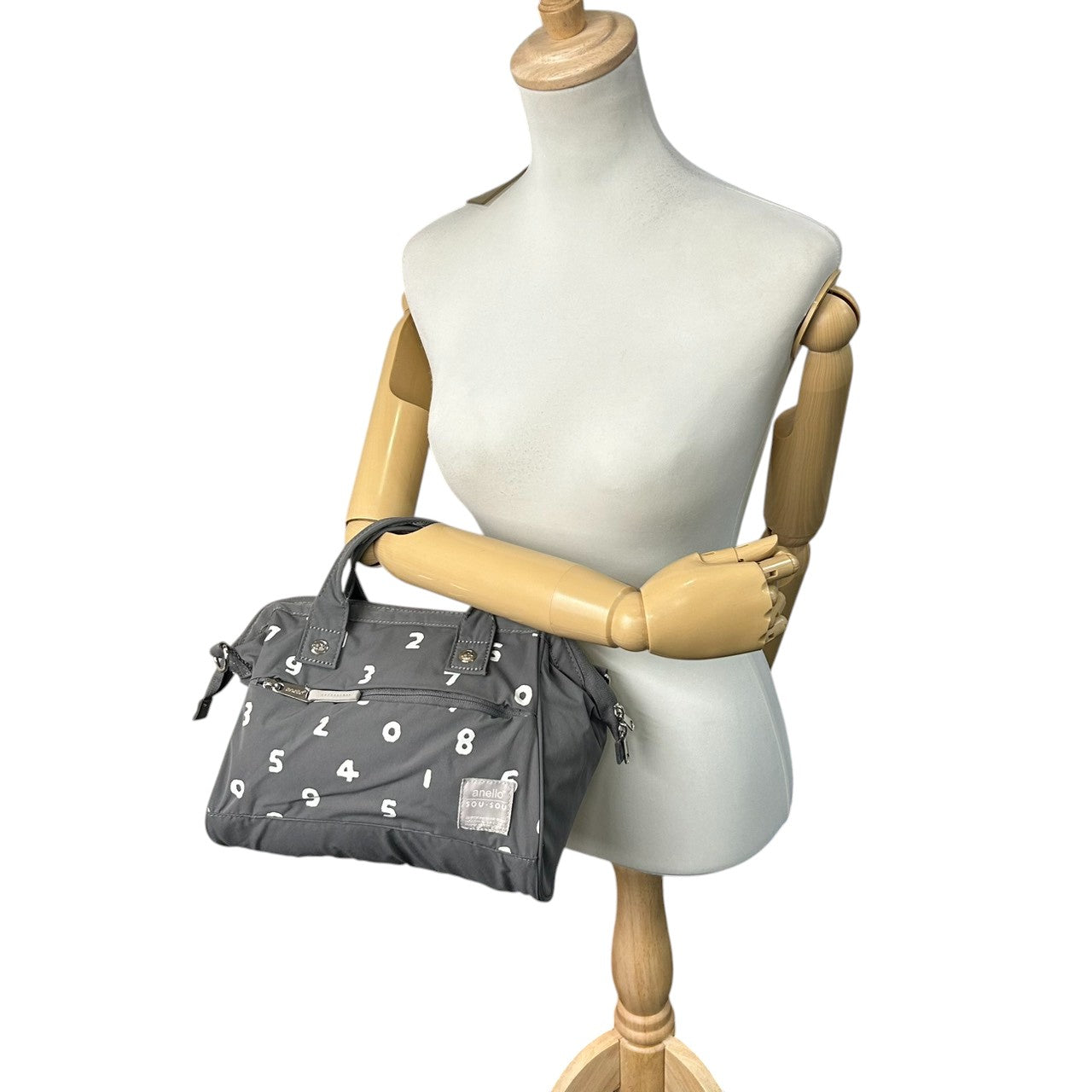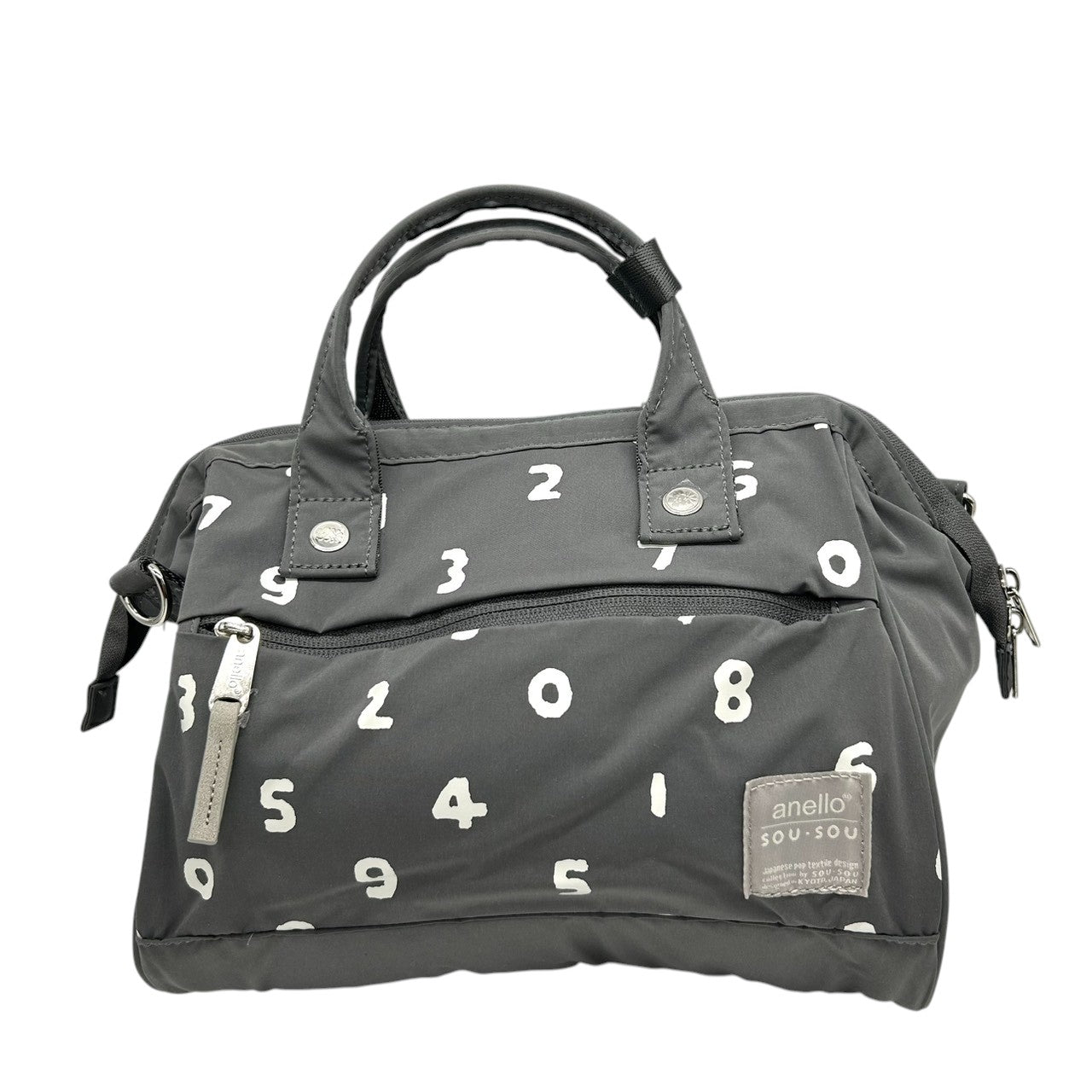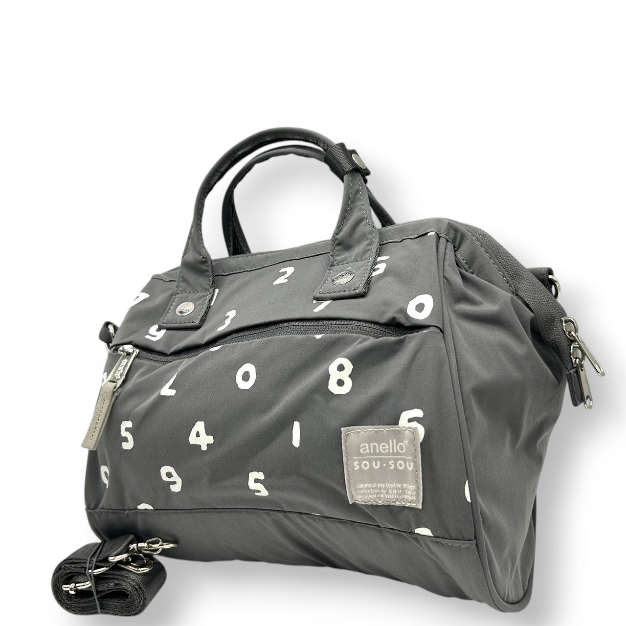 【ほぼ新品】anello アネロ×SOU SOU コラボ 2WAY 口金ミニボストン ショルダーバッグ ハンドバッグ 数字柄 ナイロン グレー 斜め掛け可 大容量 軽量 レディース メンズ 旅行 デイリーユース 京都 s32