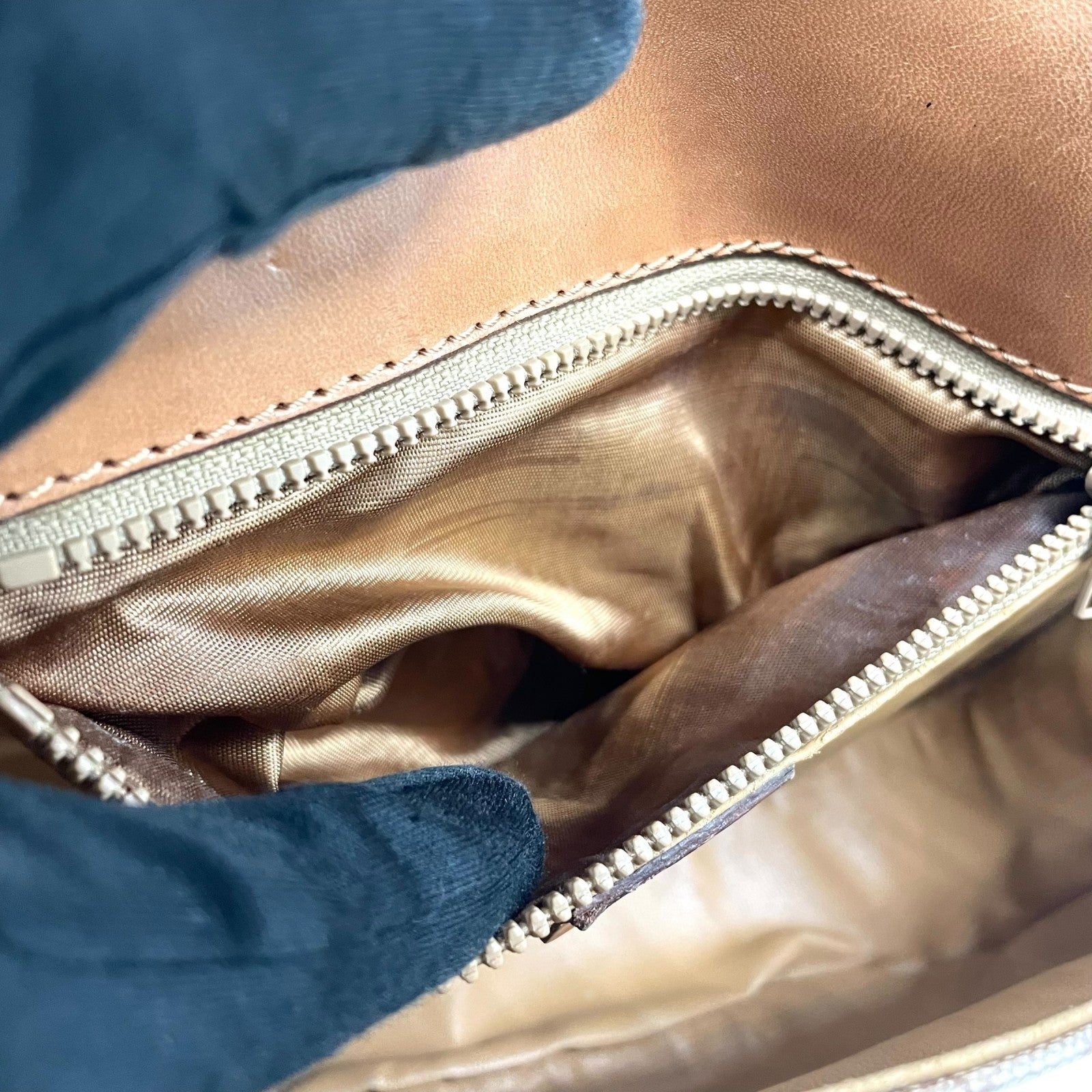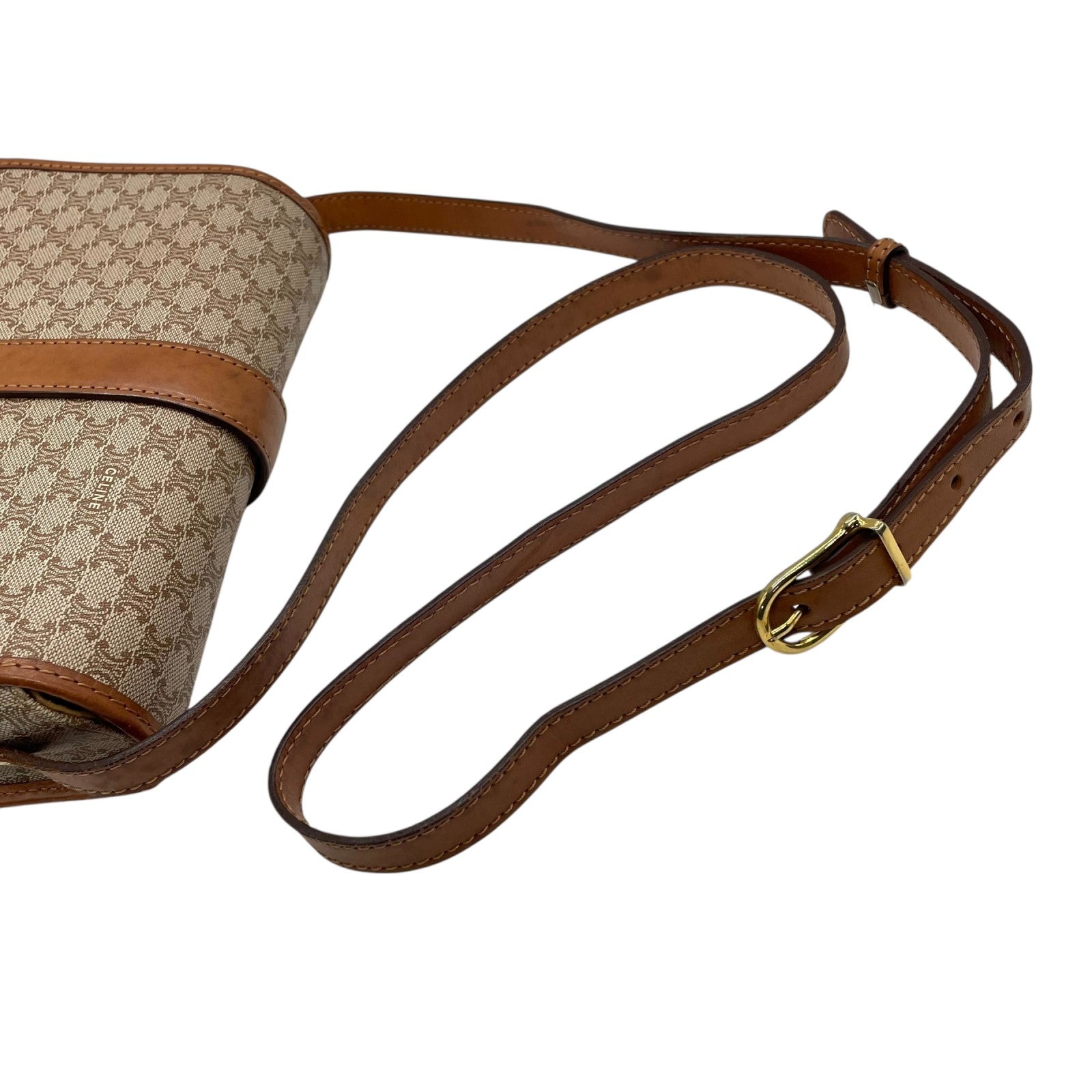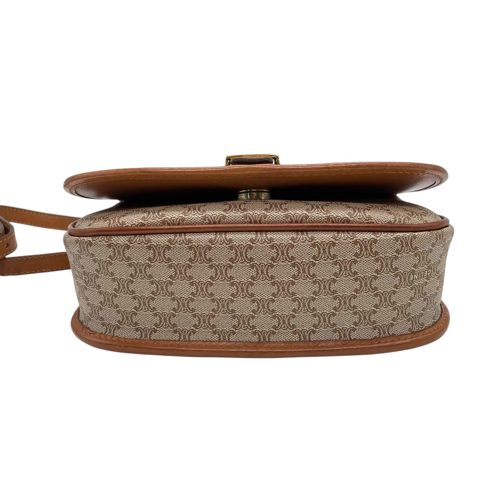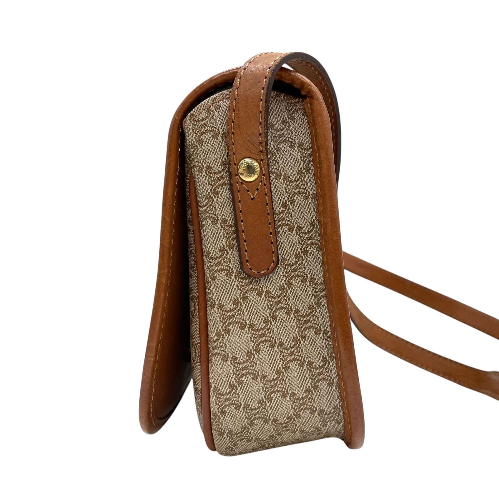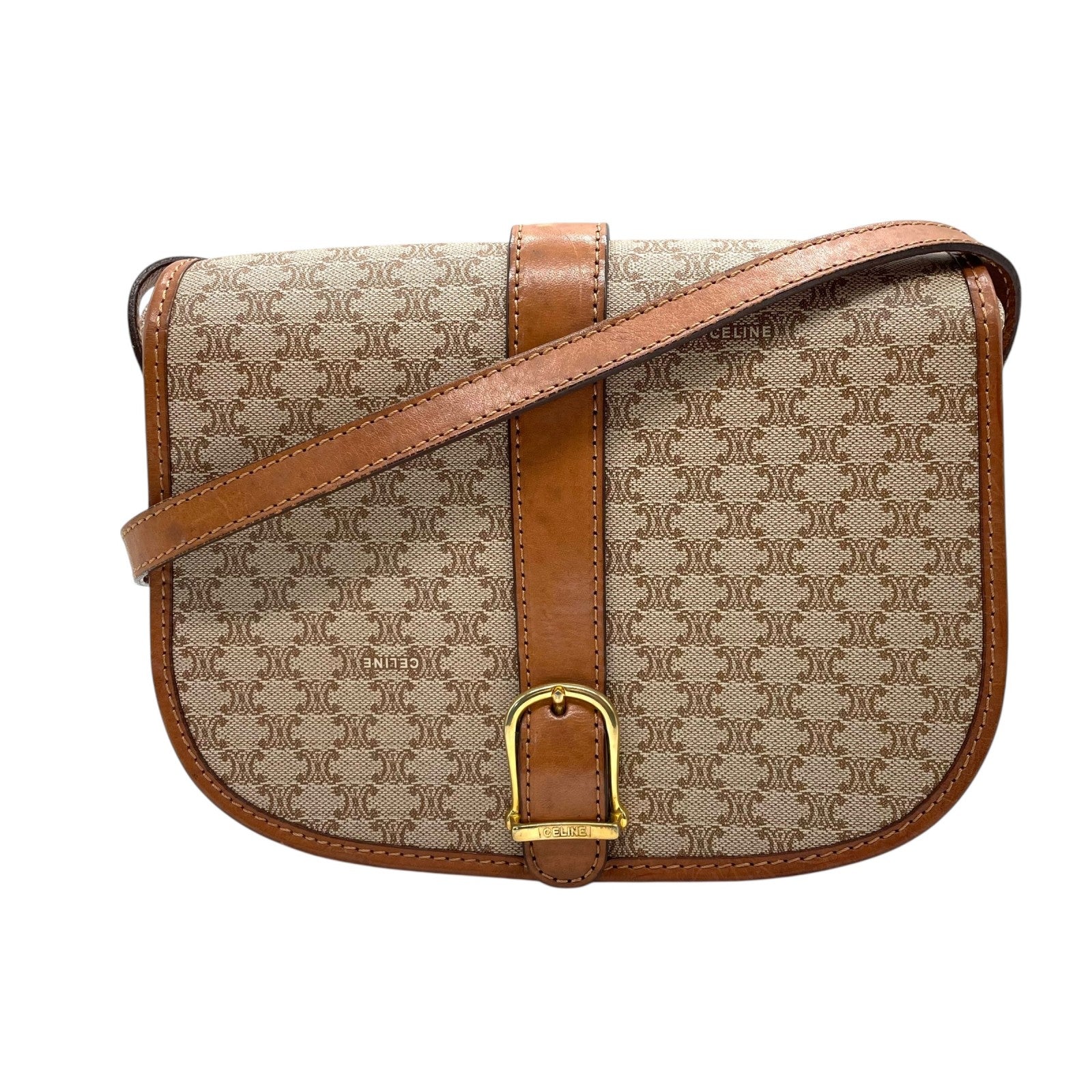 美品 CELINE オールドセリーヌ マカダム柄 トリオンフ ショルダーバッグ PVC レザー ベージュ ブラウン ゴールド金具 斜め掛け可 フラップ開閉 ヴィンテージ レディース K11