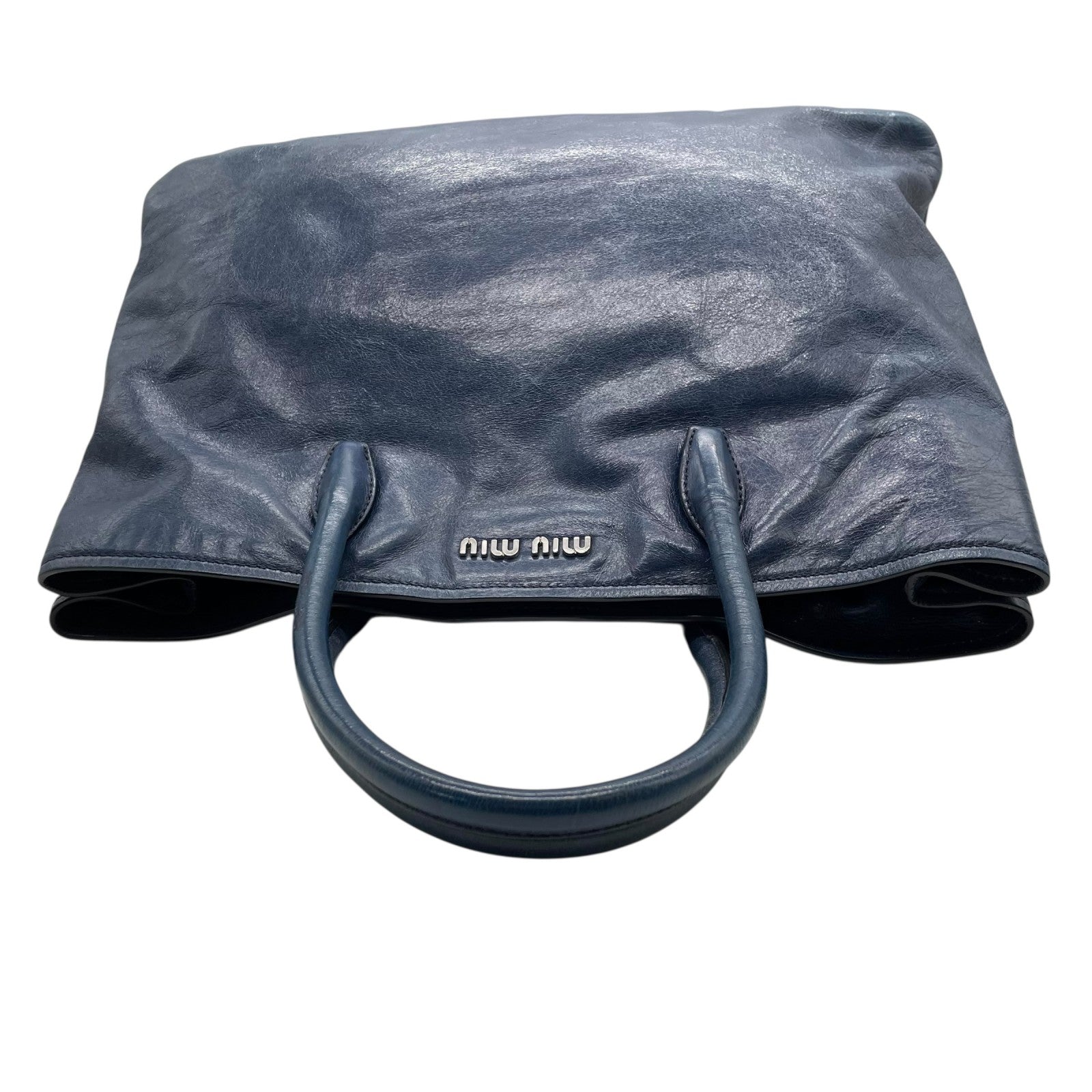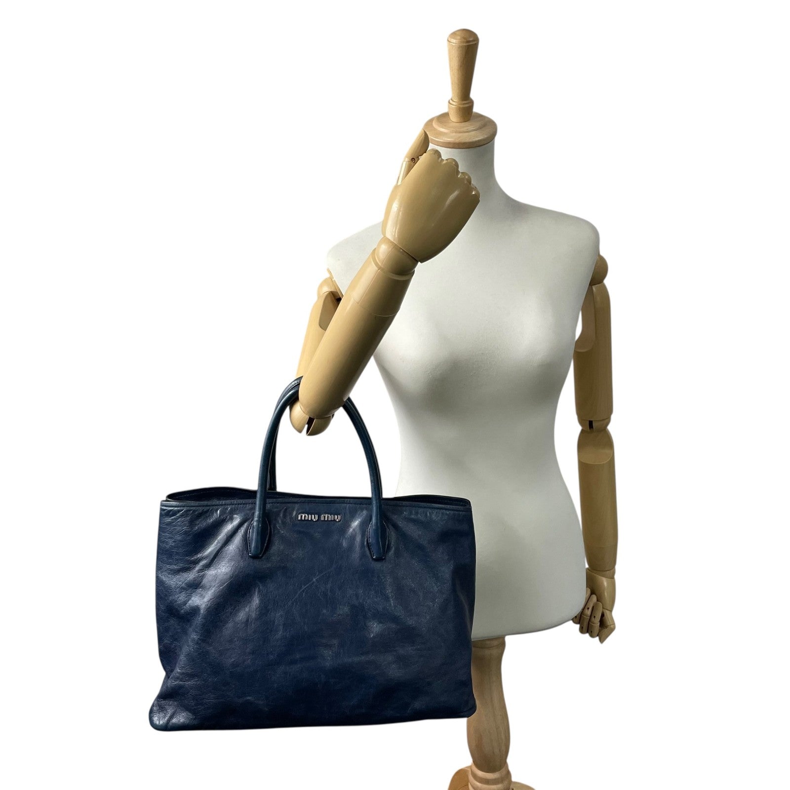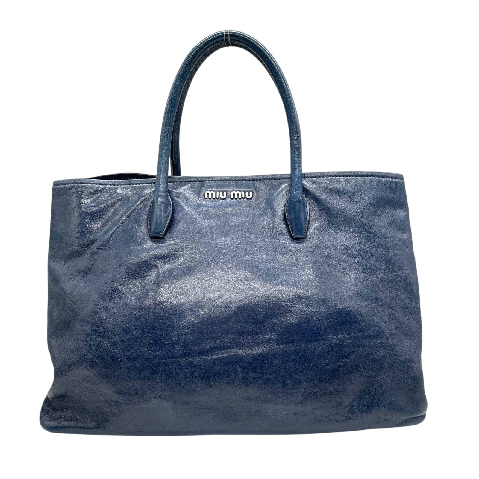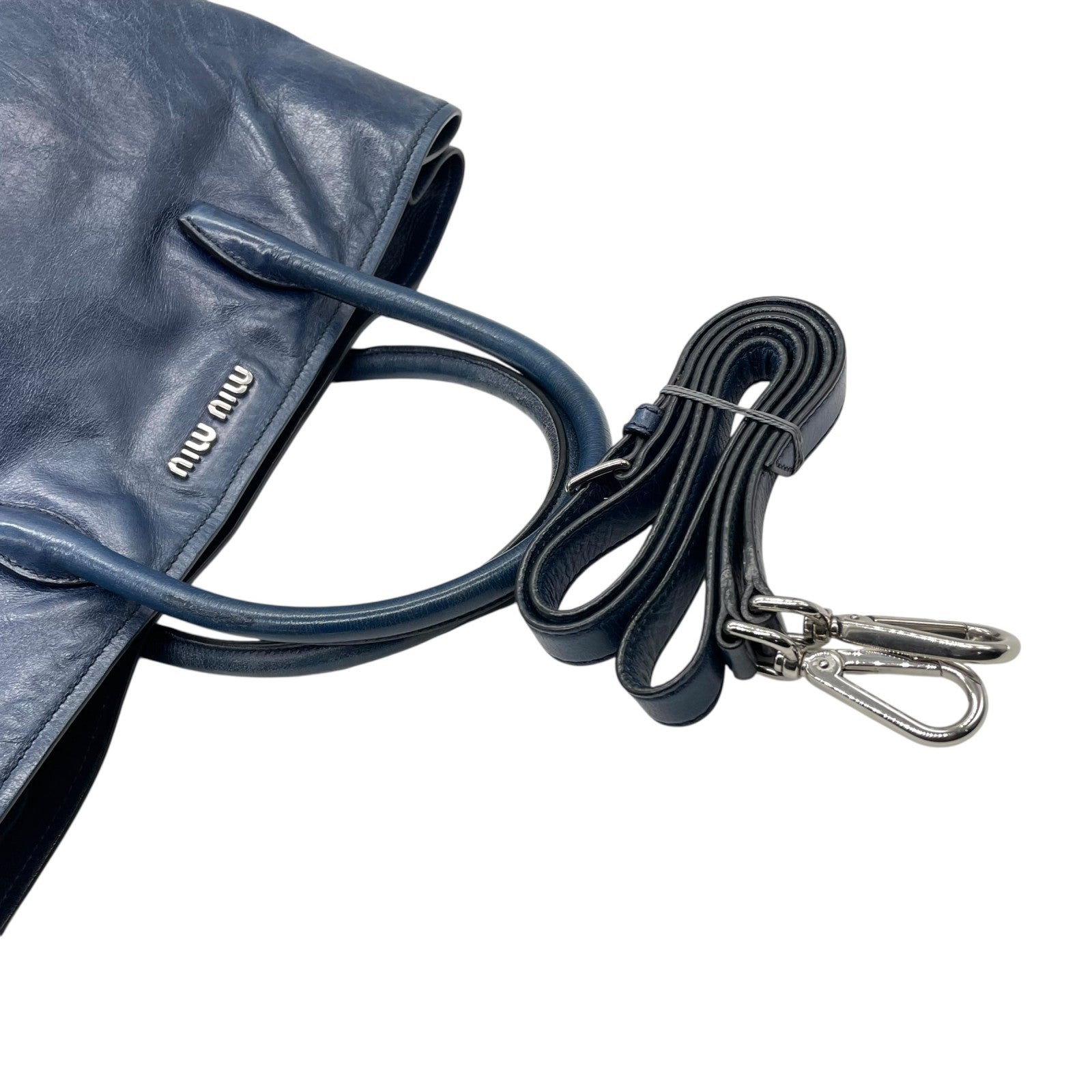 ミュウミュウ miumiu トートバッグ ショルダーバッグ ネイビー 紺 2way レザー 手提げ 斜め掛け可 シルバー金具 ロゴ レディース K10 archive 002 Y2K