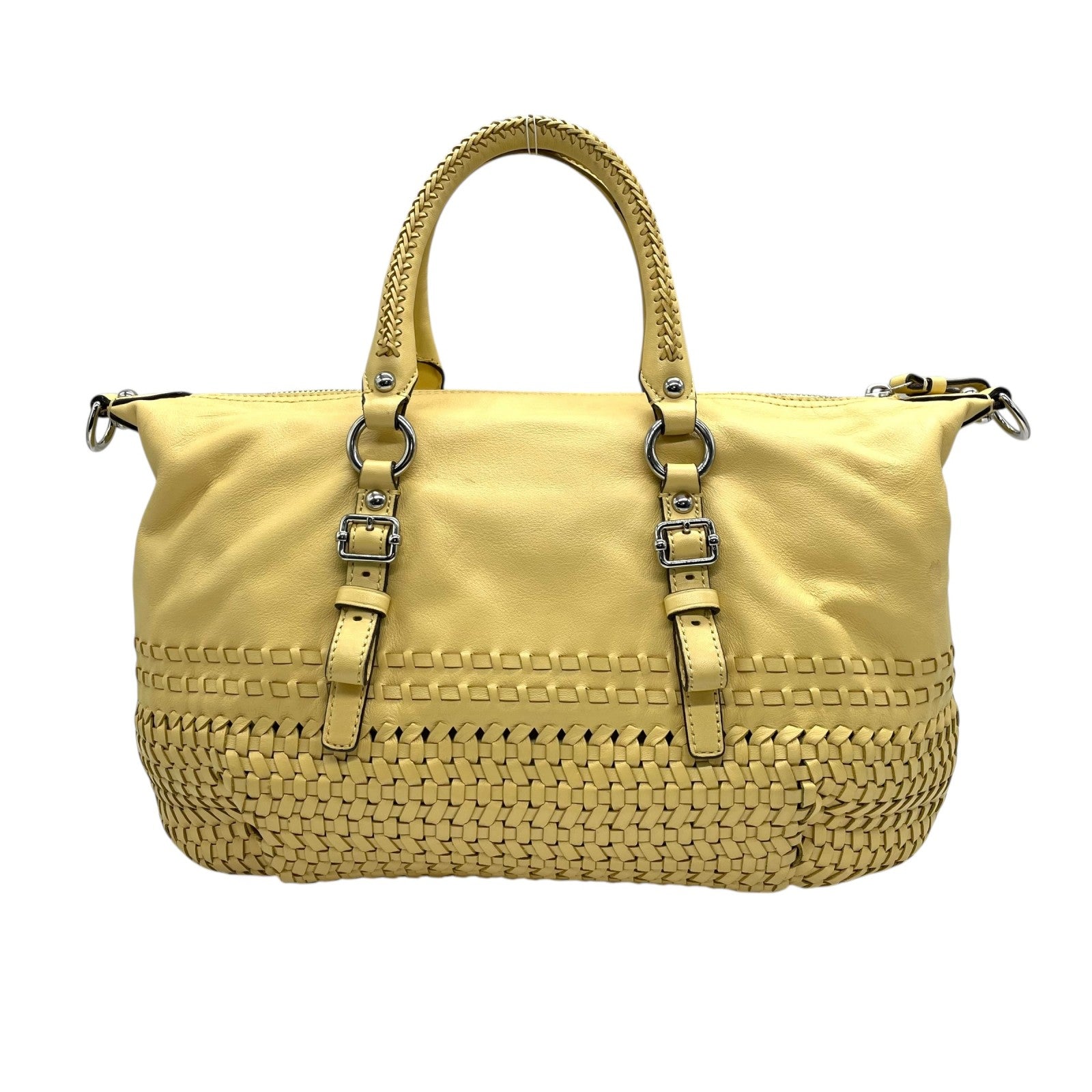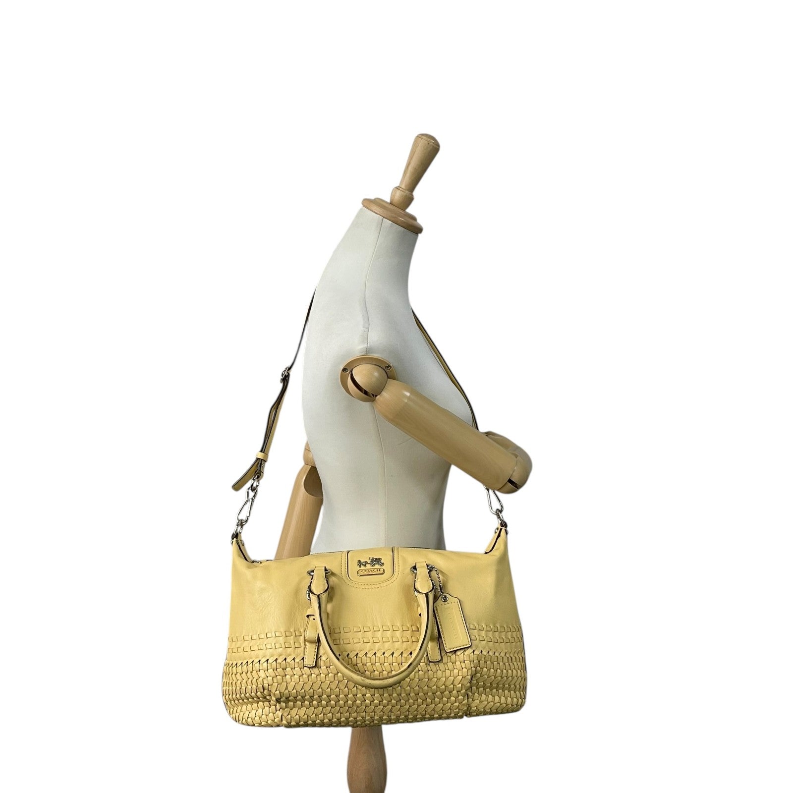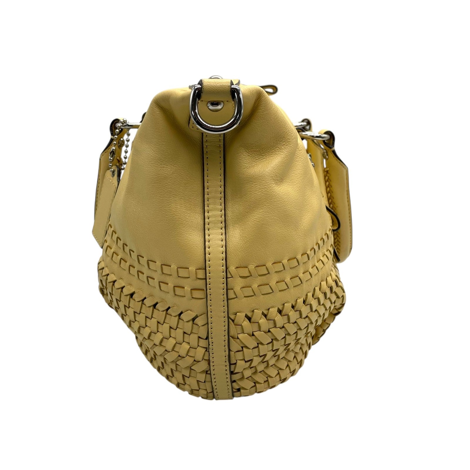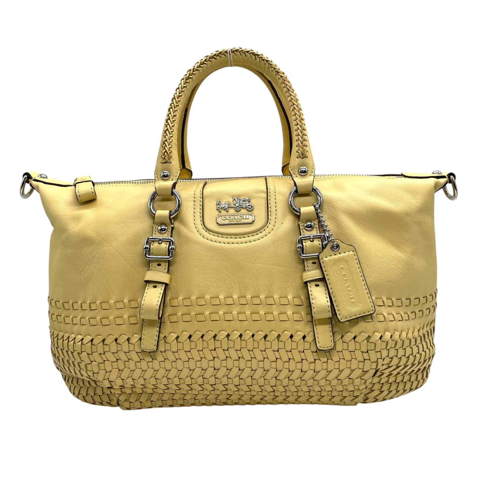 コーチ COACH 2WAY ボストンバッグ ハンドバッグ ショルダーバッグ 肩掛け 23342 イントレチャート 編み込みレザー 黄色 イエロー シルバー金具 チャーム付き U16