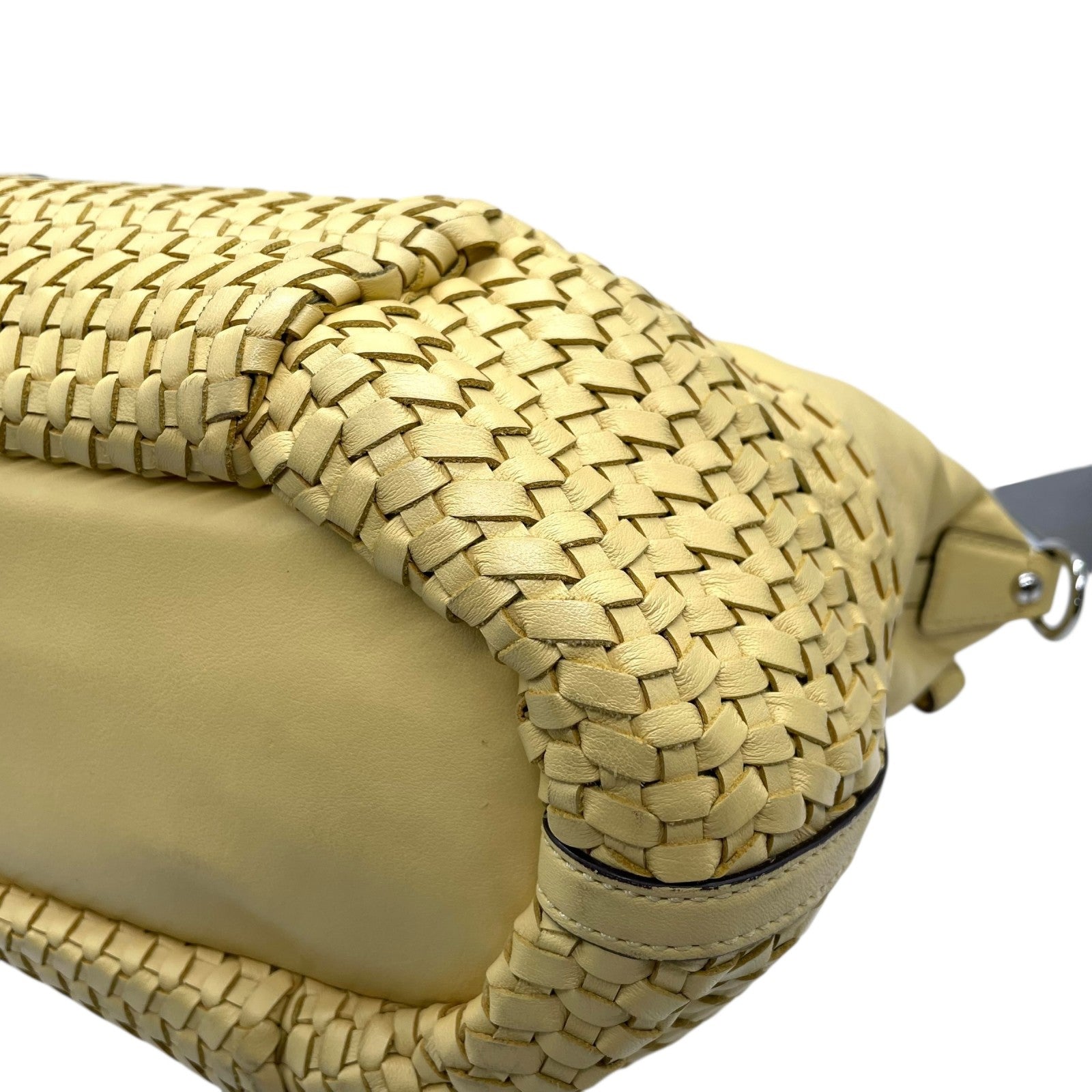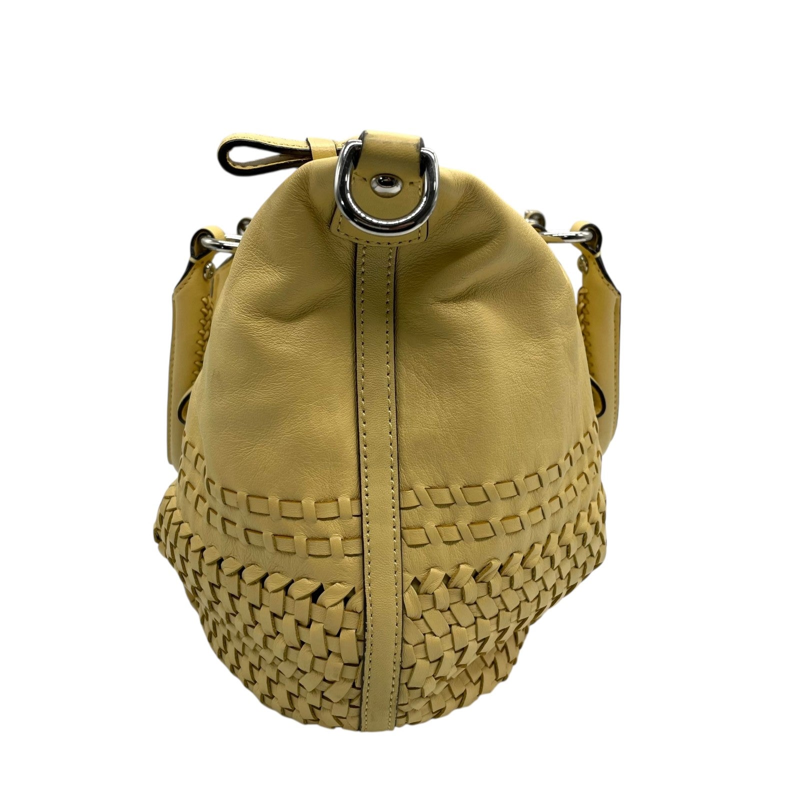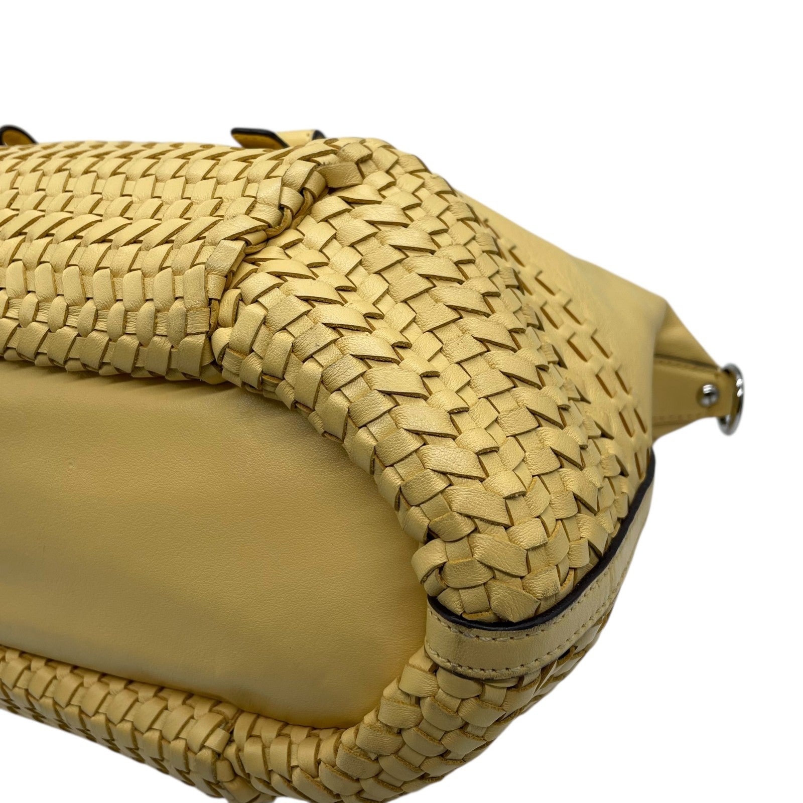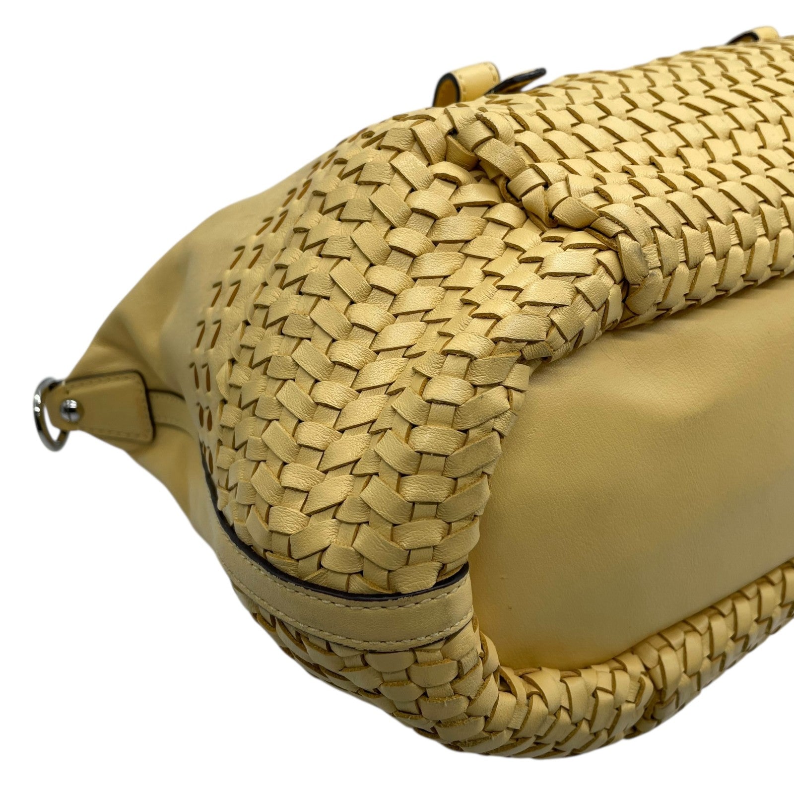 コーチ COACH 2WAY ボストンバッグ ハンドバッグ ショルダーバッグ 肩掛け 23342 イントレチャート 編み込みレザー 黄色 イエロー シルバー金具 チャーム付き U16