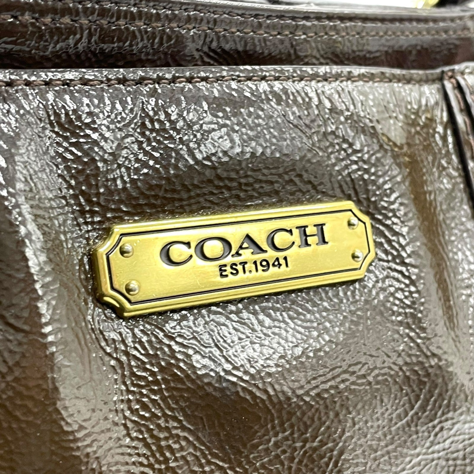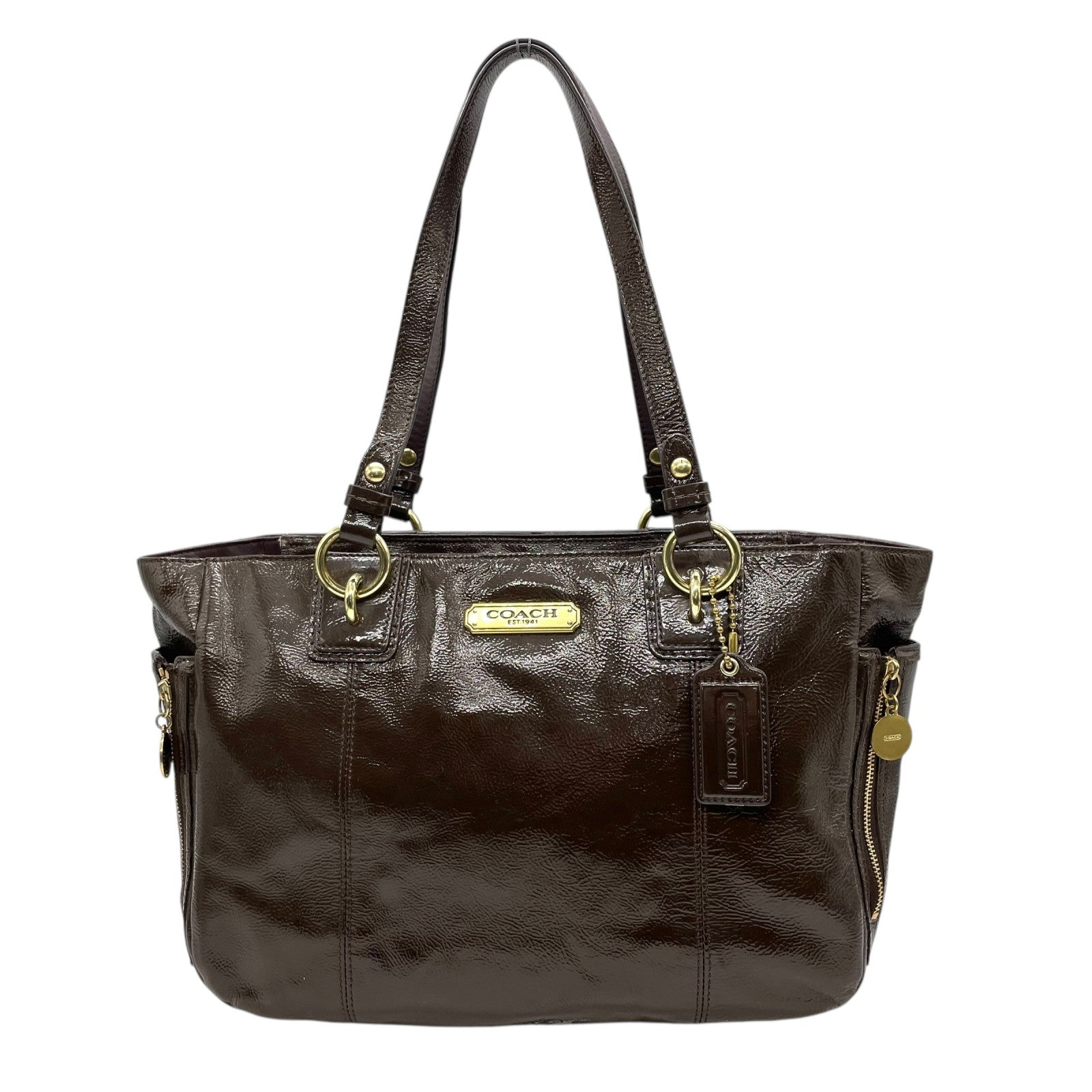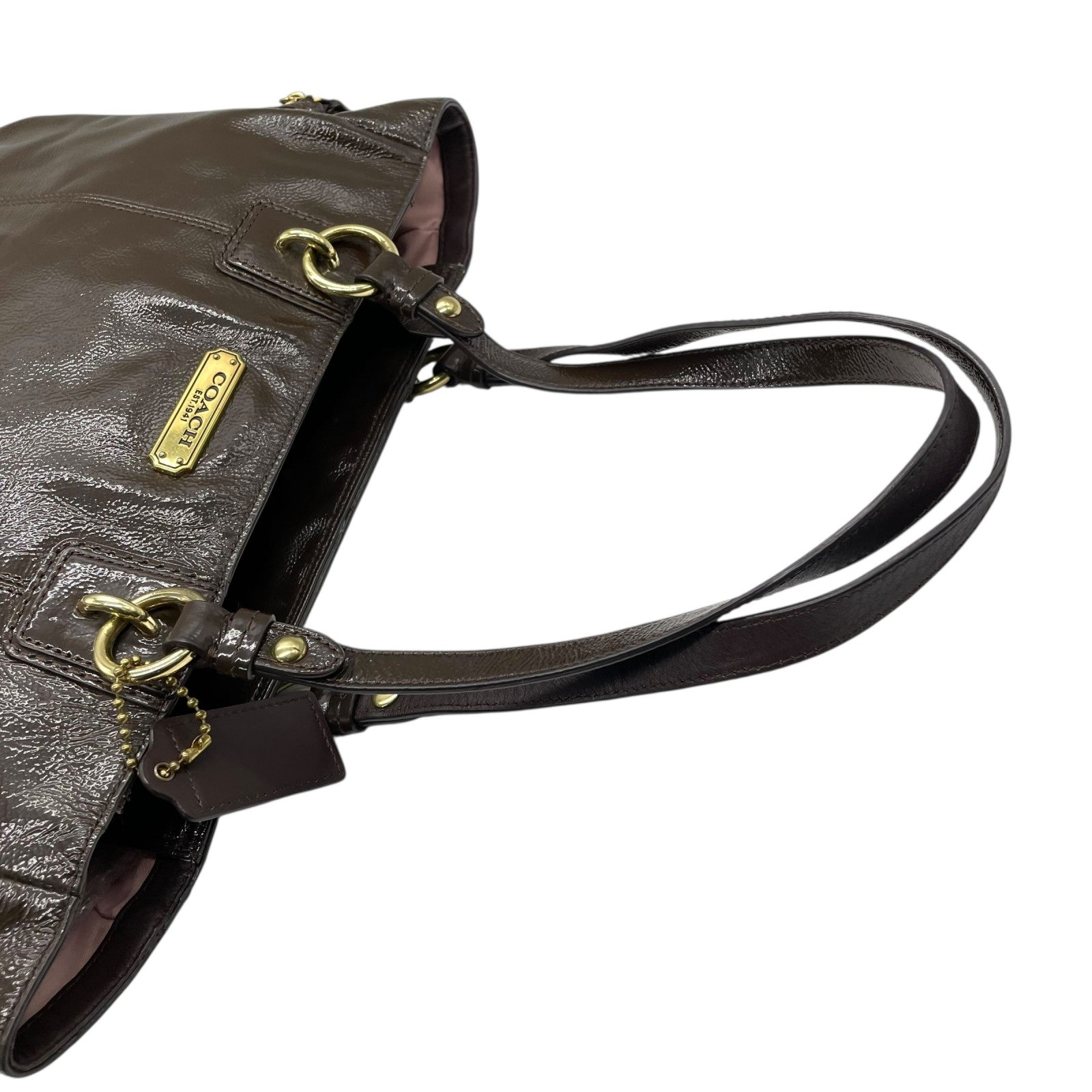 コーチ COACH トートバッグ パテントレザー F20431 茶色 ブラウン 金金具 ゴールド金具 チャーム付き A4対応 通勤 通学 S93