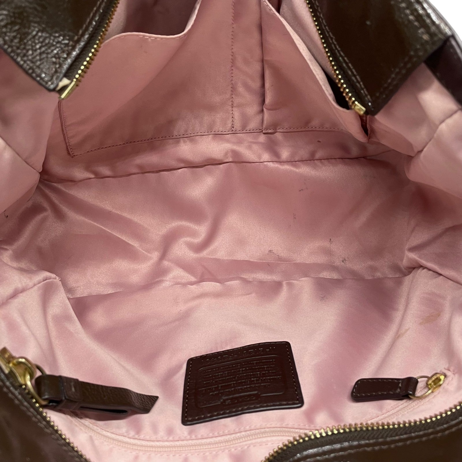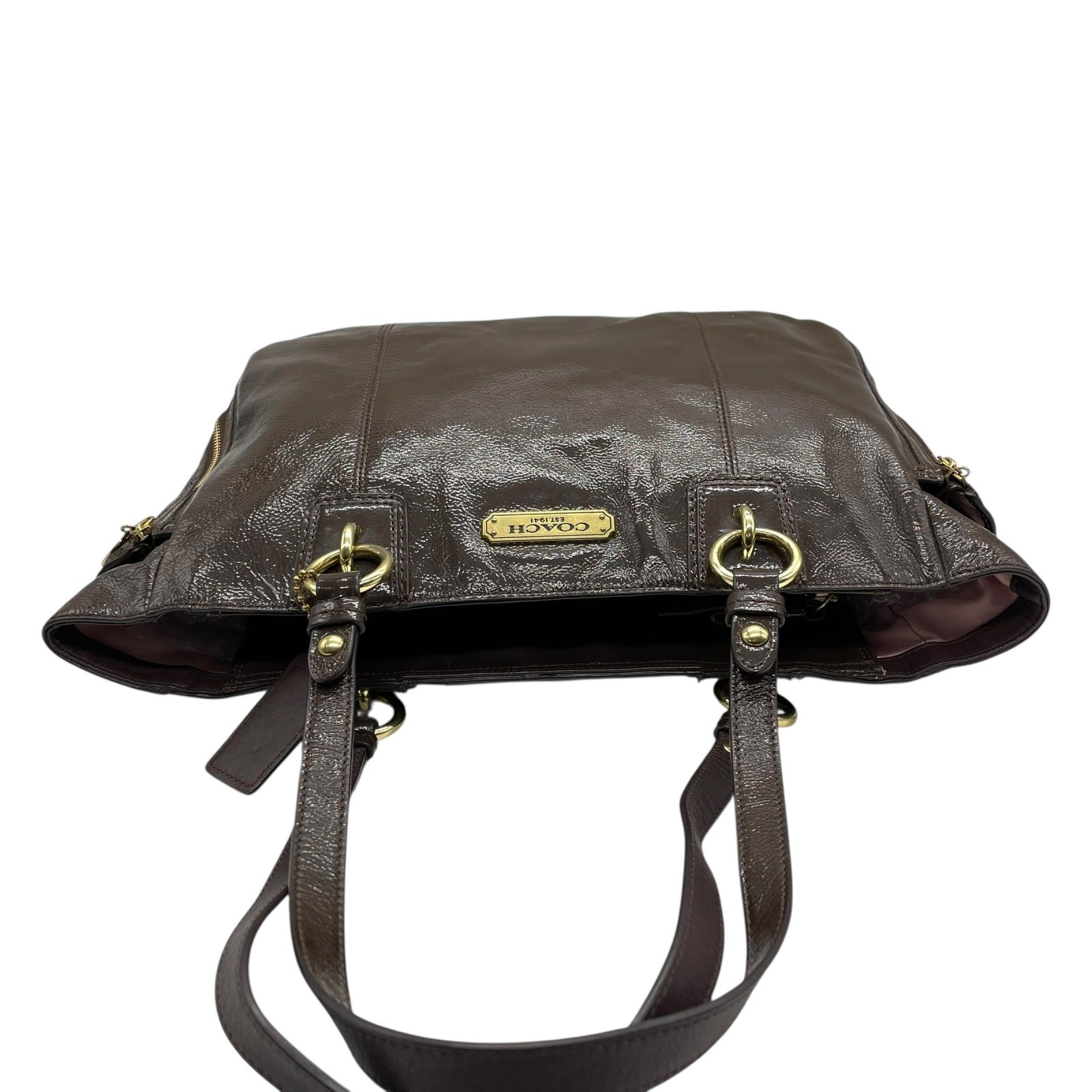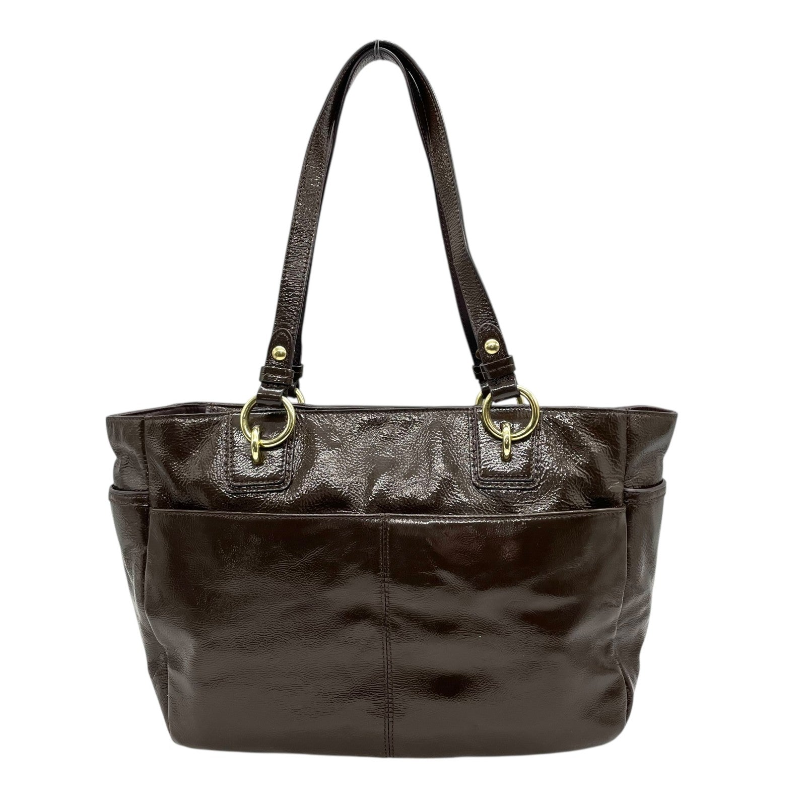 コーチ COACH トートバッグ パテントレザー F20431 茶色 ブラウン 金金具 ゴールド金具 チャーム付き A4対応 通勤 通学 S93