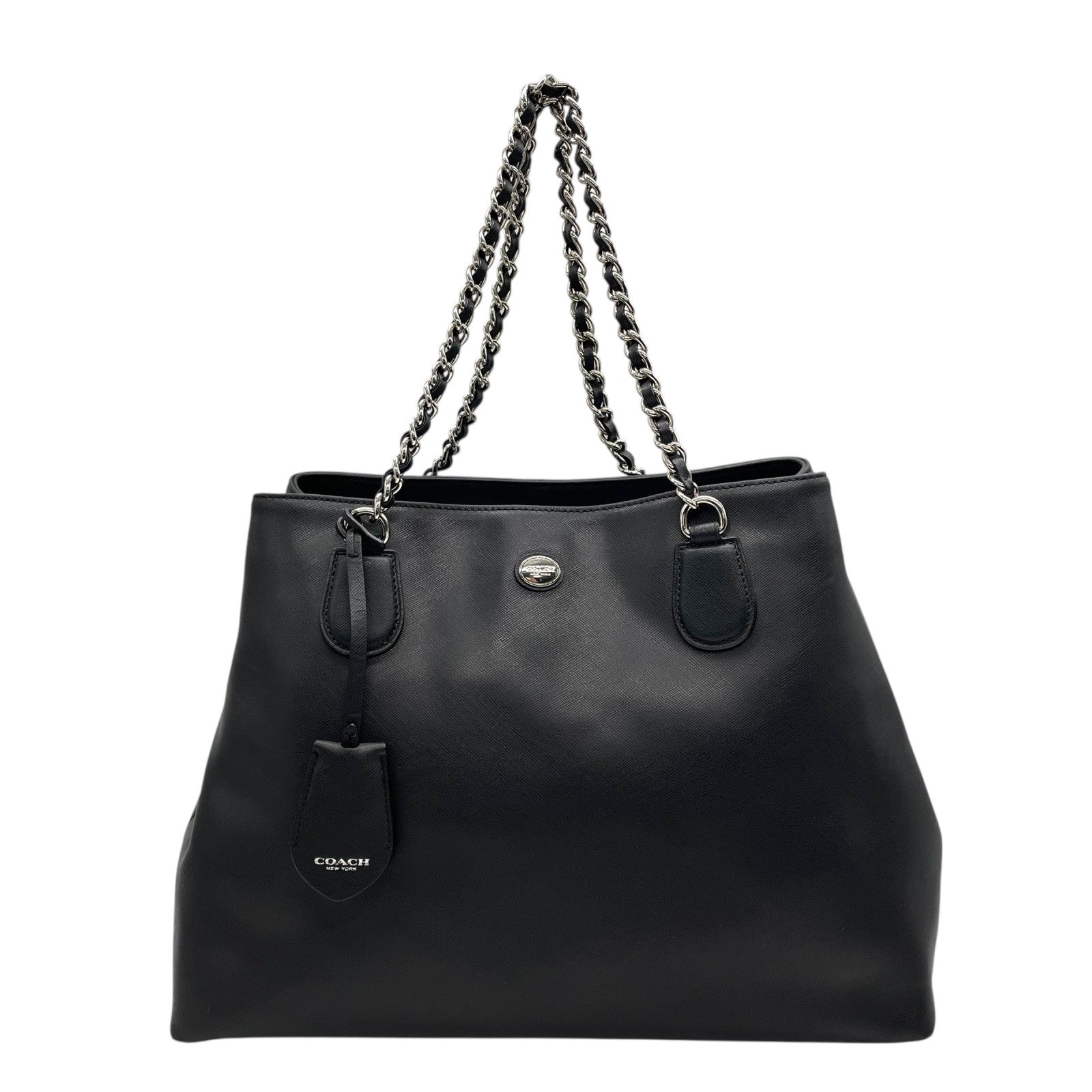 コーチ COACH トートバッグ チェーンハンドル ショルダー 肩掛け ロングハンドル F31752 黒 ブラック レザー クロシェット シルバー金具 A4対応 通勤 通学 U12