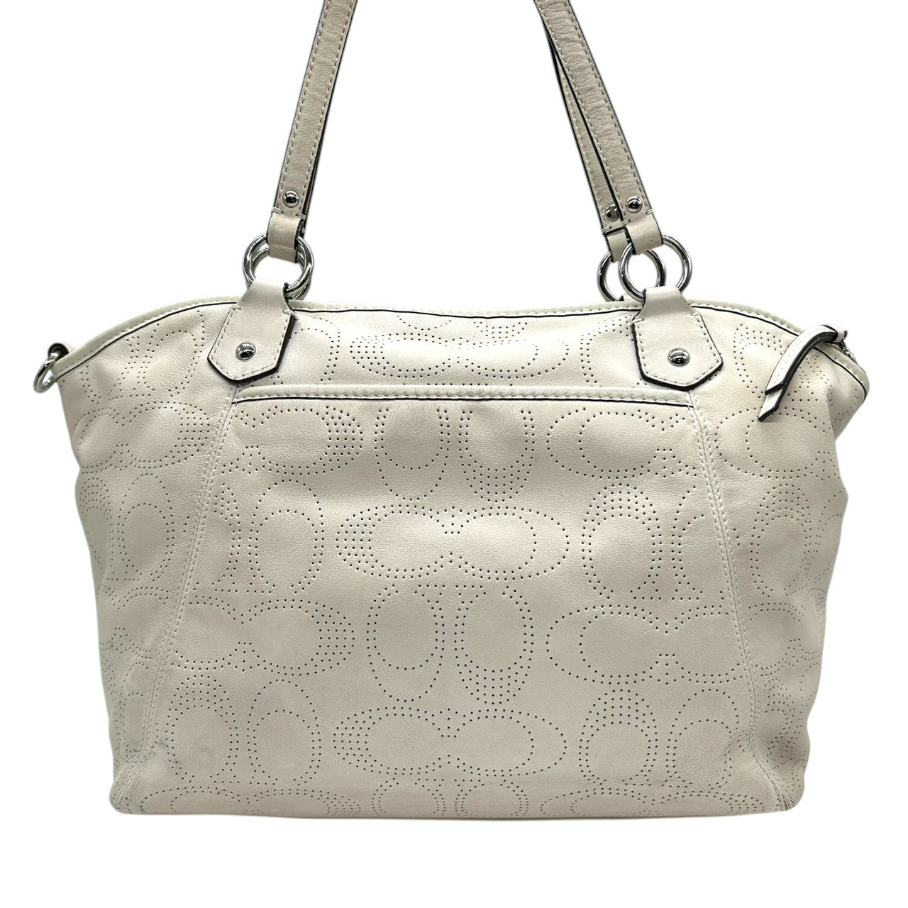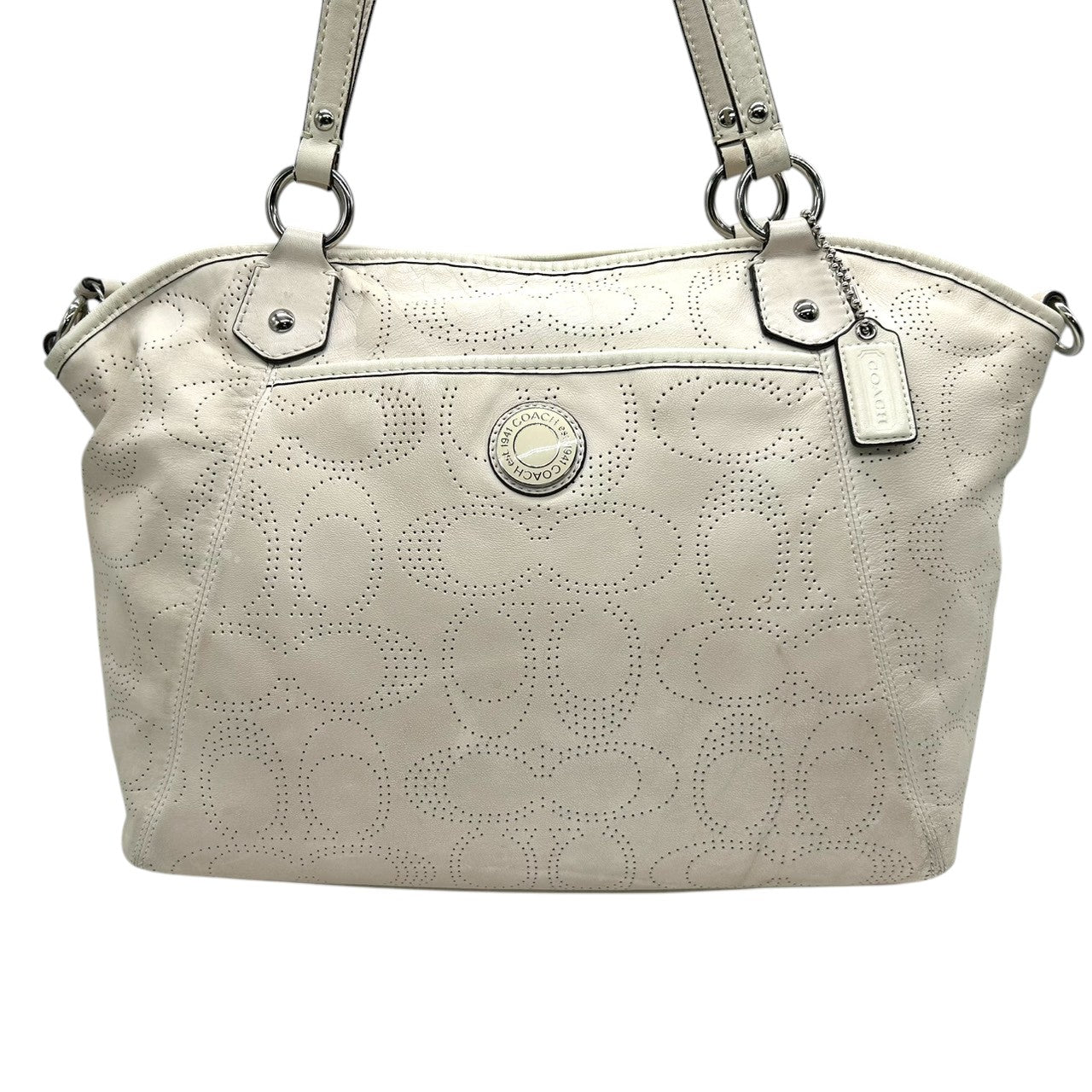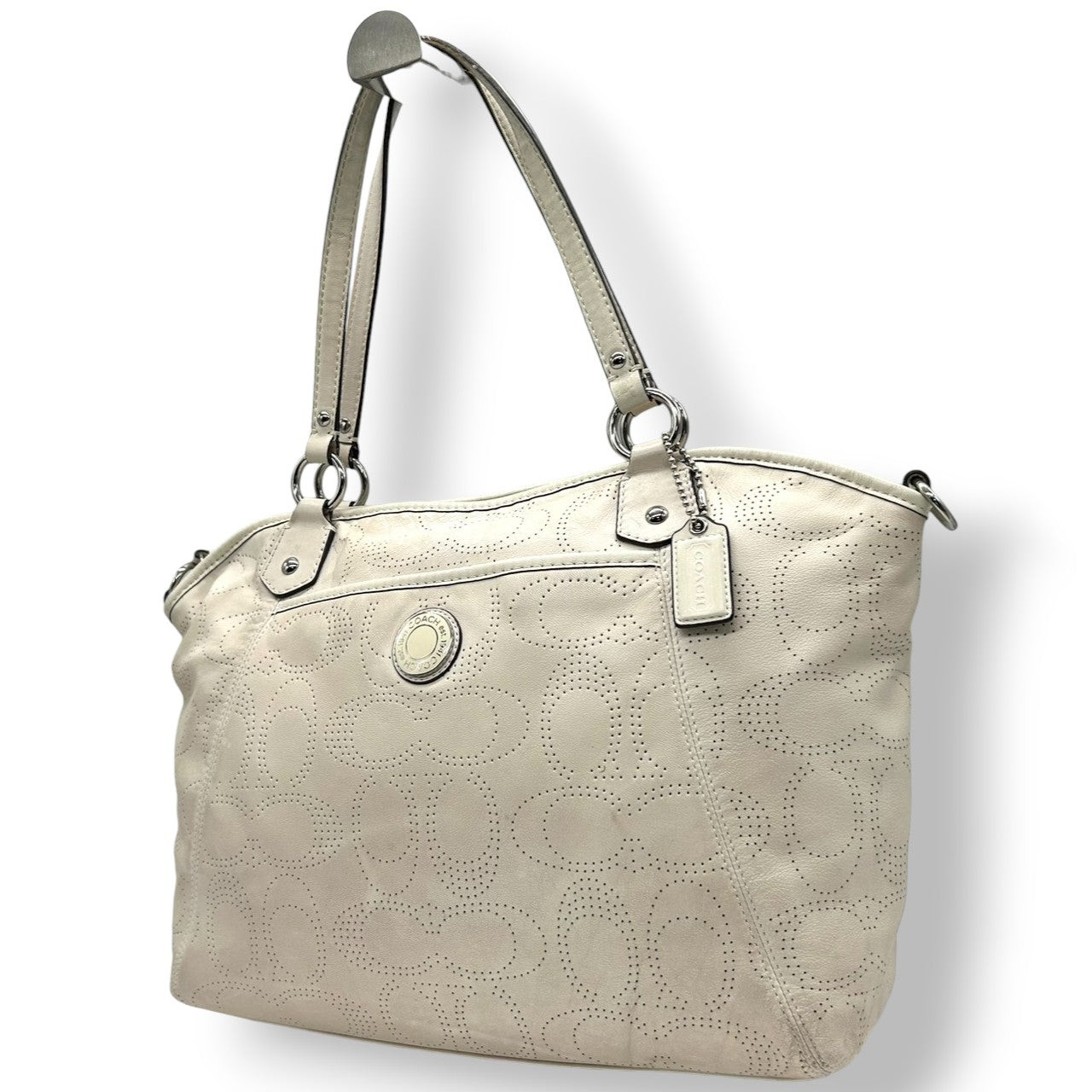 コーチ トートバッグ F19688 パーフォレイテッド シグネチャー レザー ホワイト A4収納可 大容量 ワンショルダー 肩掛け レディース ハンドバッグ ビジネス 通勤 通学 チャーム付き エレガントデザイン 自立可 クリーニング済み s67