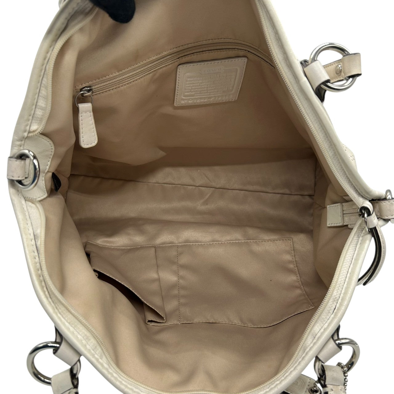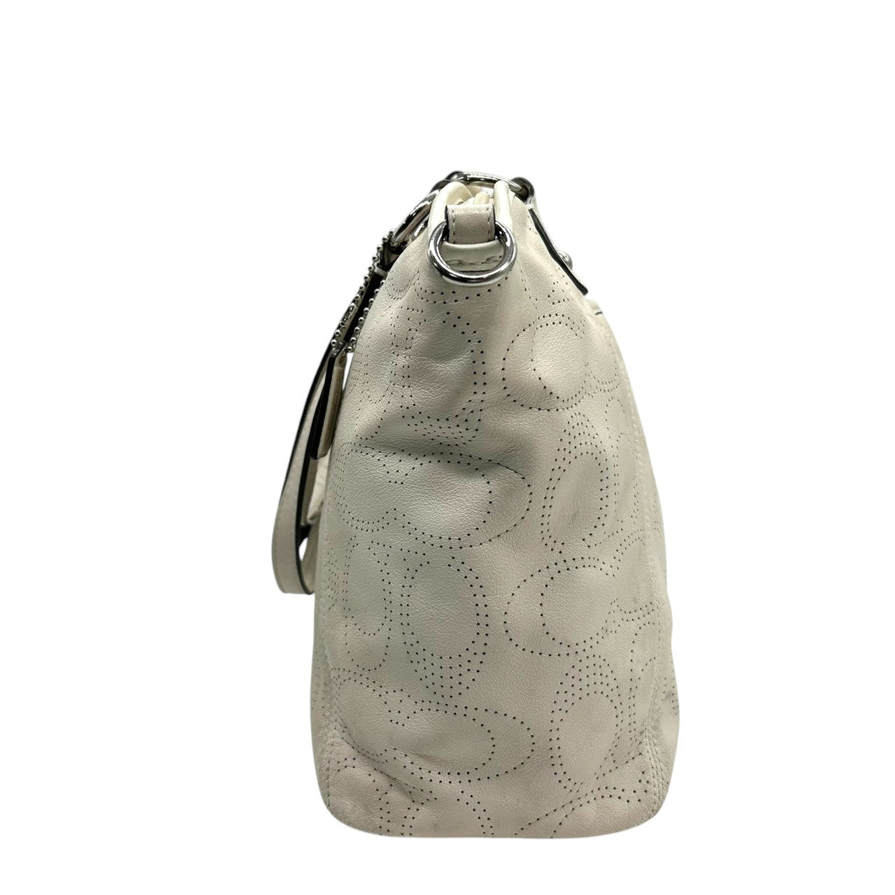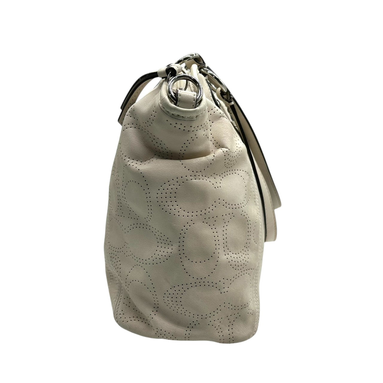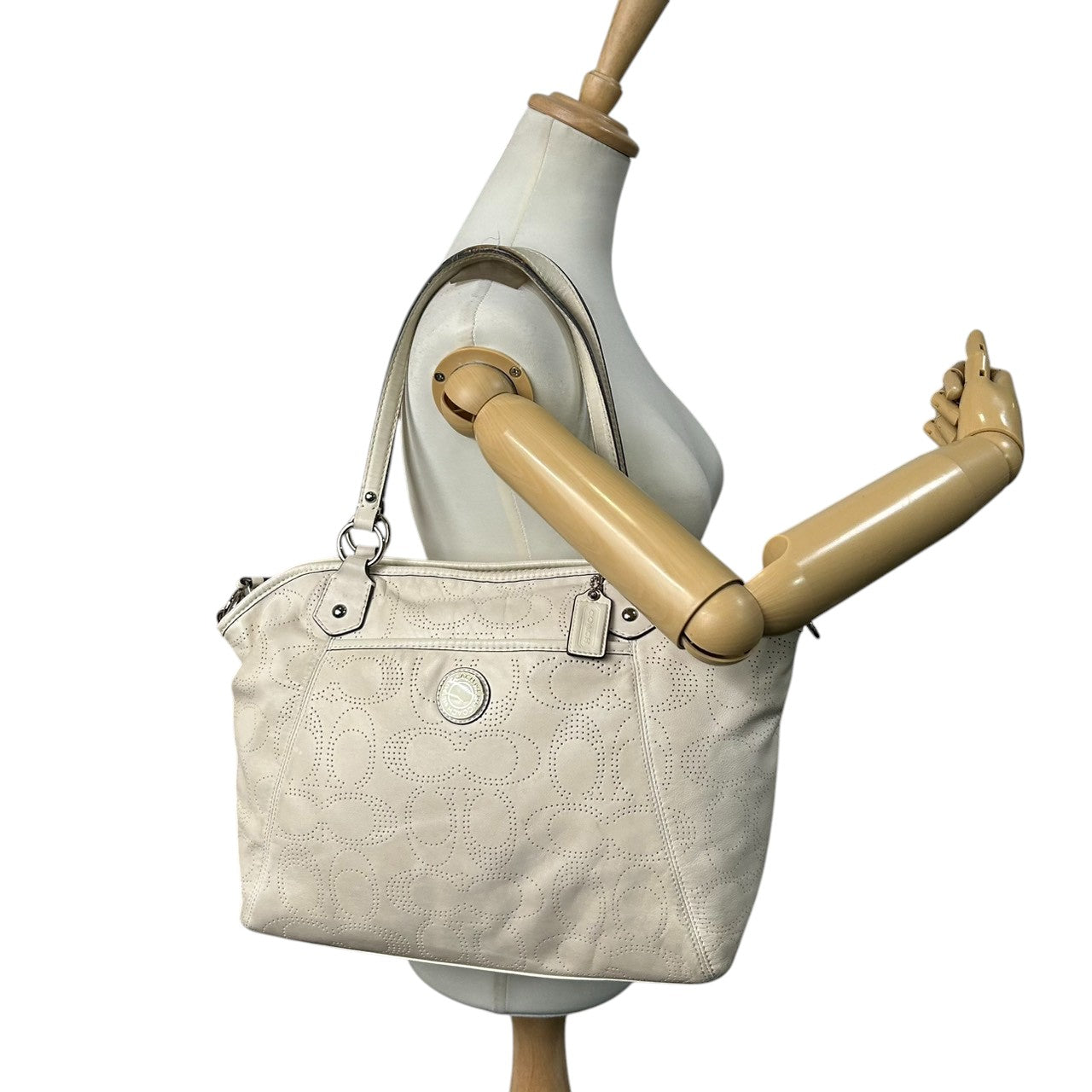 コーチ トートバッグ F19688 パーフォレイテッド シグネチャー レザー ホワイト A4収納可 大容量 ワンショルダー 肩掛け レディース ハンドバッグ ビジネス 通勤 通学 チャーム付き エレガントデザイン 自立可 クリーニング済み s67
