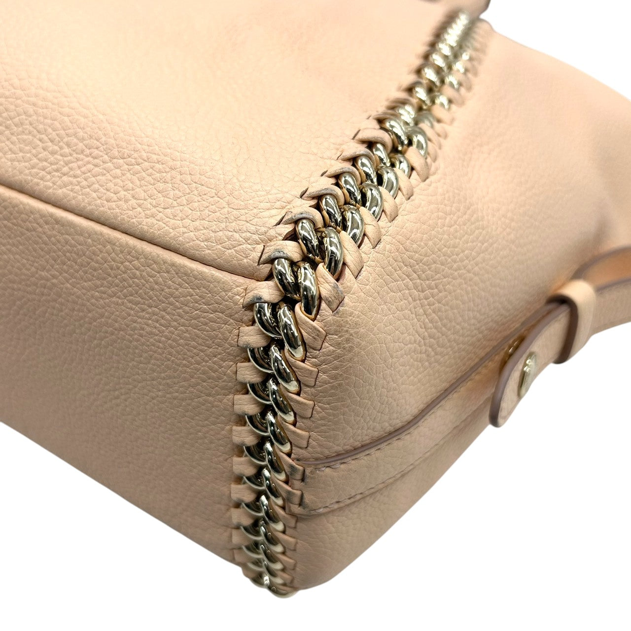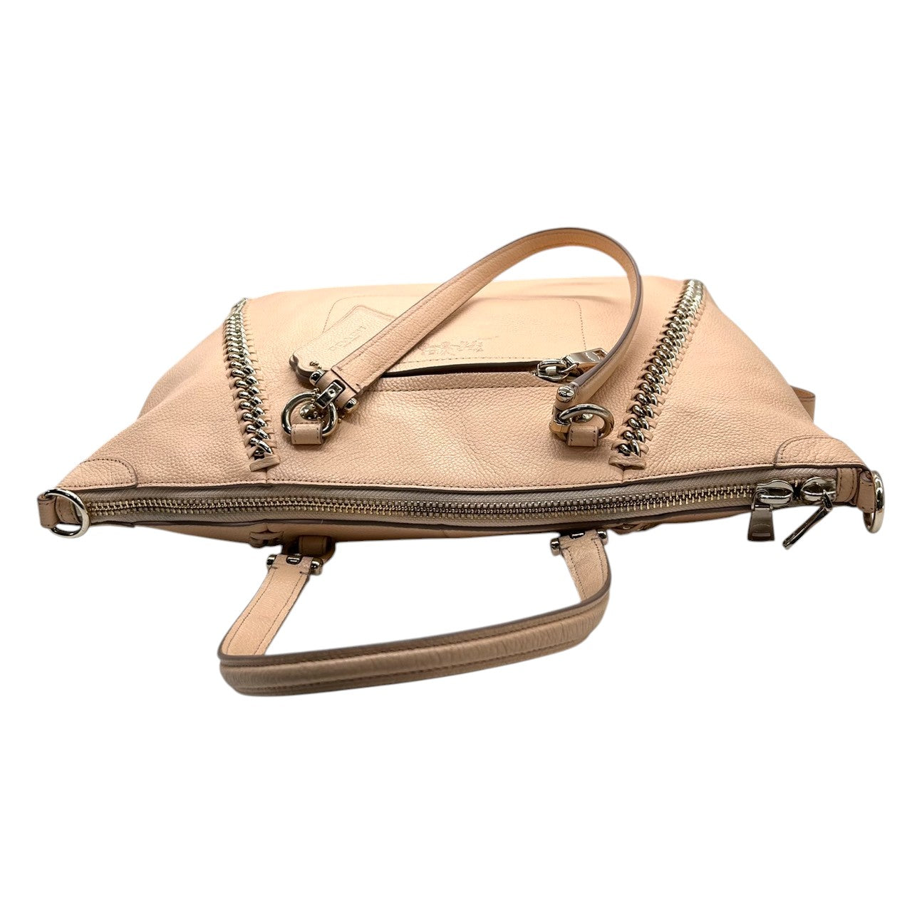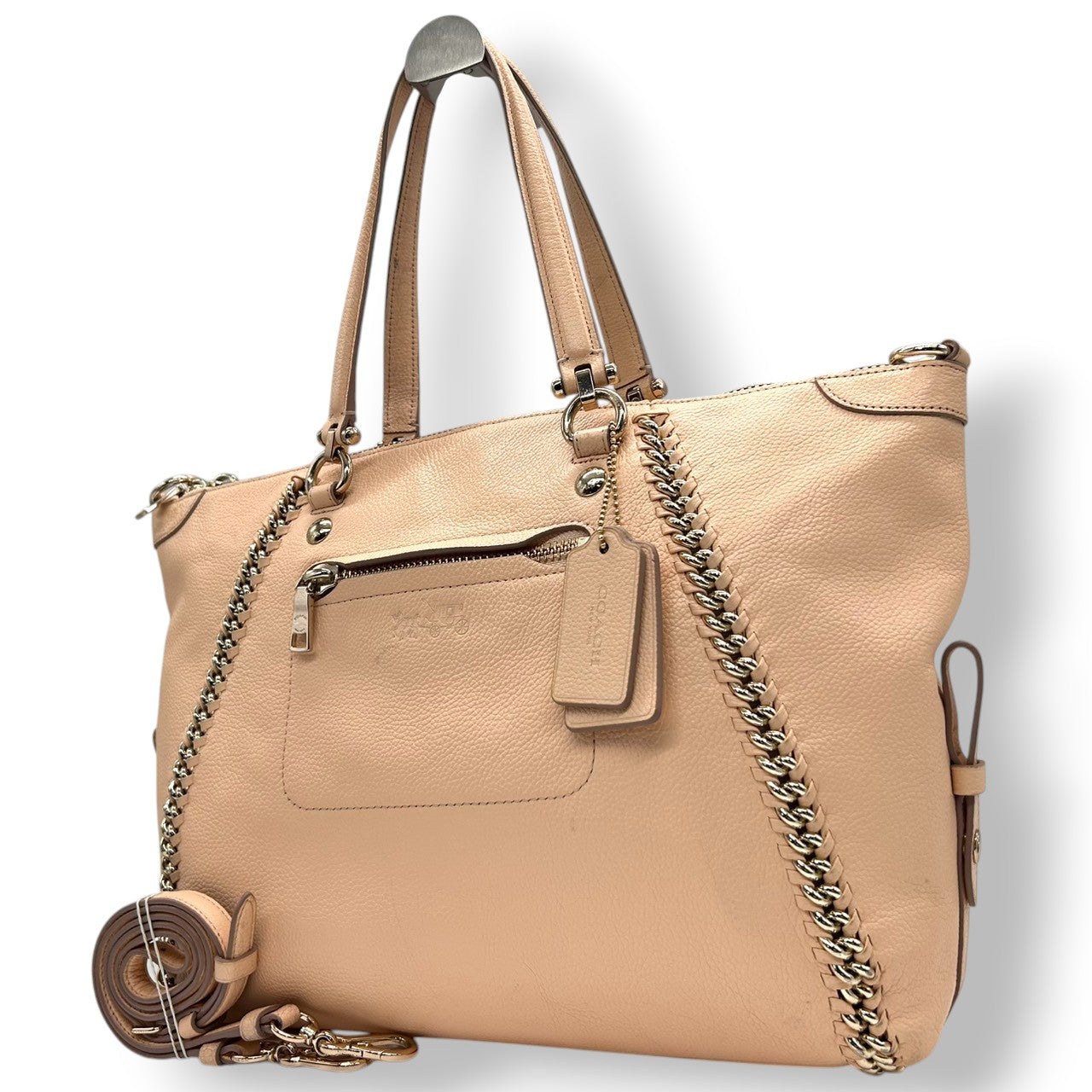 コーチ 2WAY トートバッグ 34339 レザー ピンクベージュ チェーンデザイン A4収納可 大容量 斜め掛け可 レディース ハンドバッグ ビジネス 通勤 通学 エレガント フェミニン チャーム付き クリーニング済み s53