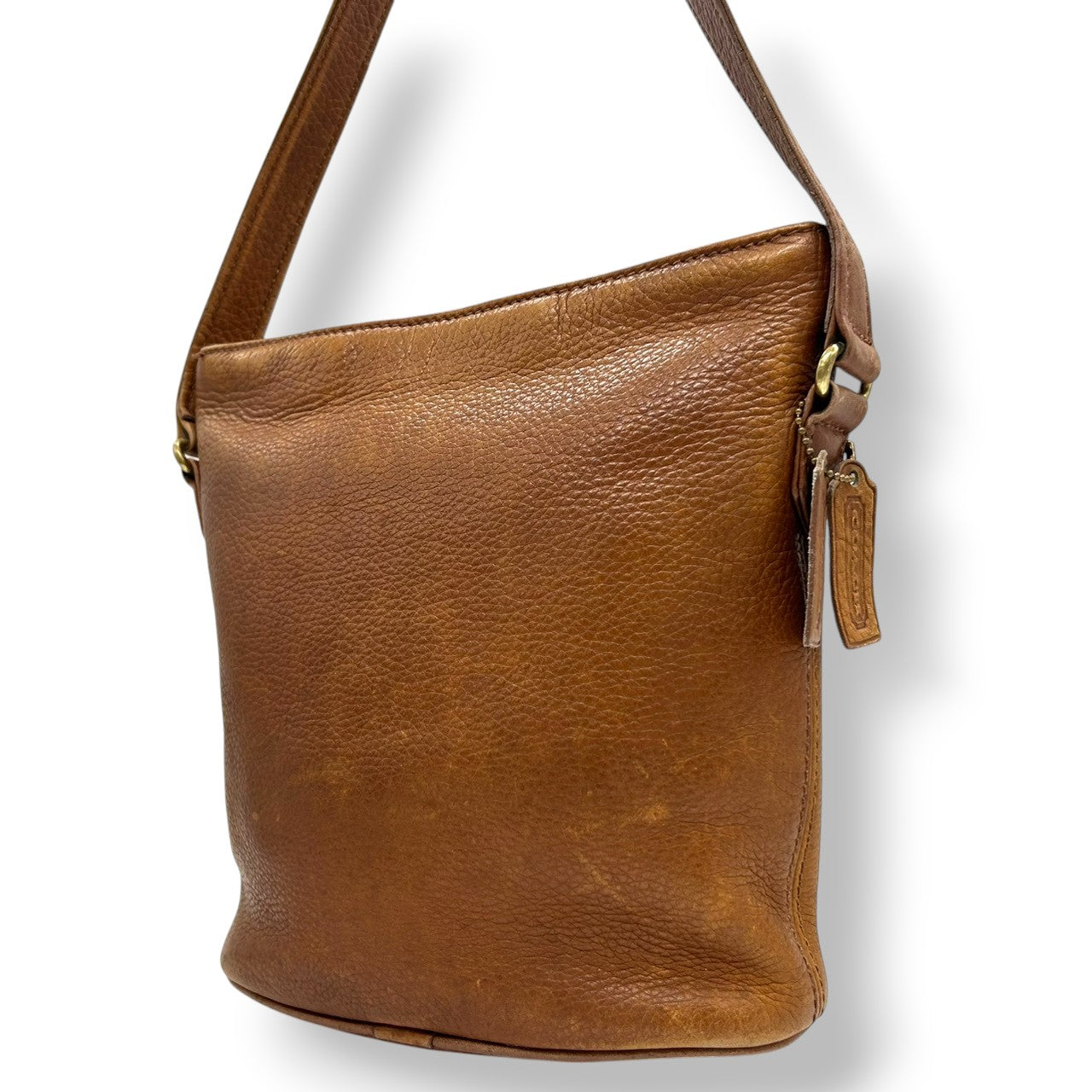 オールドコーチ ショルダーバッグ 4907 ヴィンテージ グラブタンレザー 本革 ブラウン バケツ型 斜め掛け可 レディース メンズ ユニセックス 90年代 USA製 クラシックデザイン チャーム付き レトロ COACH vintage s53