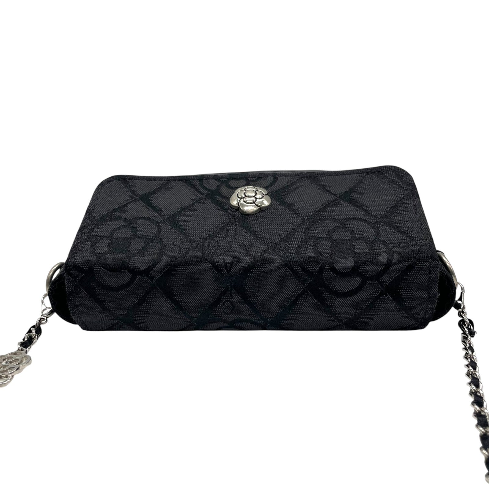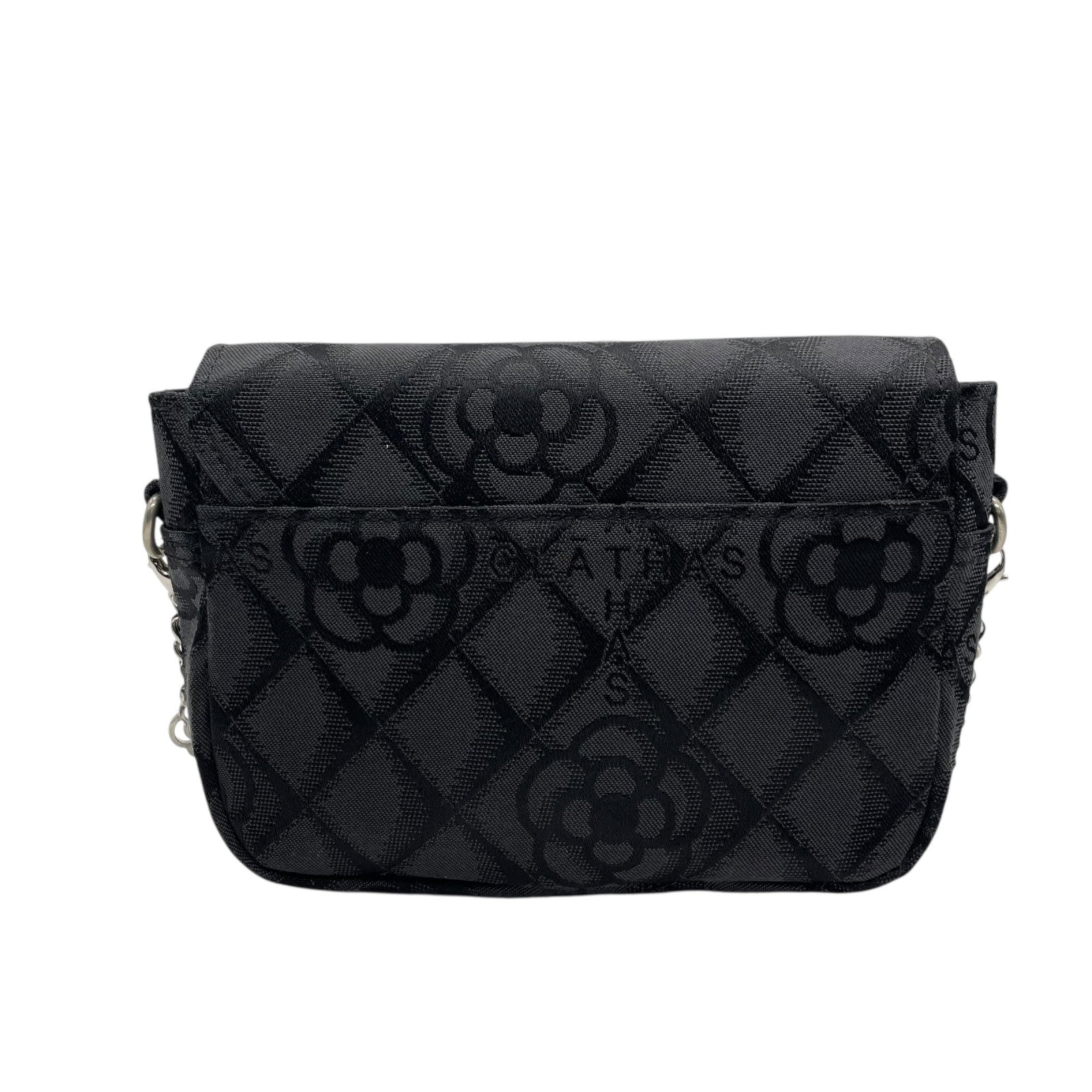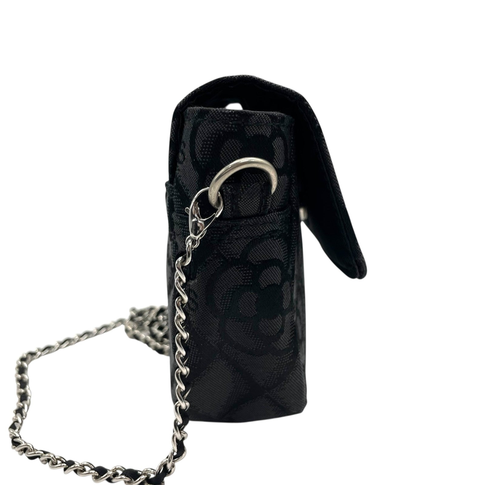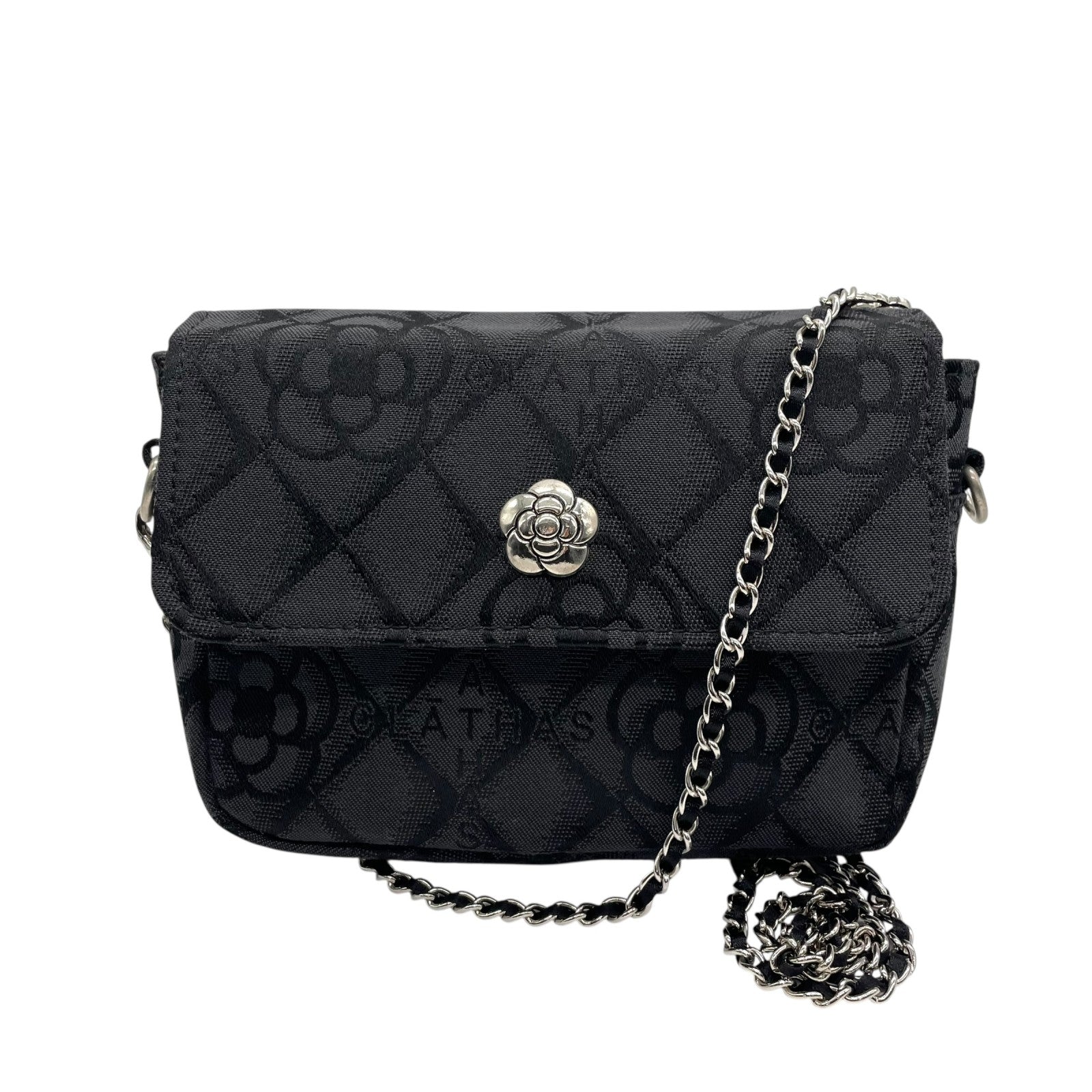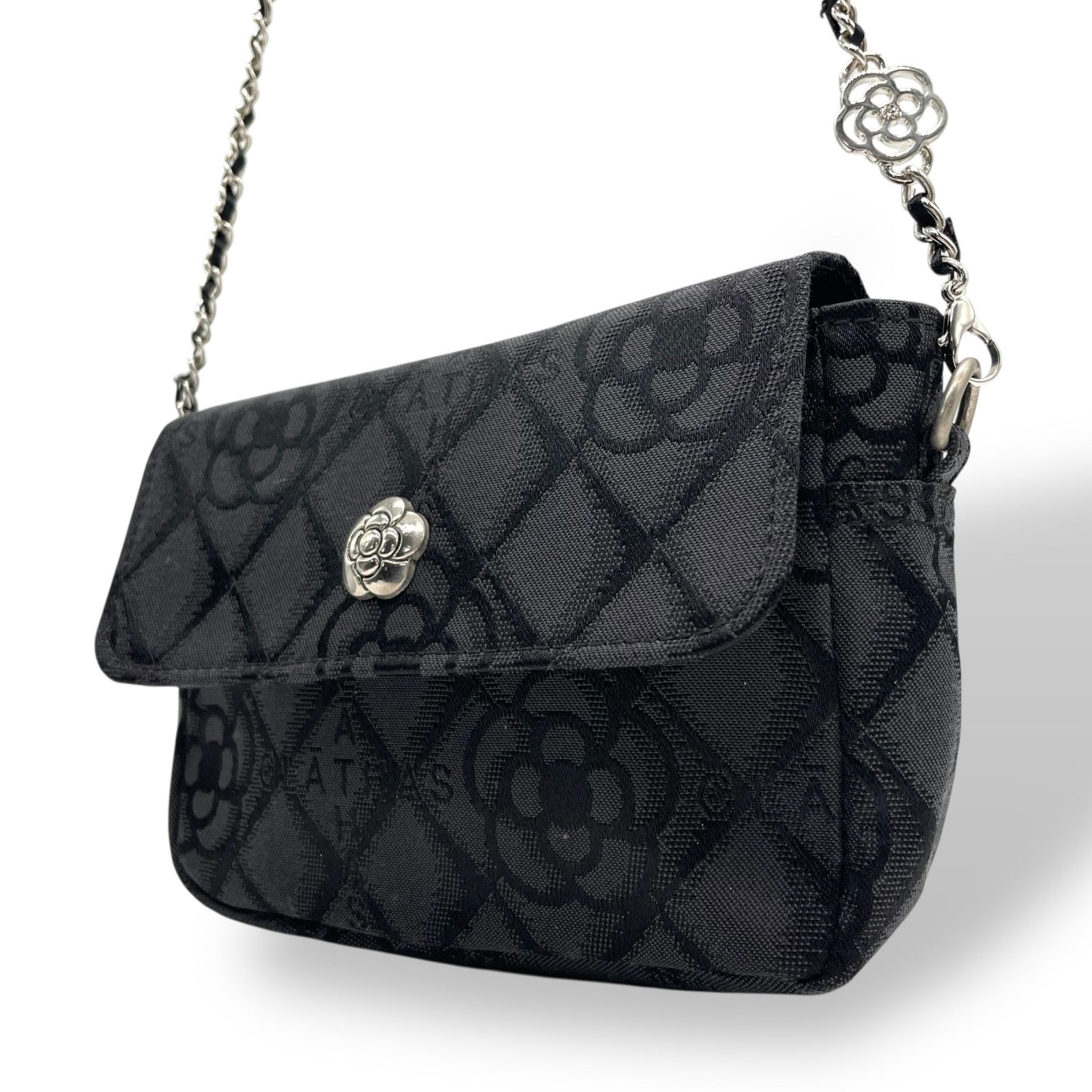 未使用級 クレイサス CLATHAS ショルダーバッグ ミニバッグ 黒 ブラック キャンバス シルバー金具 チェーンショルダー カメリア柄 ロゴ 斜め掛け可 レディース E6