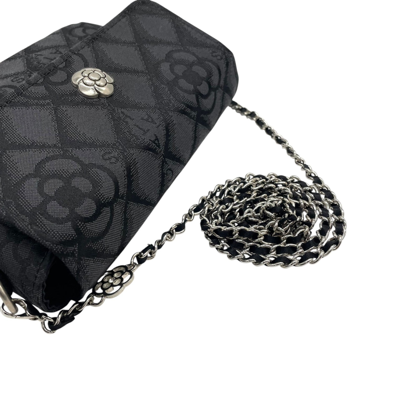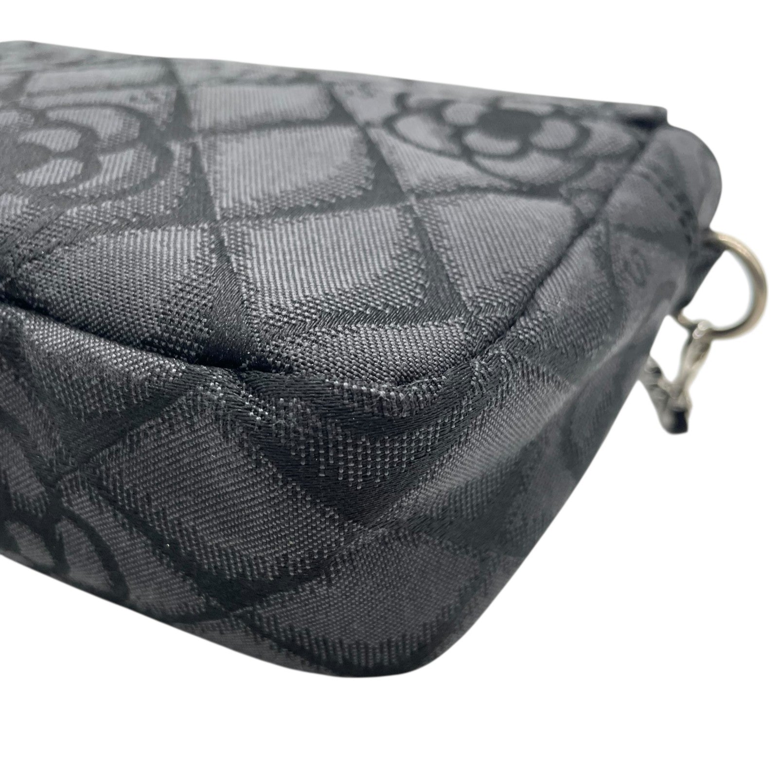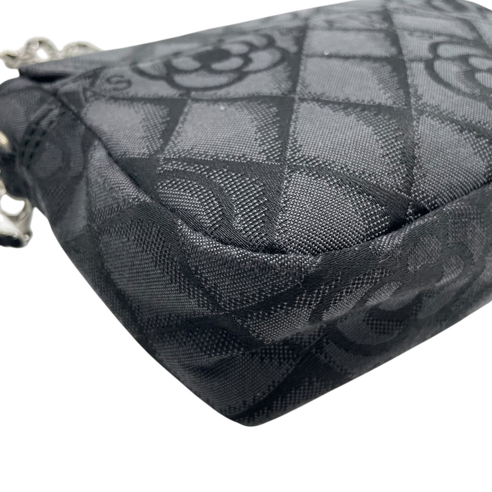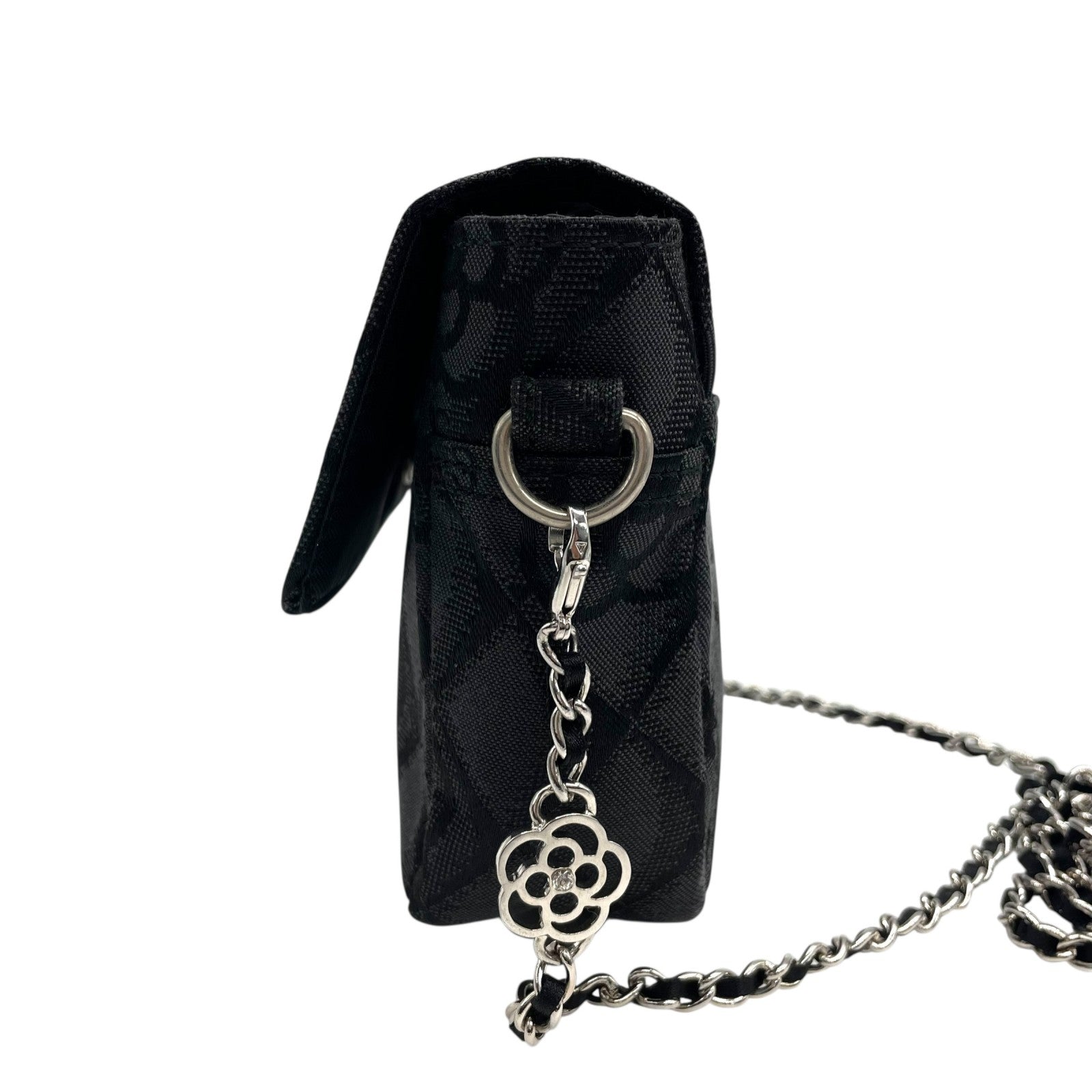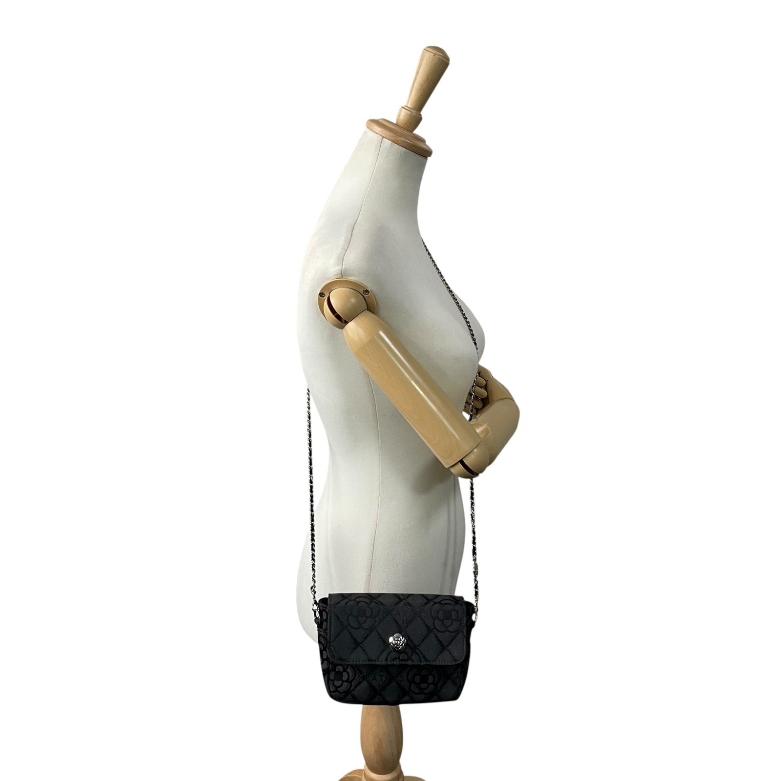 未使用級 クレイサス CLATHAS ショルダーバッグ ミニバッグ 黒 ブラック キャンバス シルバー金具 チェーンショルダー カメリア柄 ロゴ 斜め掛け可 レディース E6