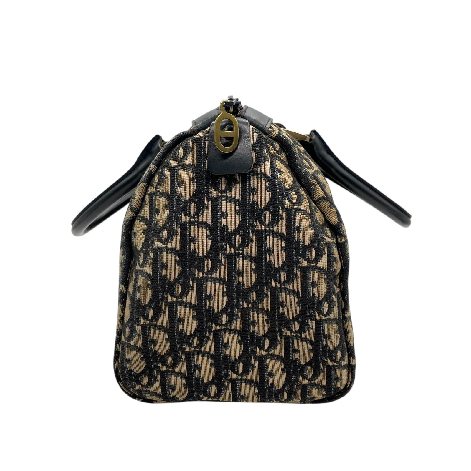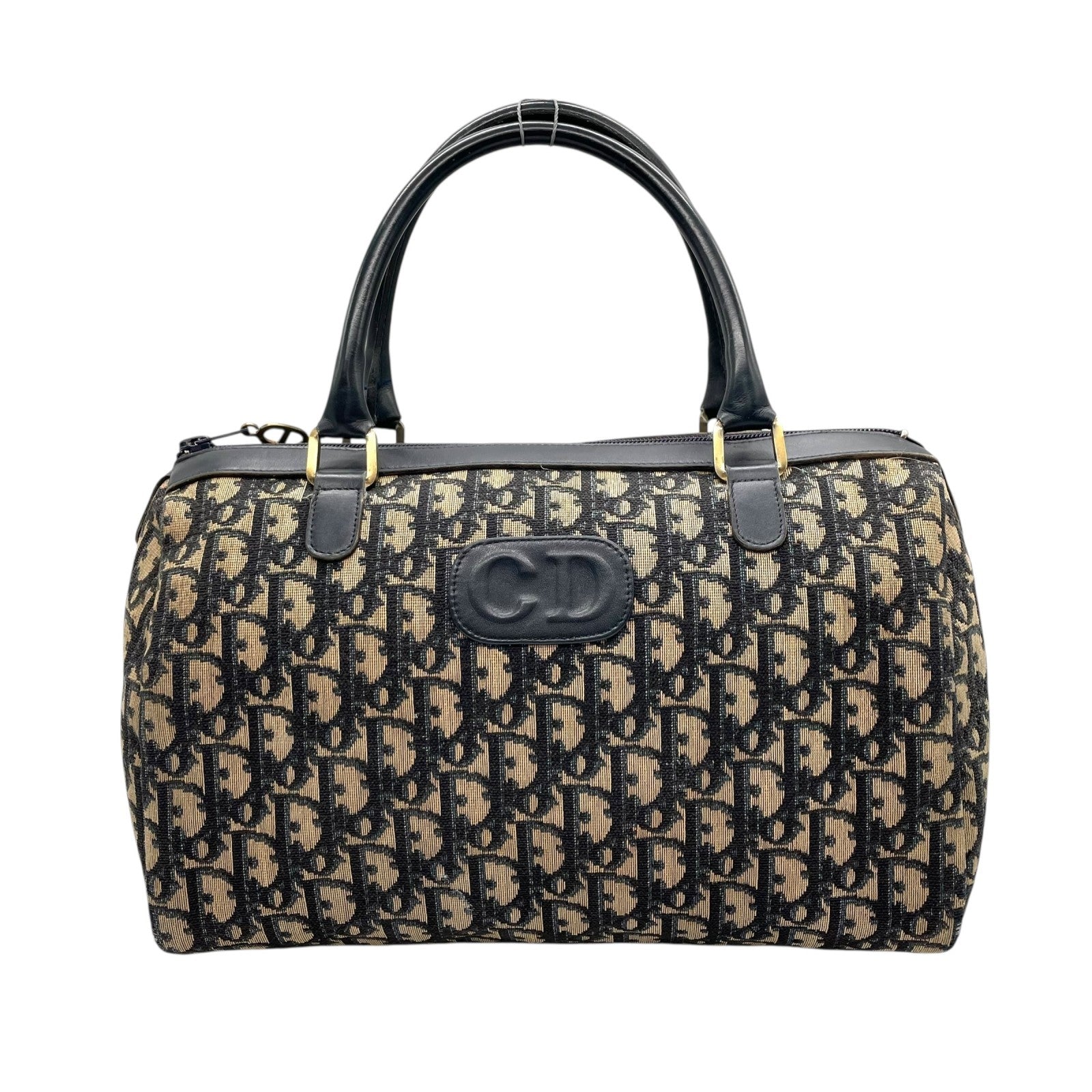 Christian Dior ディオール トロッター ミニボストン ボストンバッグ 紺 ネイビー ベージュ キャンバス レザー ゴールド金具 CDロゴ 手提げ ヴィンテージ レディース D3