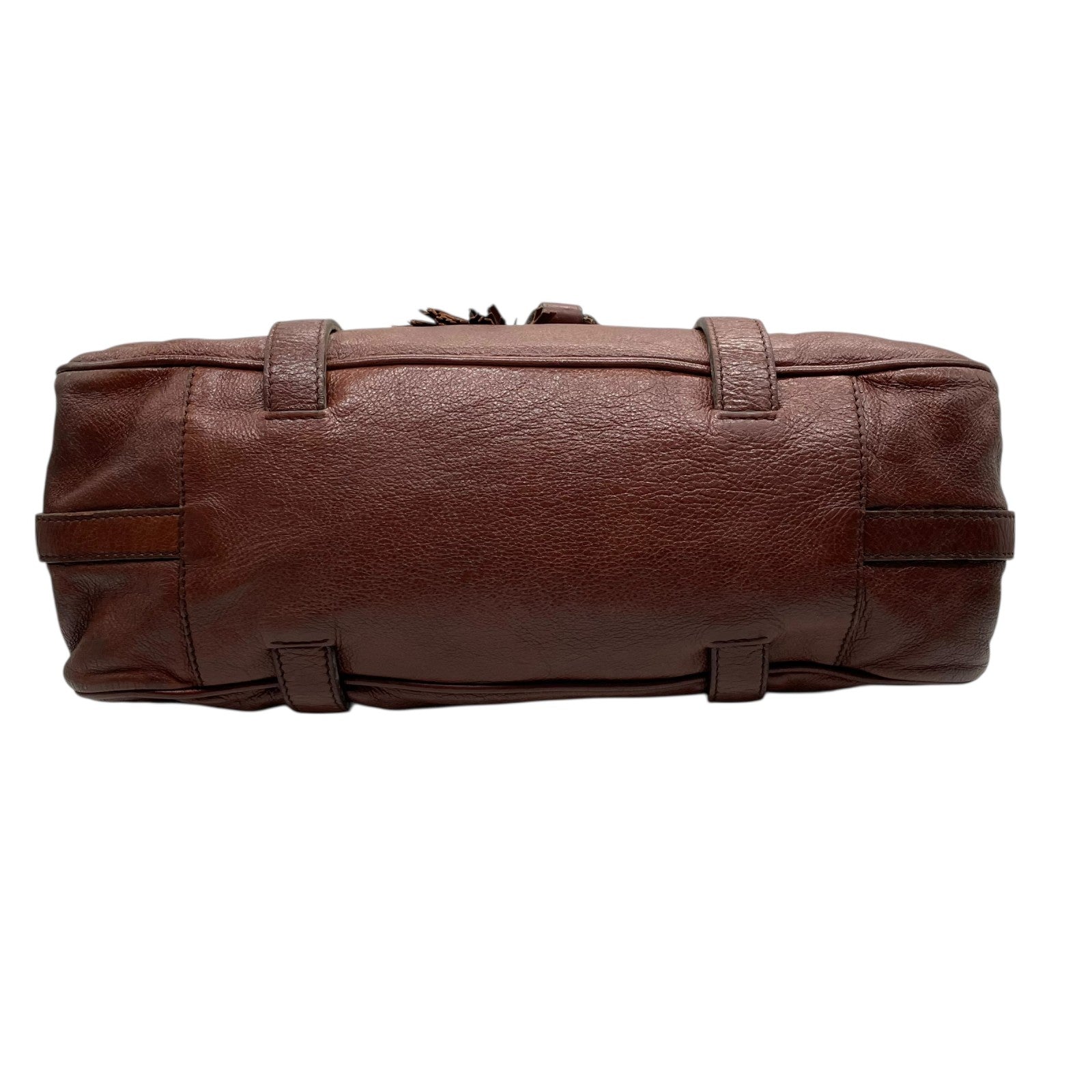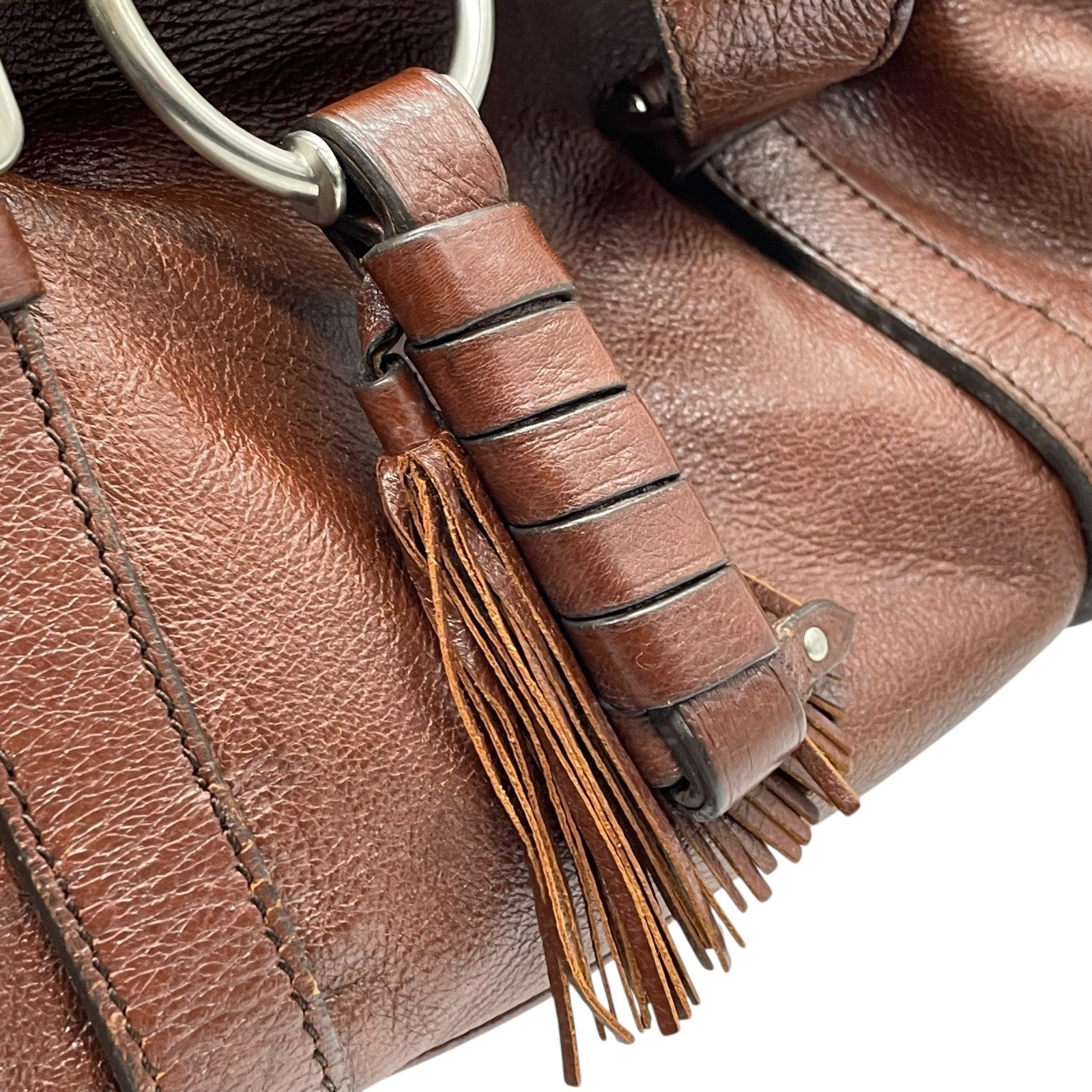 セリーヌ CELINE トートバッグ ハンドバッグ ロングハンドル フラップ 茶色 ダークブラウン レザー タッセル付き シルバー金具 K8