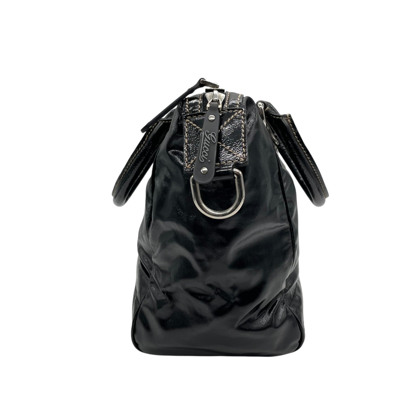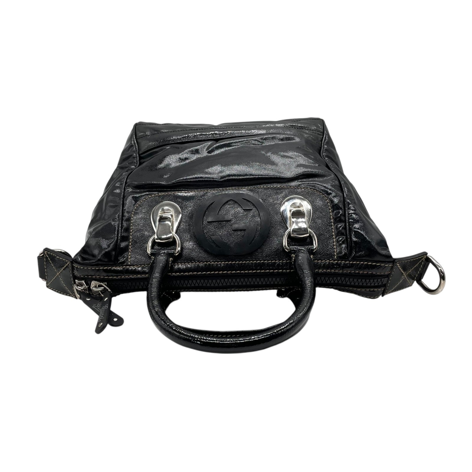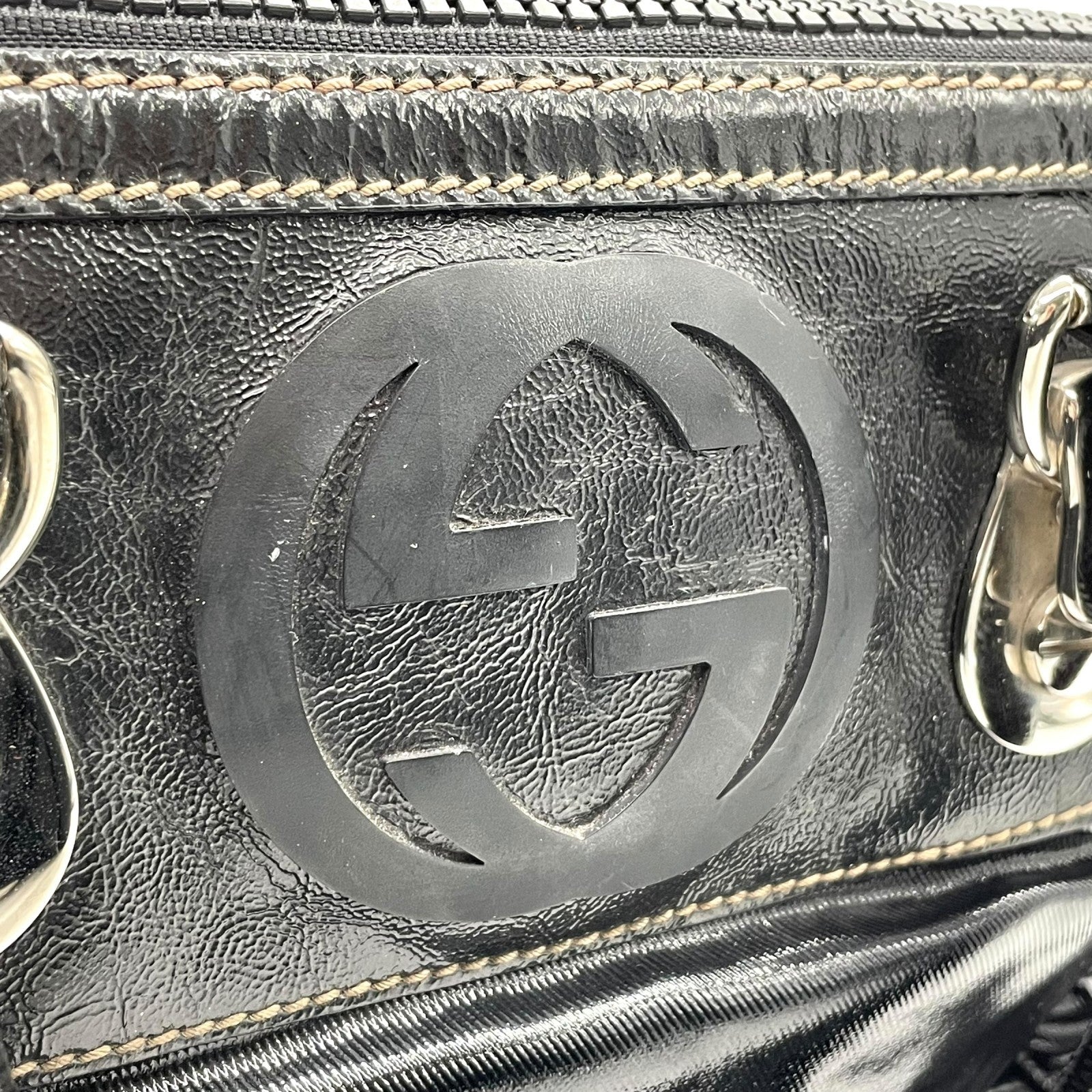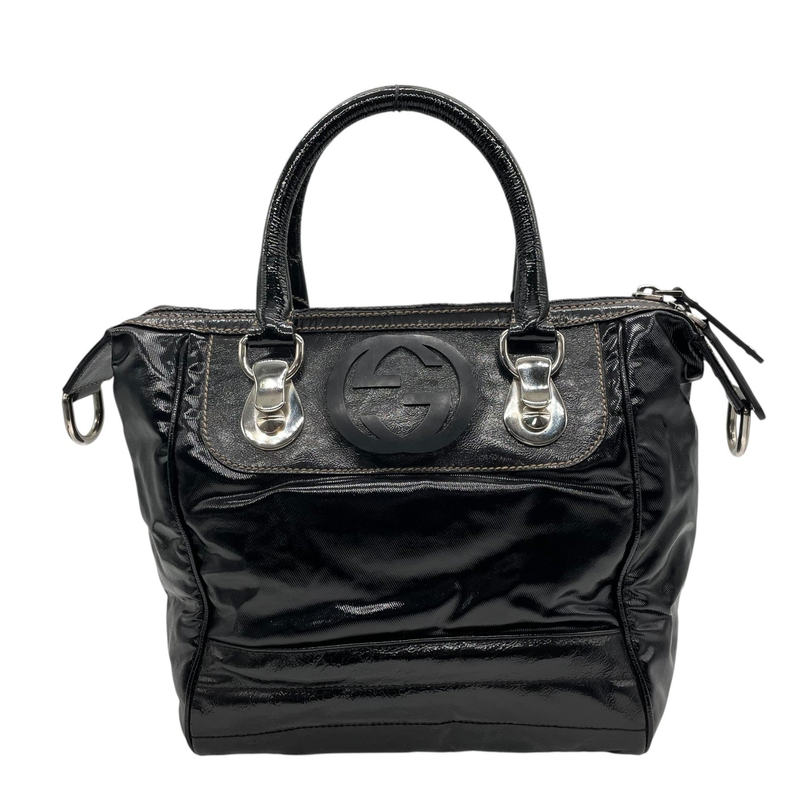 美品 グッチ GUCCI ハンドバッグ ショルダーバッグ ブラック 黒 2way パテントレザー インターロッキングG GGロゴ 手提げ 斜め掛け可 シルバー金具 レディース B2
