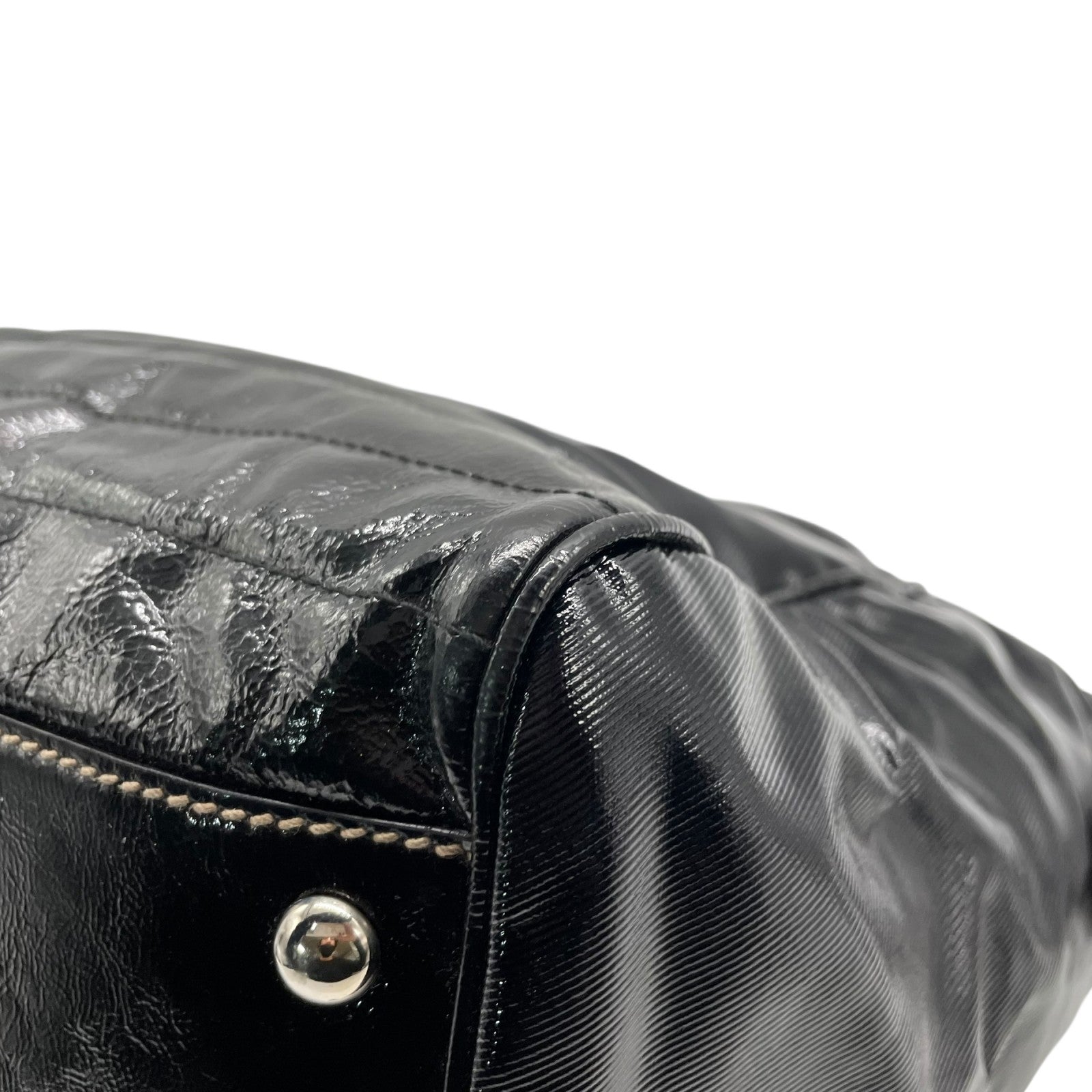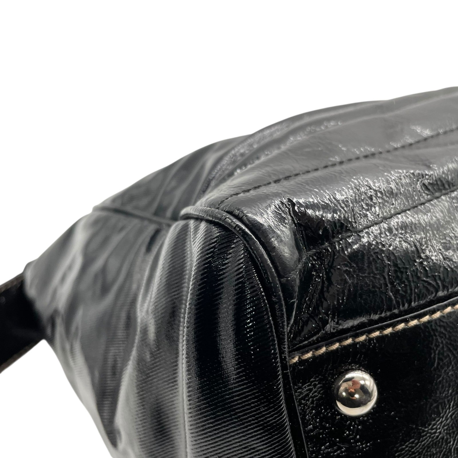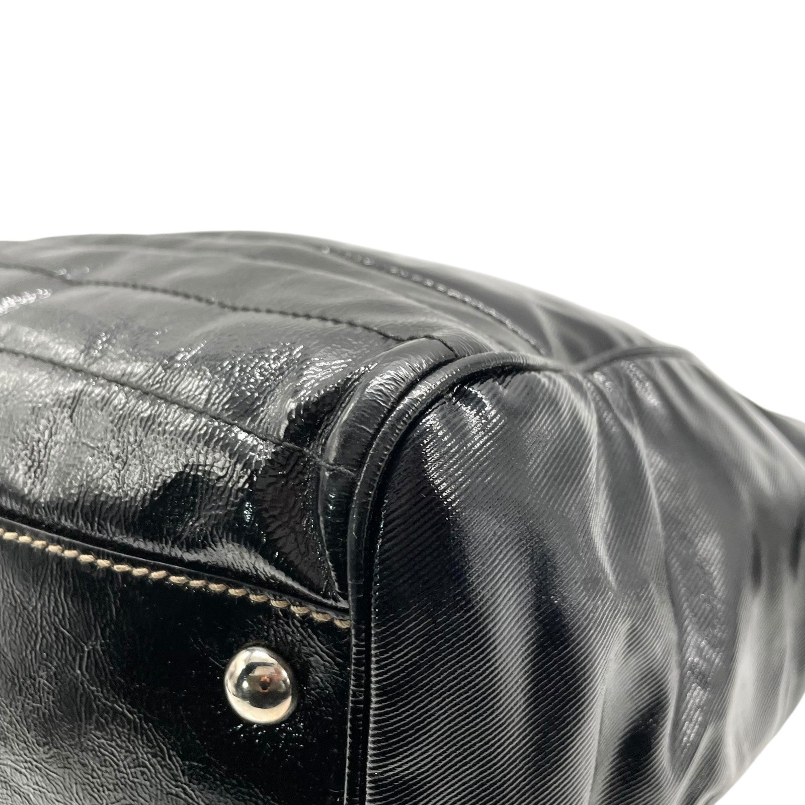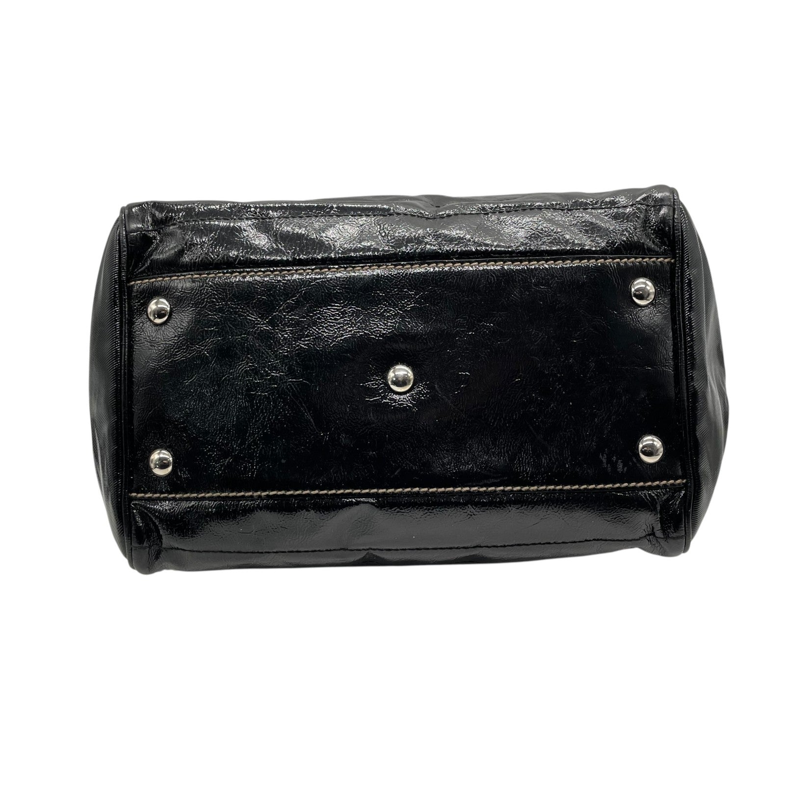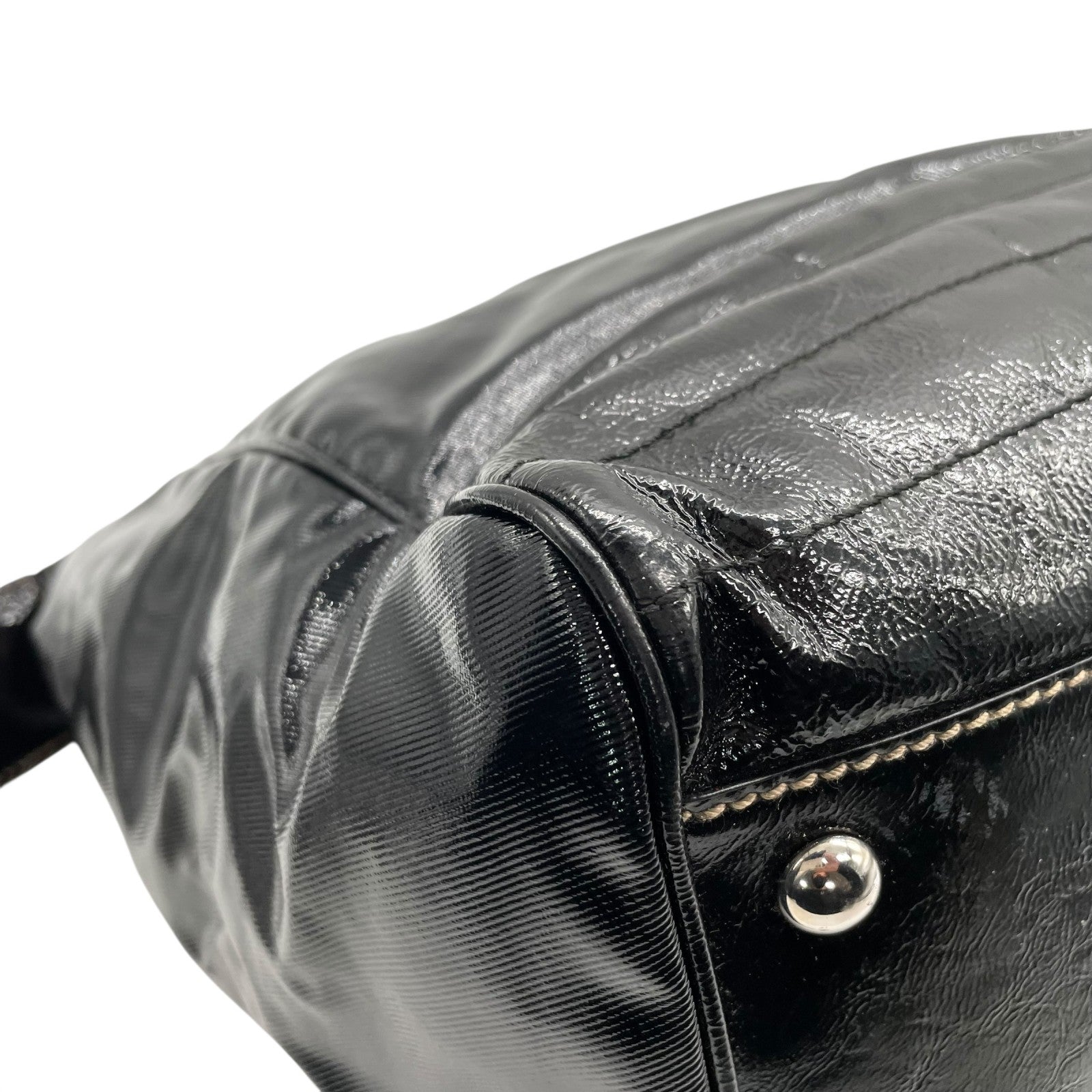美品 グッチ GUCCI ハンドバッグ ショルダーバッグ ブラック 黒 2way パテントレザー インターロッキングG GGロゴ 手提げ 斜め掛け可 シルバー金具 レディース B2