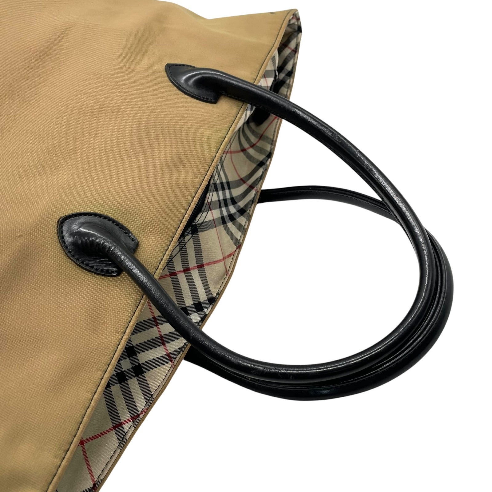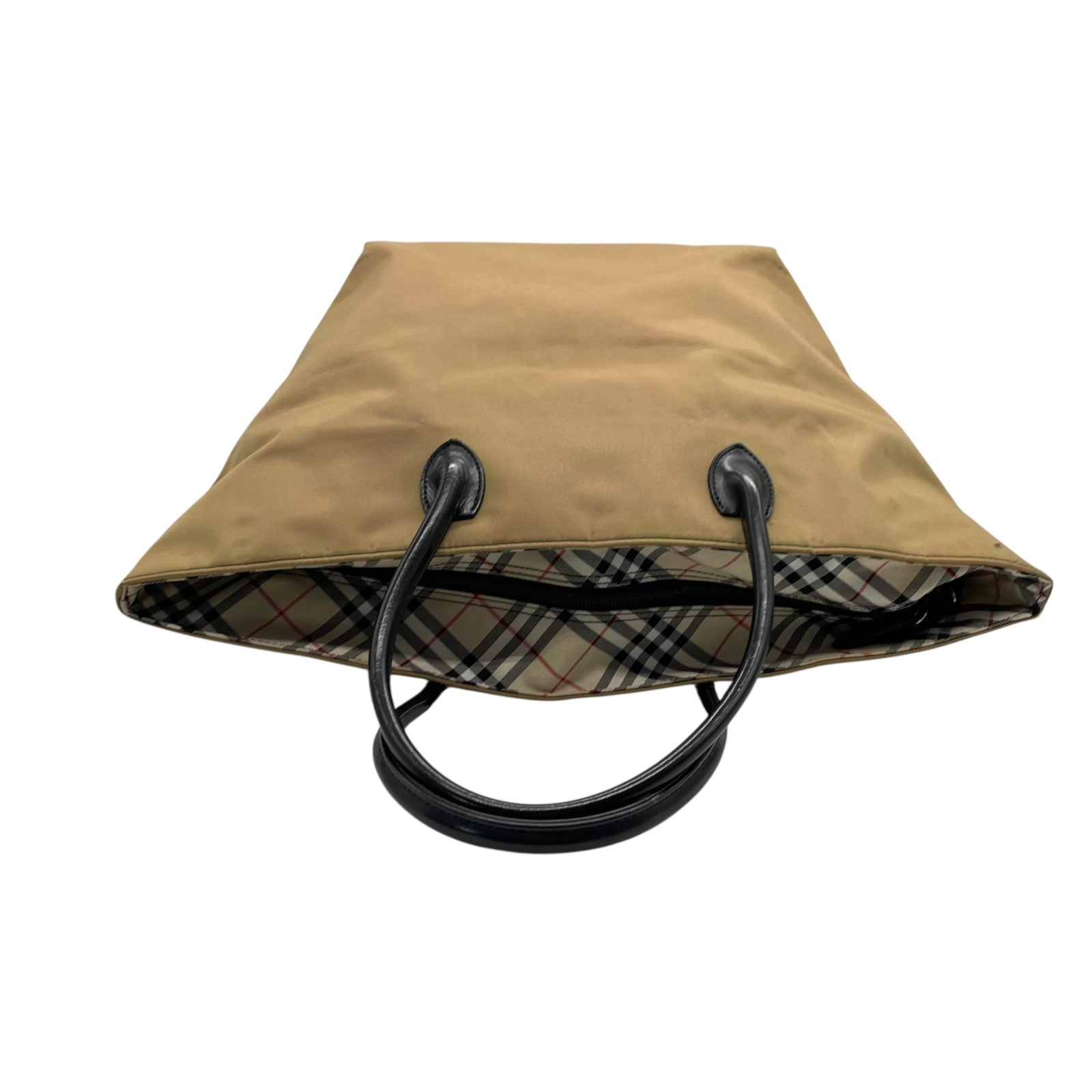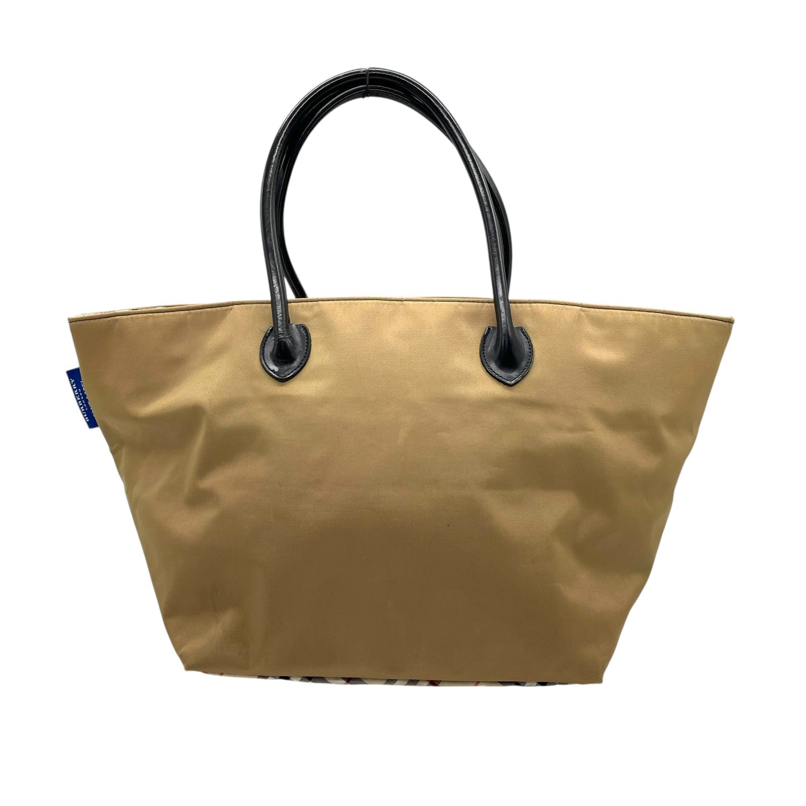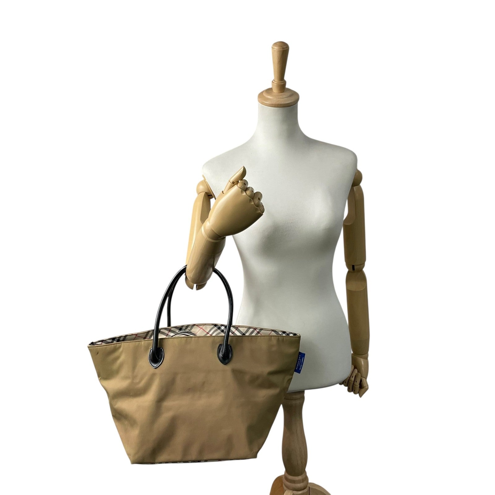 バーバリーブルーレーベル BURBERRY BLUE LABEL ハンドバッグ トートバッグ カーキベージュ ナイロン レザー ノバチェック ファスナー開閉 手提げ レディース Z3