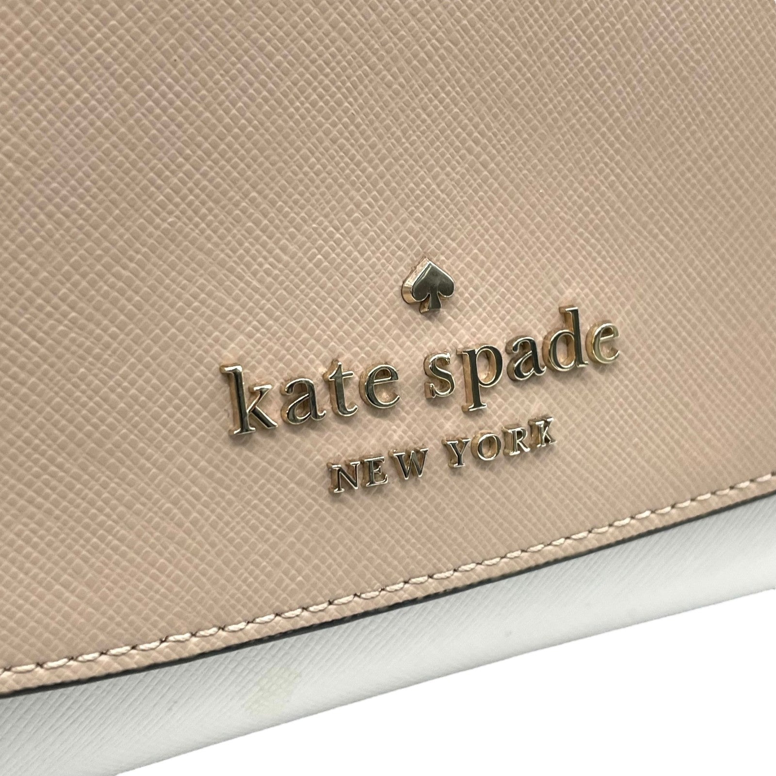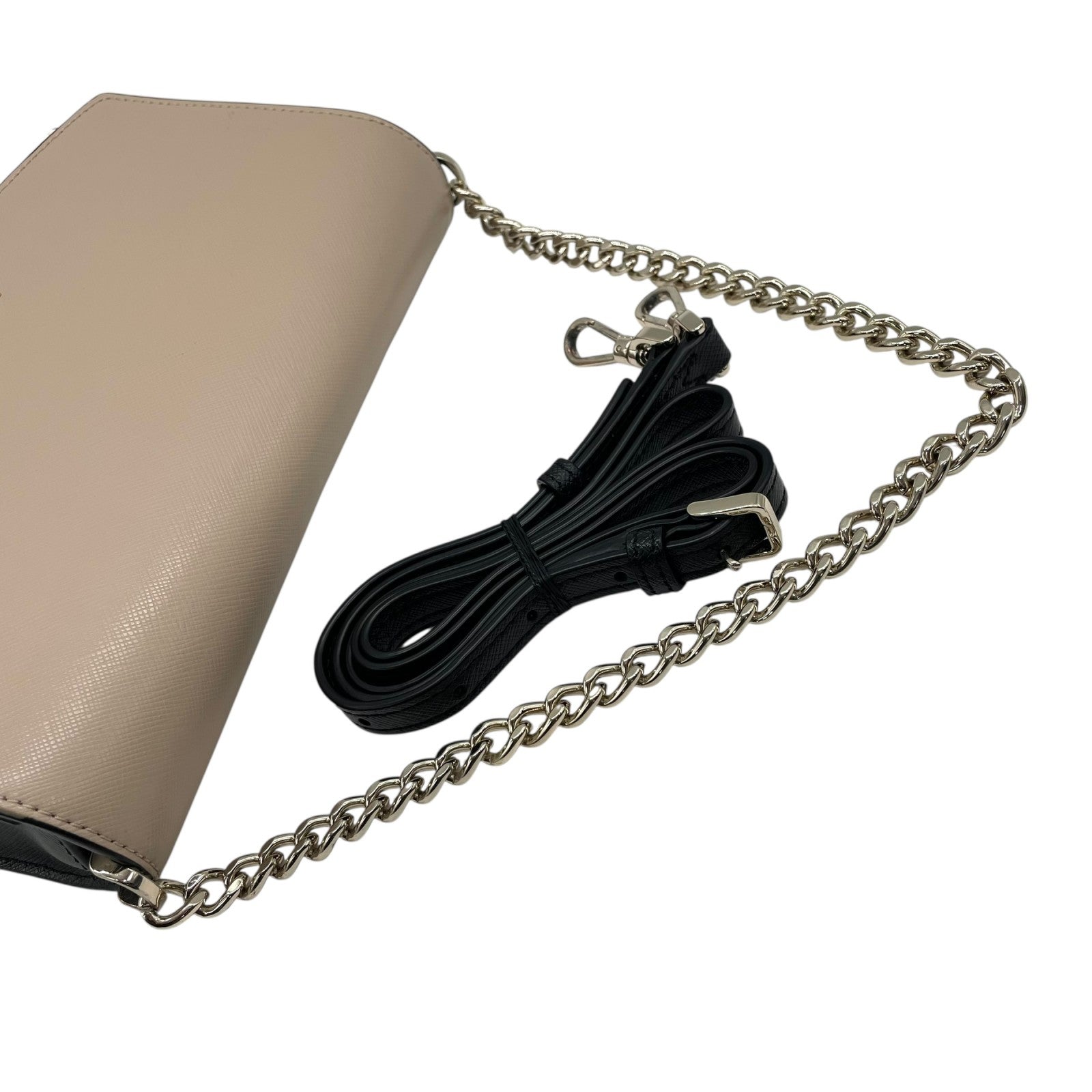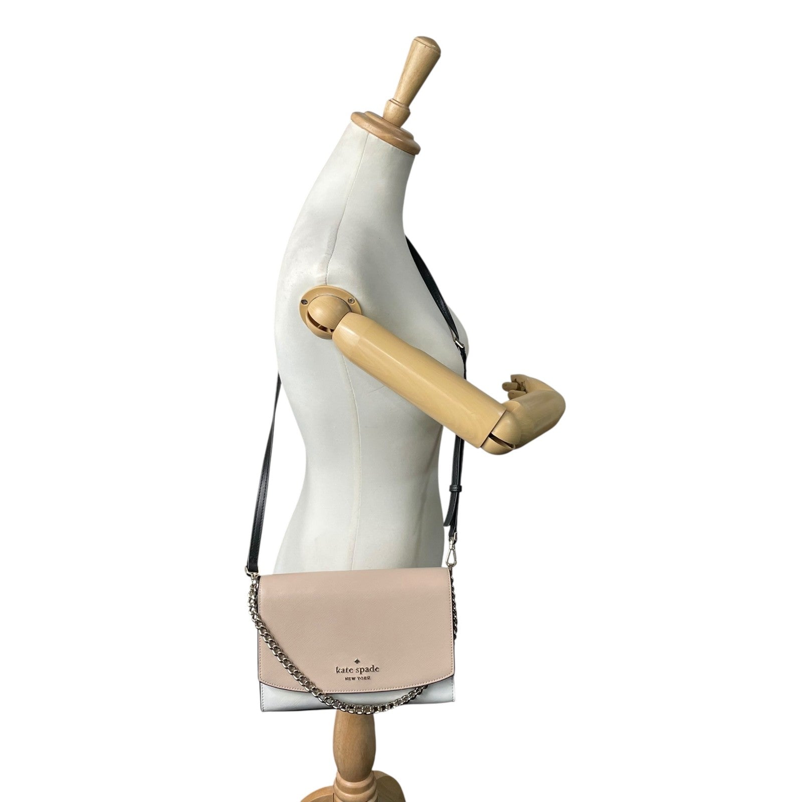 美品 kate spade ケイトスペード カーソン カラーブロック コンバーチブル 2WAY ハンドバッグ ショルダーバッグ クロスボディ PVC ベージュ 白 ホワイト 黒 ブラック バイカラー チェーン ゴールド金具 ロゴ 斜め掛け可 レディース S6