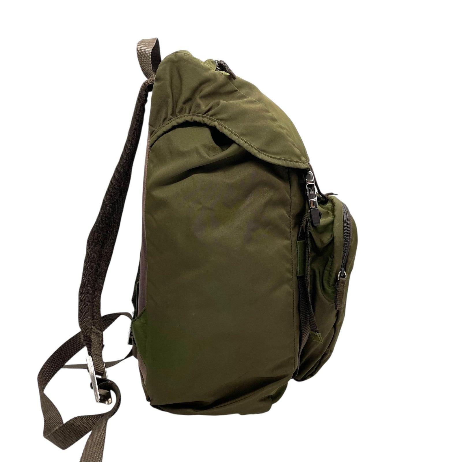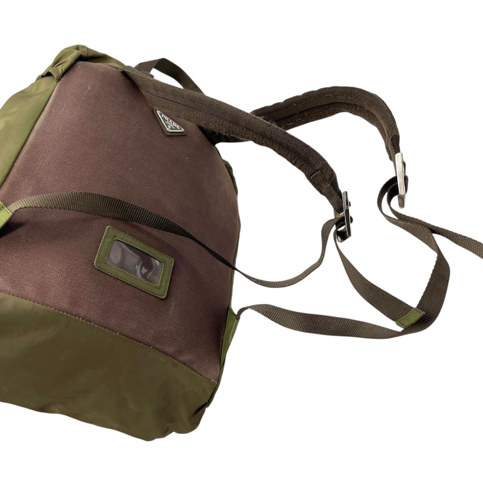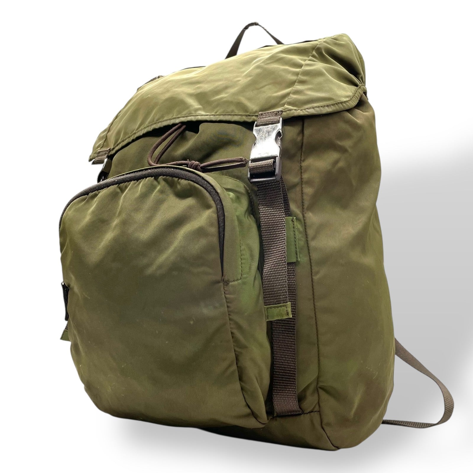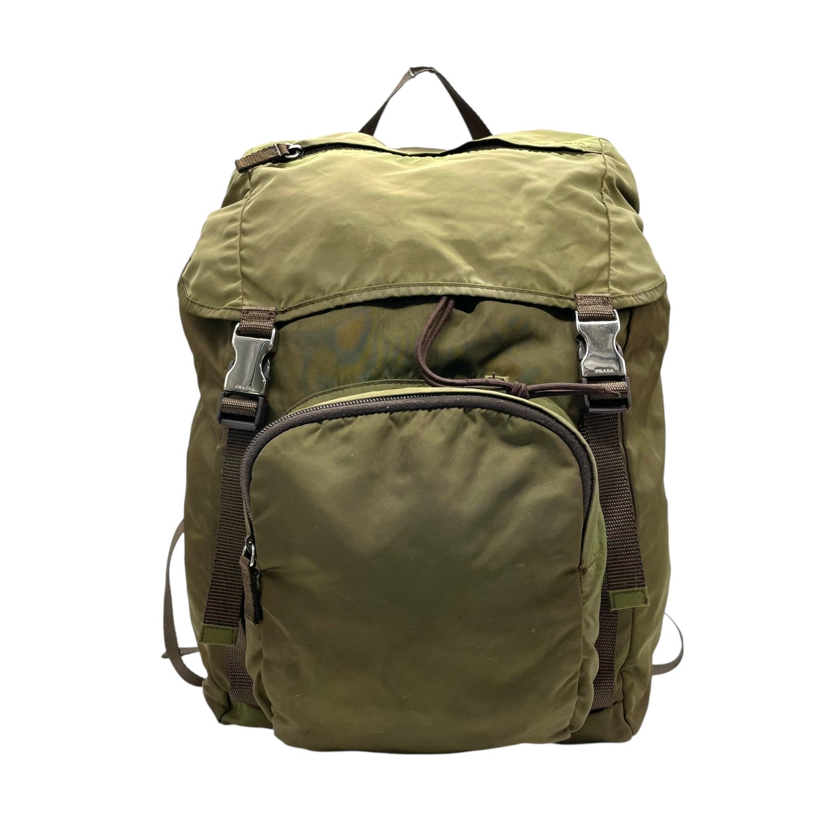 プラダ PRADA リュックサック バックパック カーキ 茶 ブラウン ナイロン 三角ロゴプレート トライアングルロゴ シルバー金具 メンズ レディース Z4