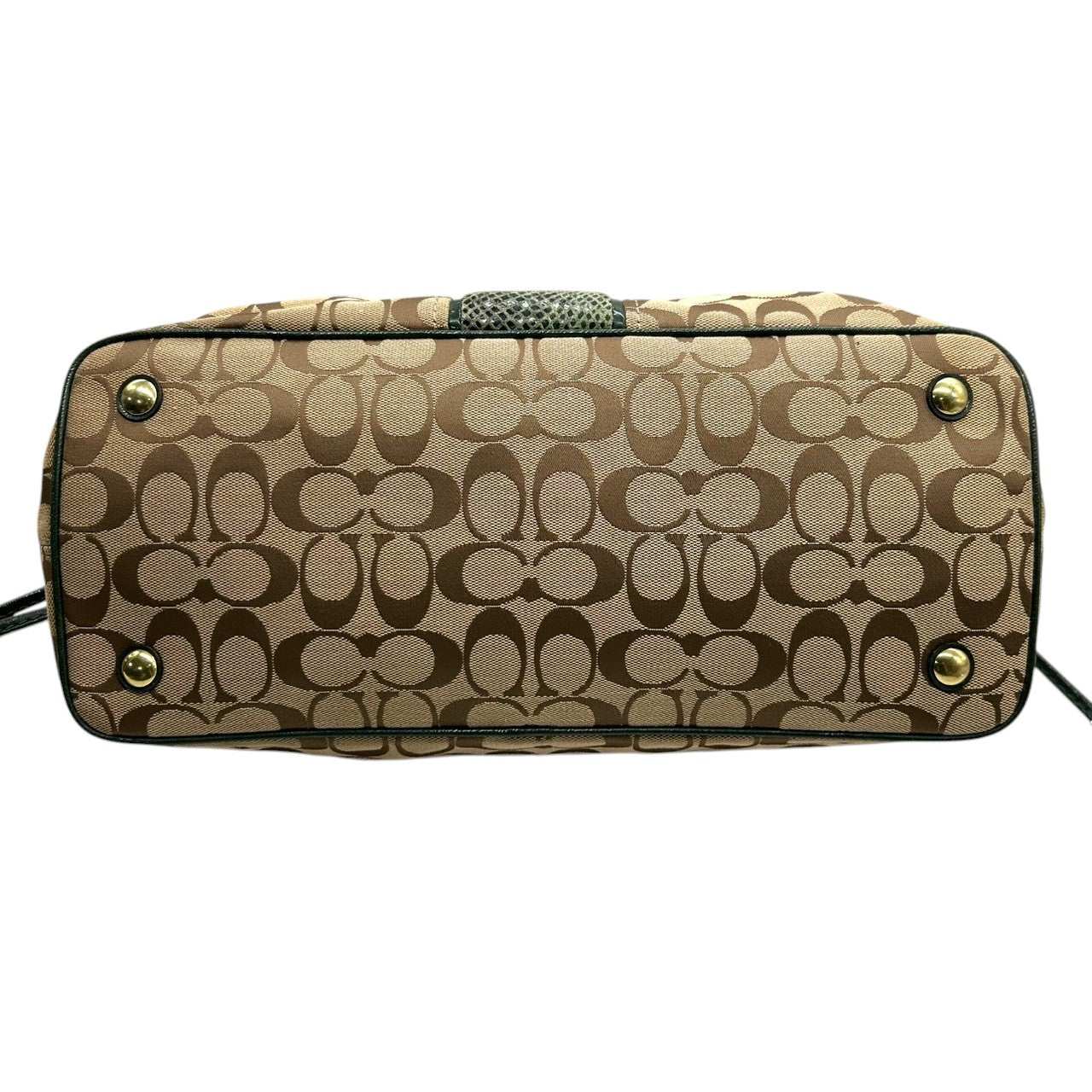 コーチ トートバッグ F24882 シグネチャー キャンバス 型押しレザー ブラウン グリーン 巾着型 A4収納可 大容量 肩掛け ワンショルダー レディース ハンドバッグ チャーム付き エレガントデザイン クリーニング済み s4