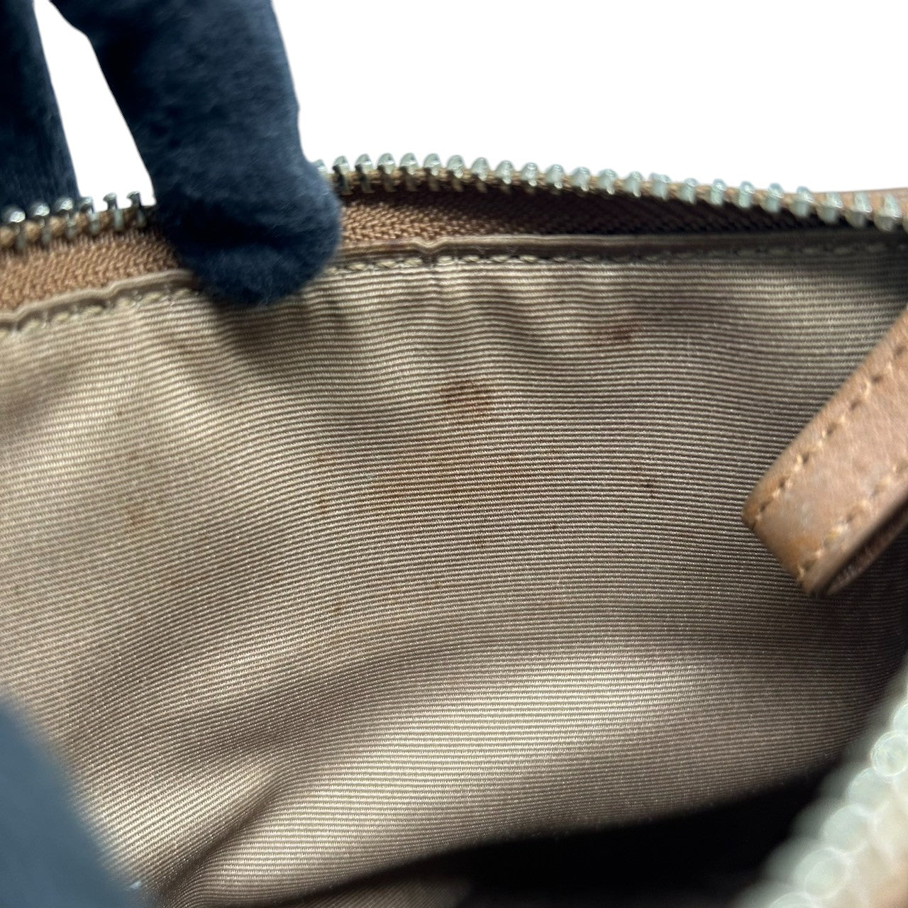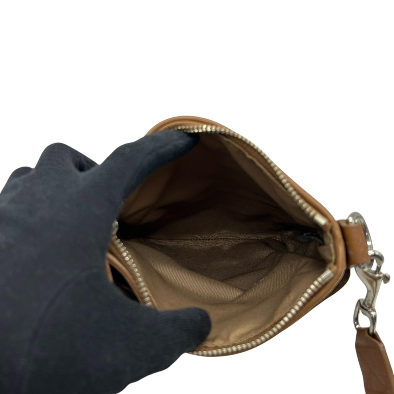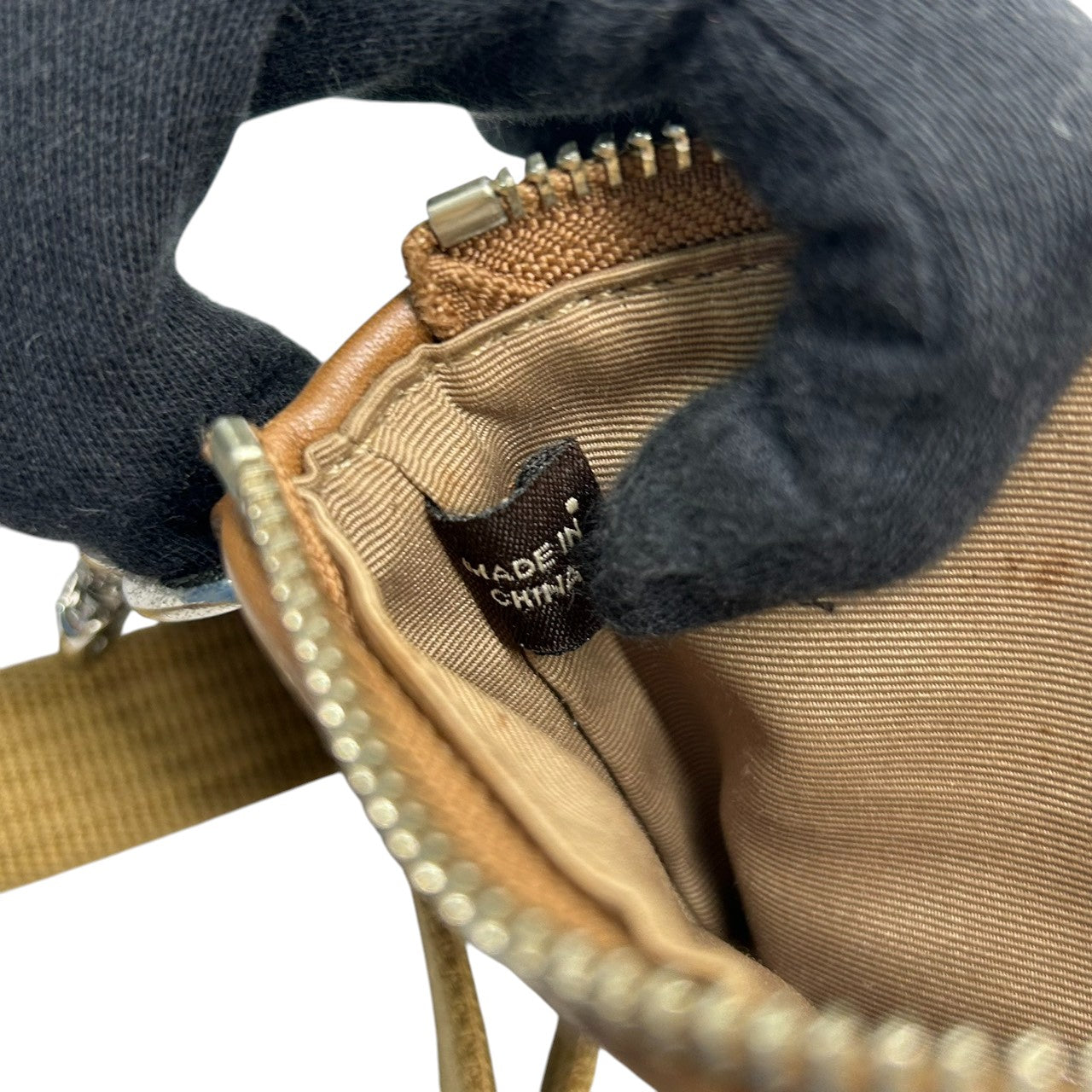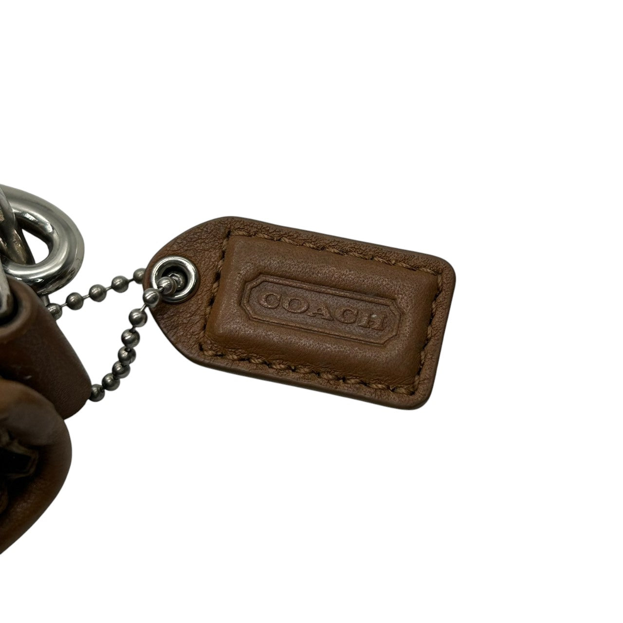 コーチ ショルダーバッグ シグネチャー ストライプ キャンバス レザー スエード ブラウン 斜め掛け可 ポシェット サコッシュ コンパクト 軽量 ミニショルダー レディース カジュアル チャーム付き スイングパック クリーニング済み s4