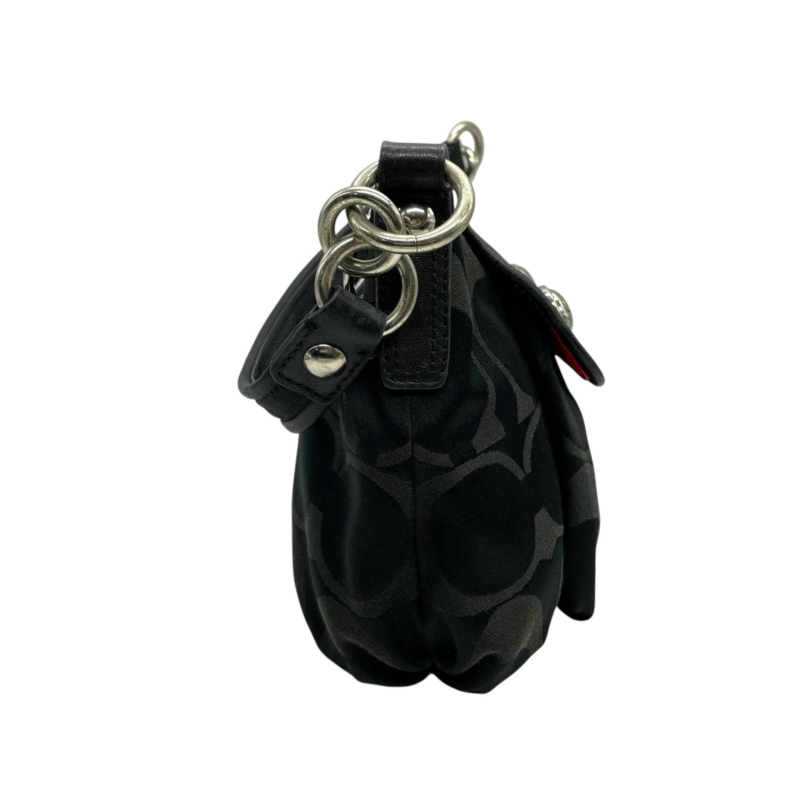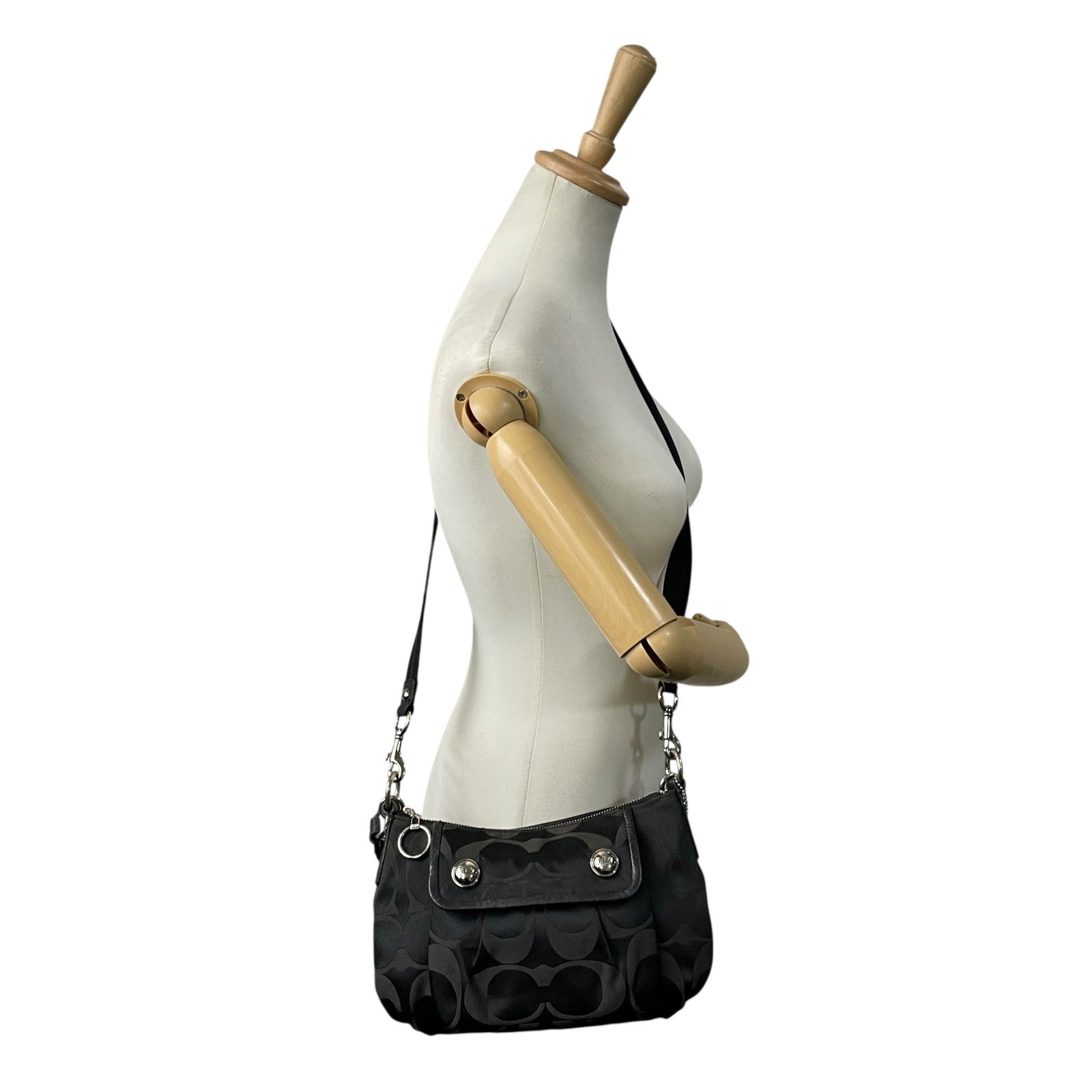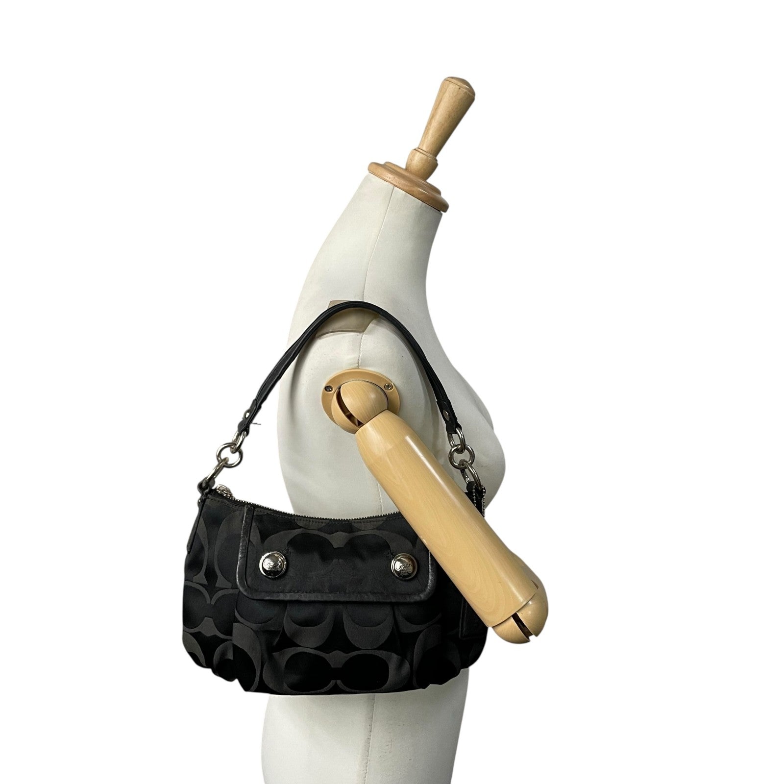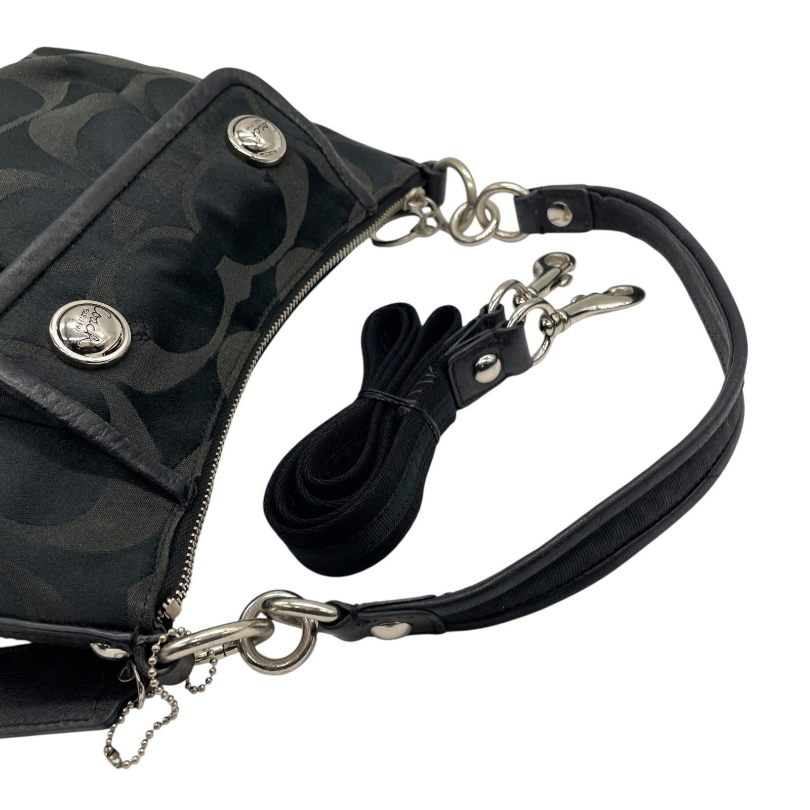 COACH コーチ ポピー シグネチャー 2WAY ショルダーバッグ ハンドバッグ 黒 ブラック キャンバス レザー シルバー金具 フラップポケット ファスナー開閉 肩掛け可 斜め掛け可 ホーボー レディース S30