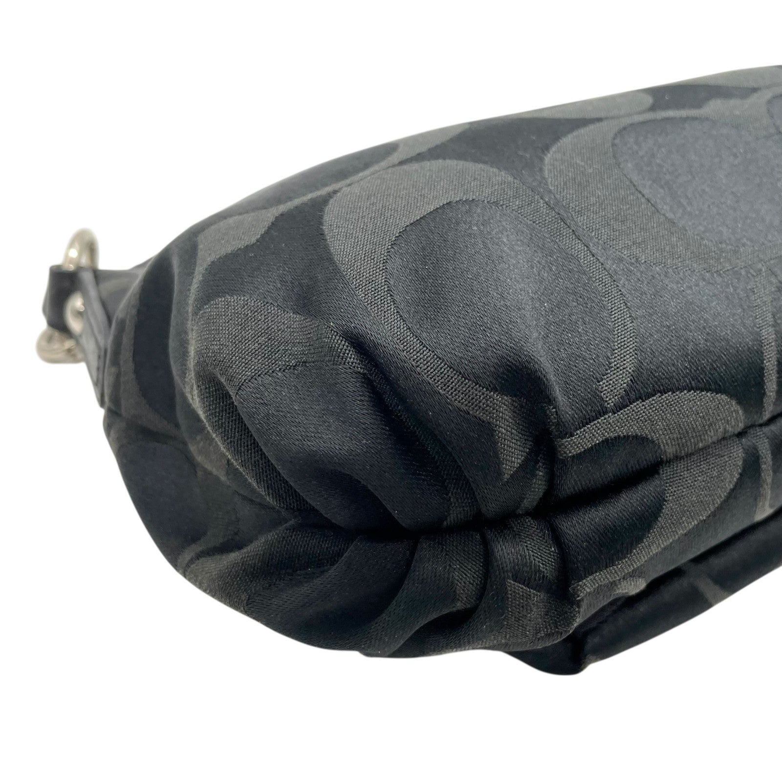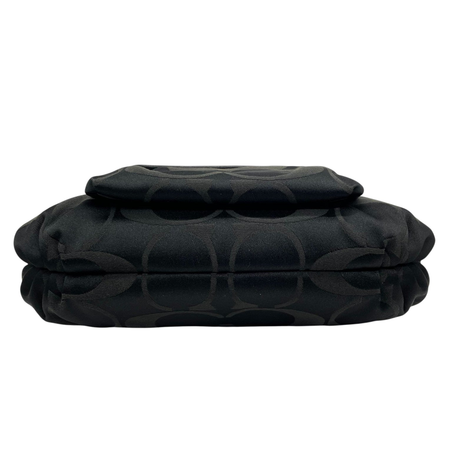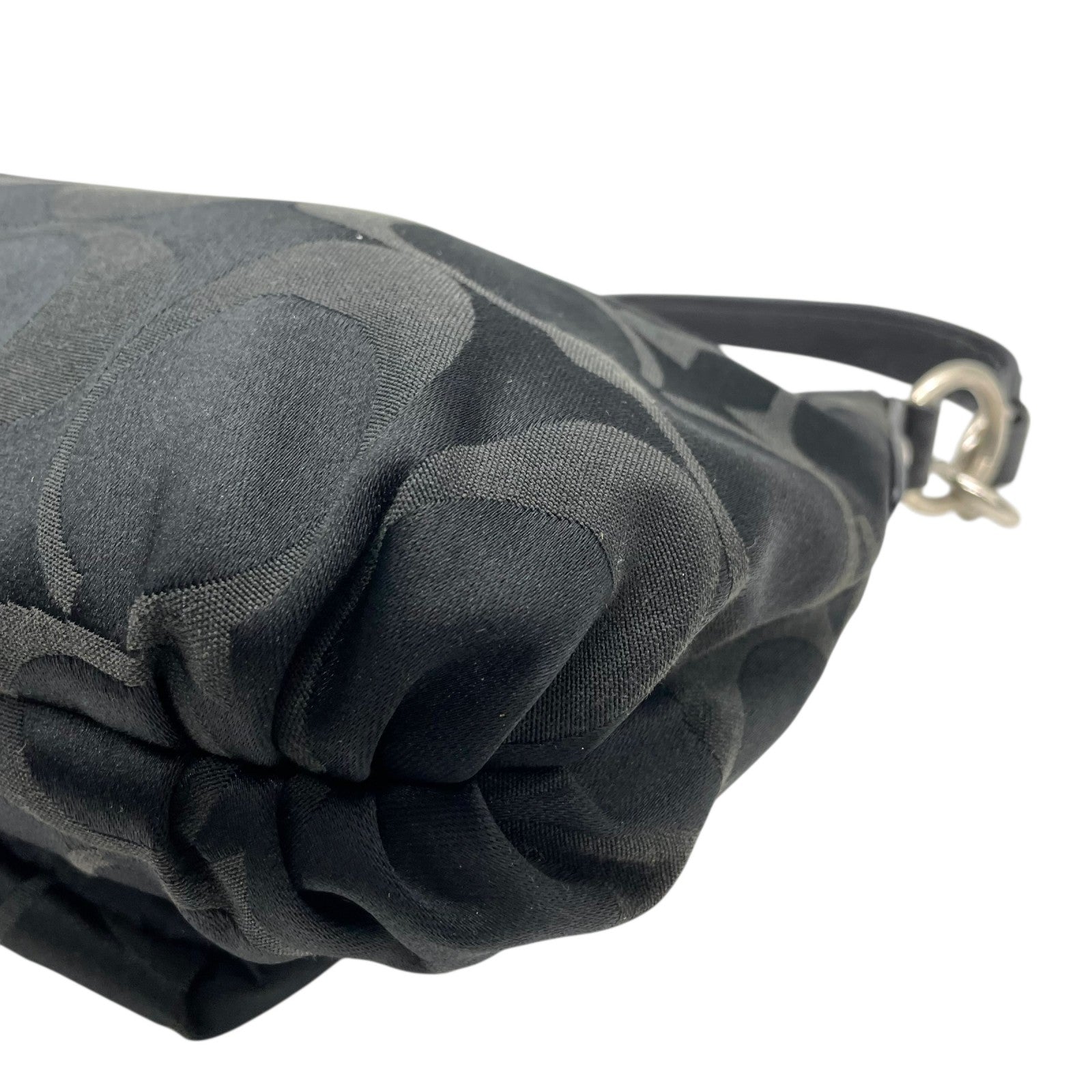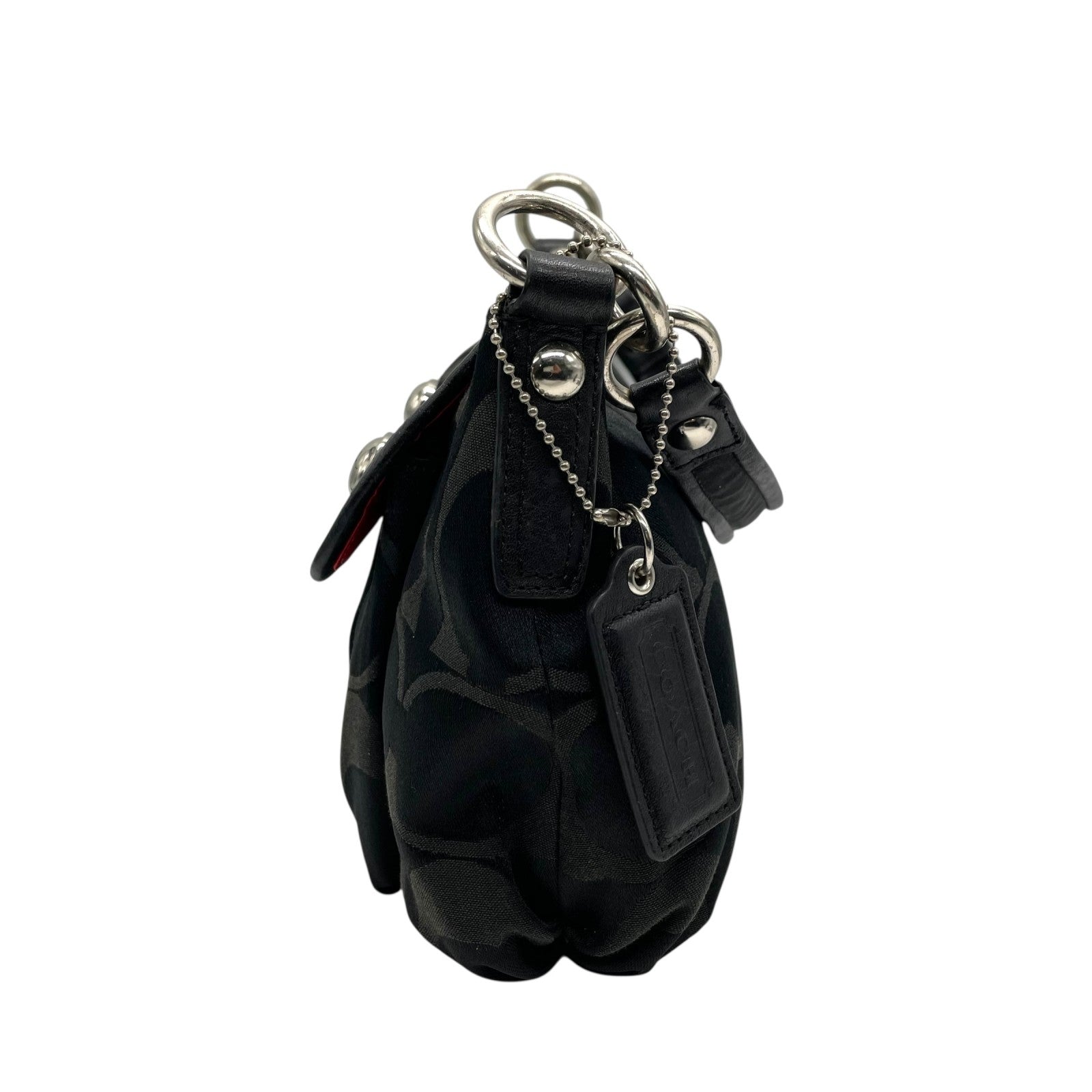COACH コーチ ポピー シグネチャー 2WAY ショルダーバッグ ハンドバッグ 黒 ブラック キャンバス レザー シルバー金具 フラップポケット ファスナー開閉 肩掛け可 斜め掛け可 ホーボー レディース S30