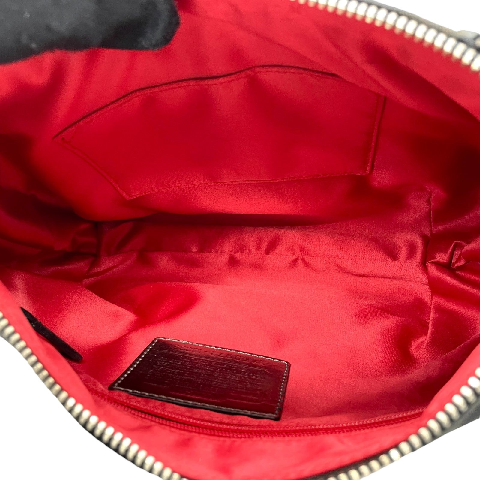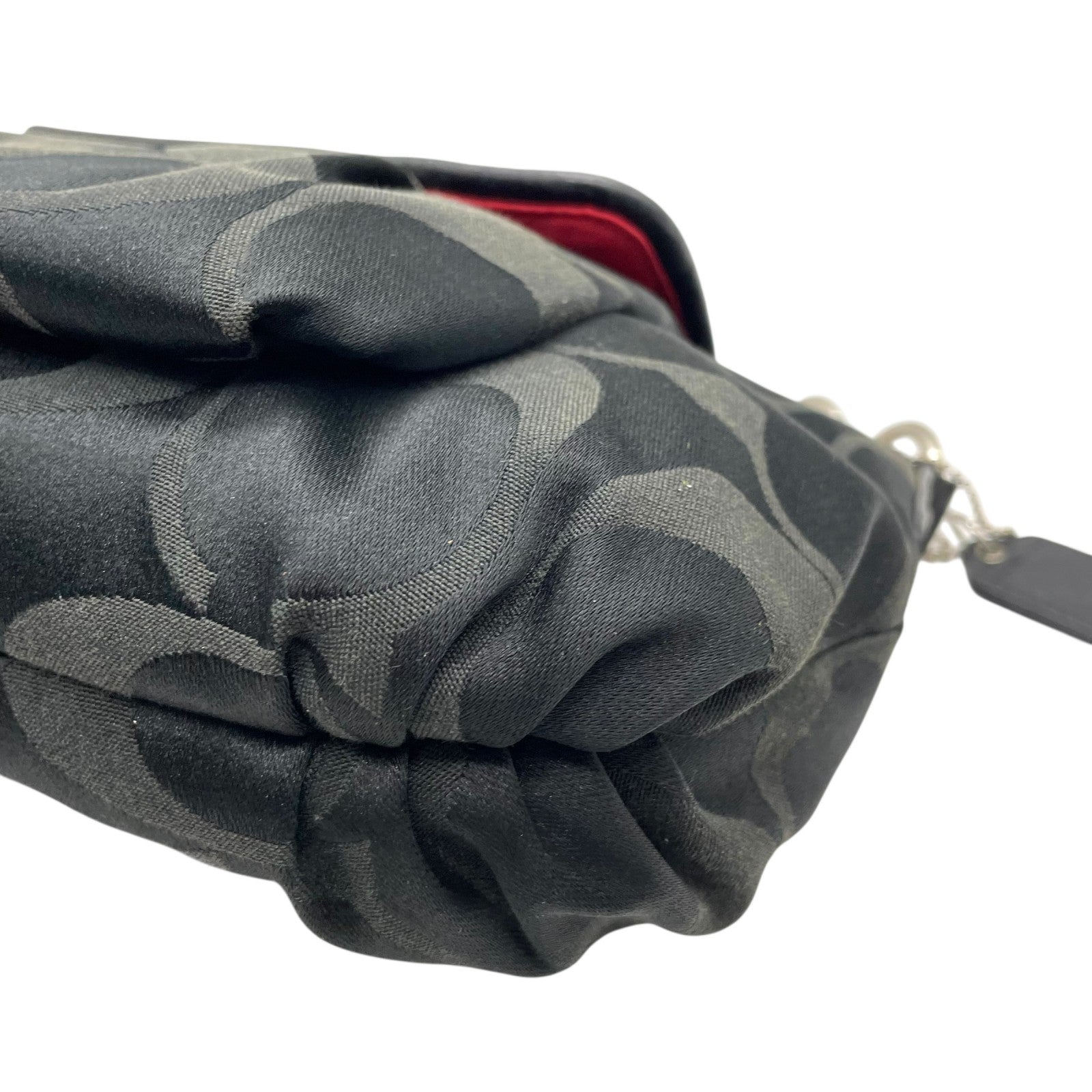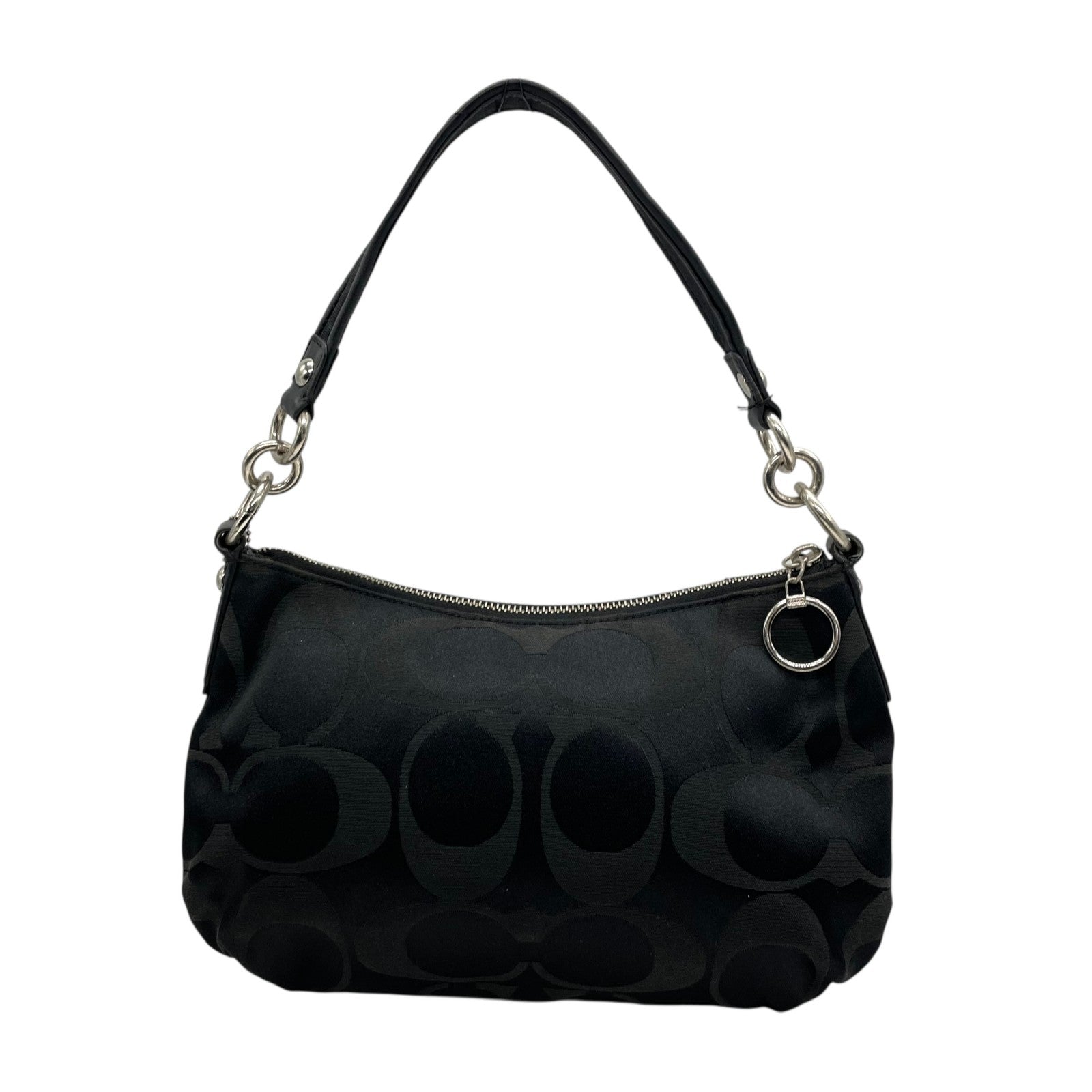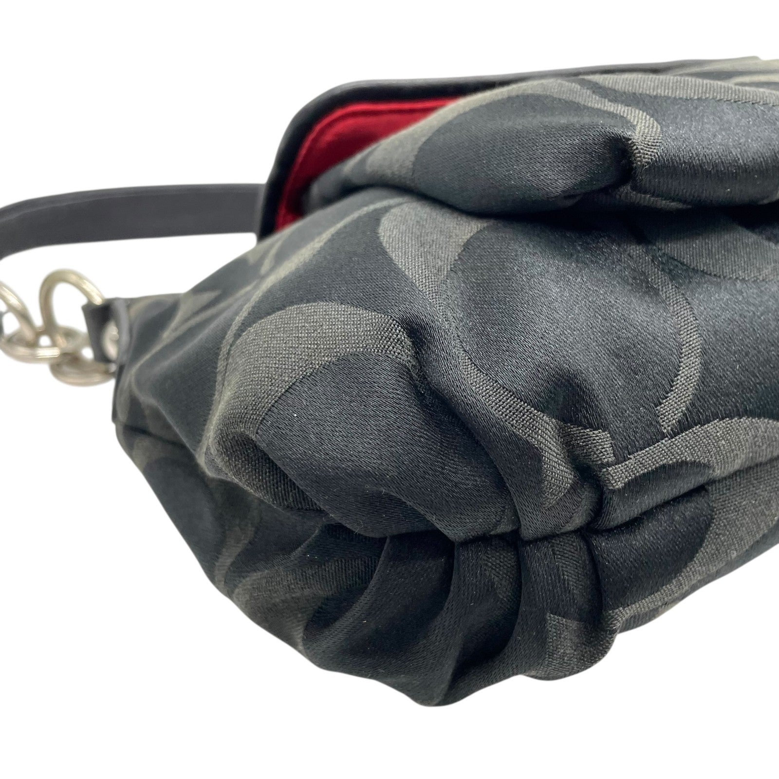 COACH コーチ ポピー シグネチャー 2WAY ショルダーバッグ ハンドバッグ 黒 ブラック キャンバス レザー シルバー金具 フラップポケット ファスナー開閉 肩掛け可 斜め掛け可 ホーボー レディース S30