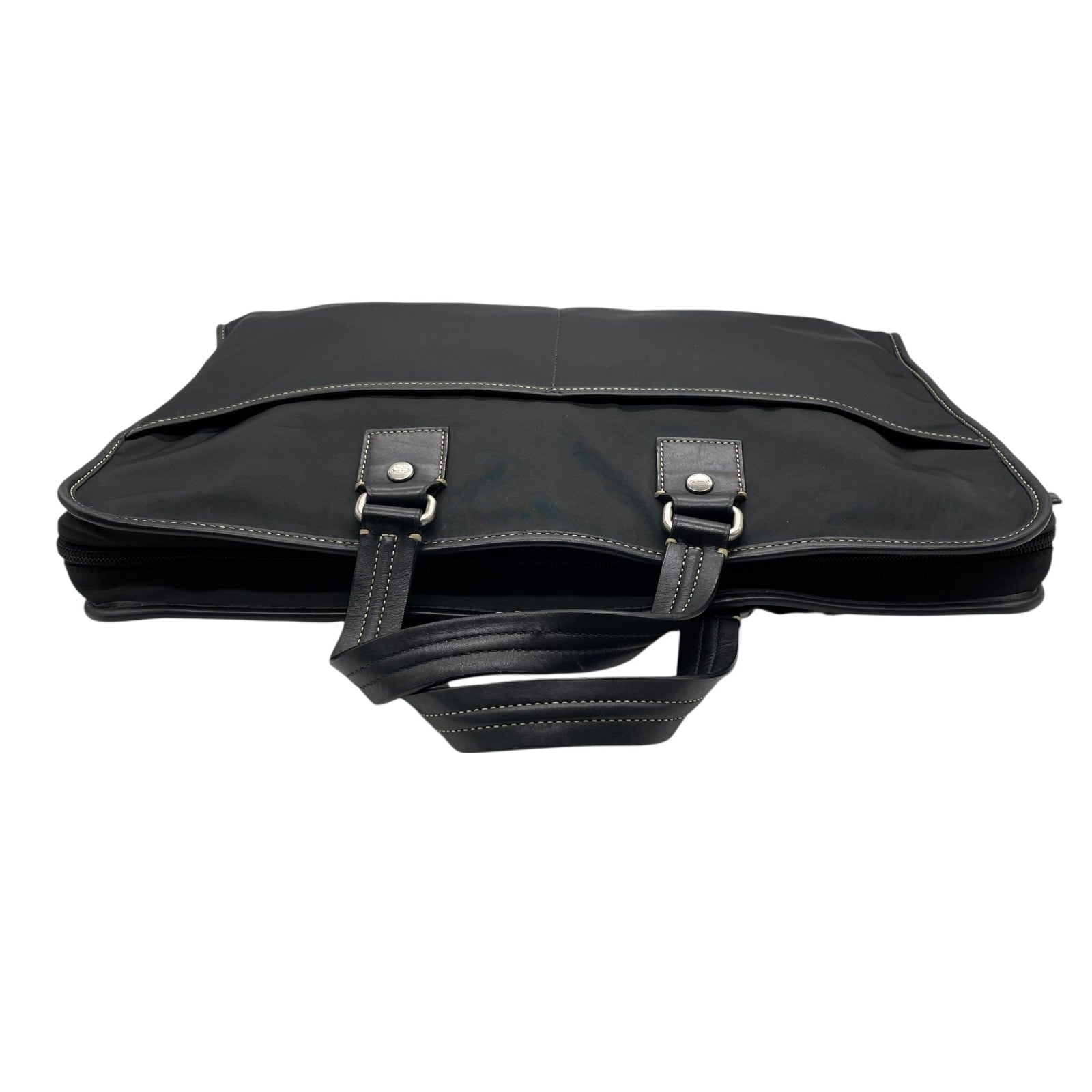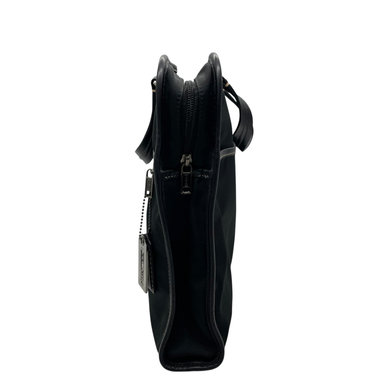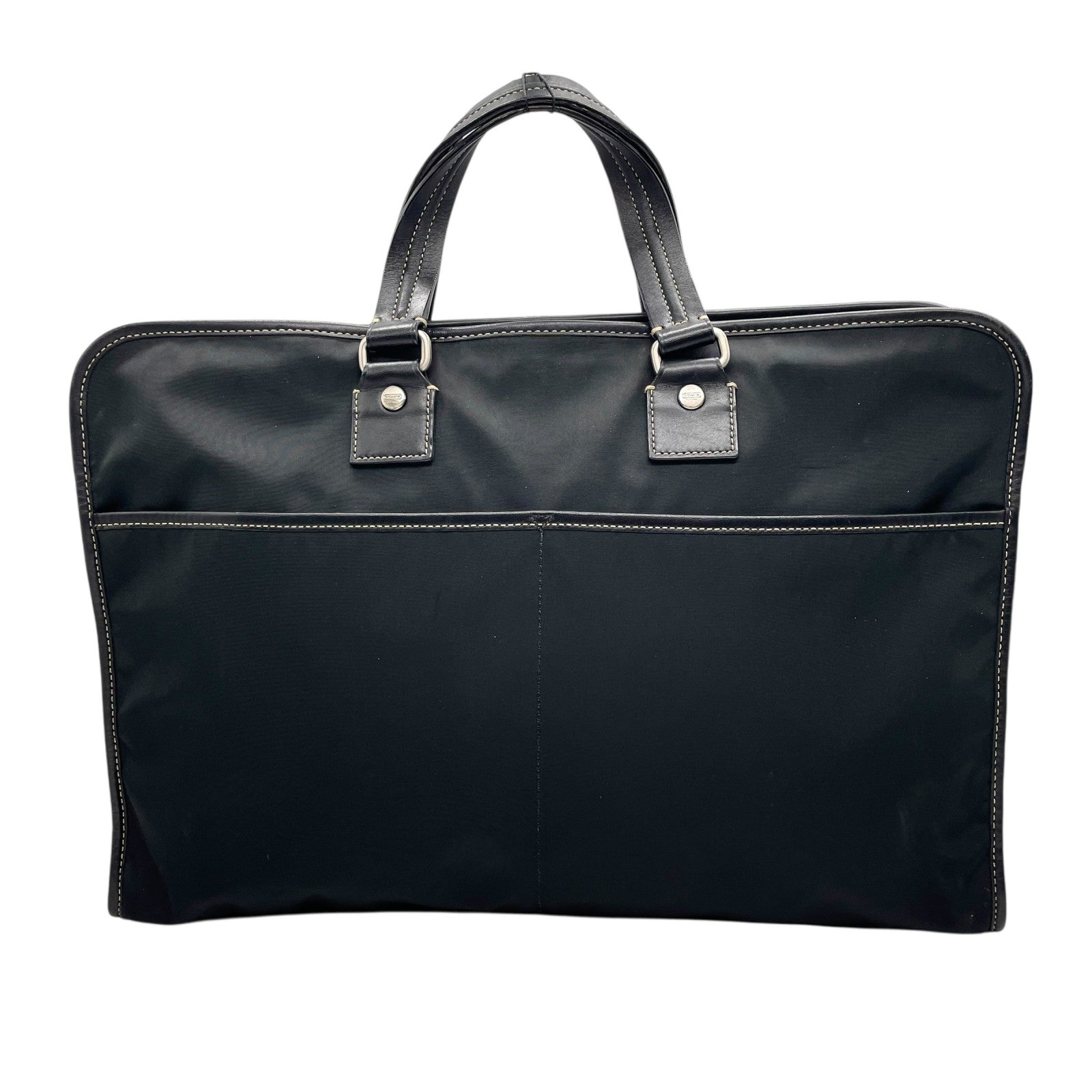 COACH コーチ ビジネスバッグ ブリーフケース 黒 ブラック キャンバス レザー シルバー金具 ステッチ ロゴチャーム付き ファスナー開閉 メンズ X2
