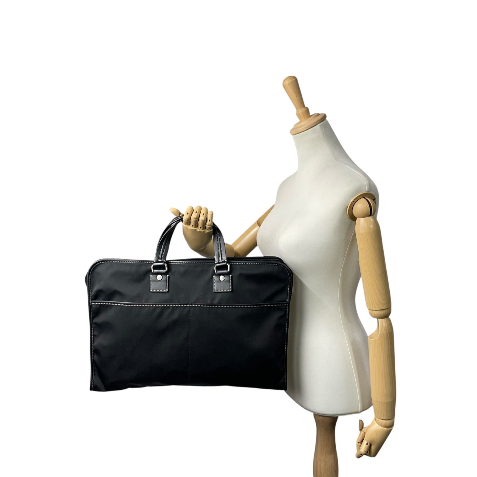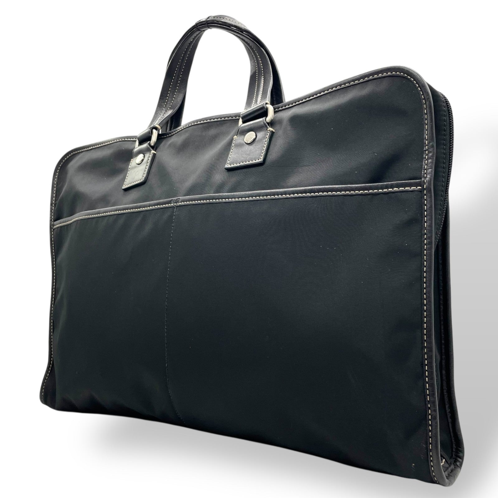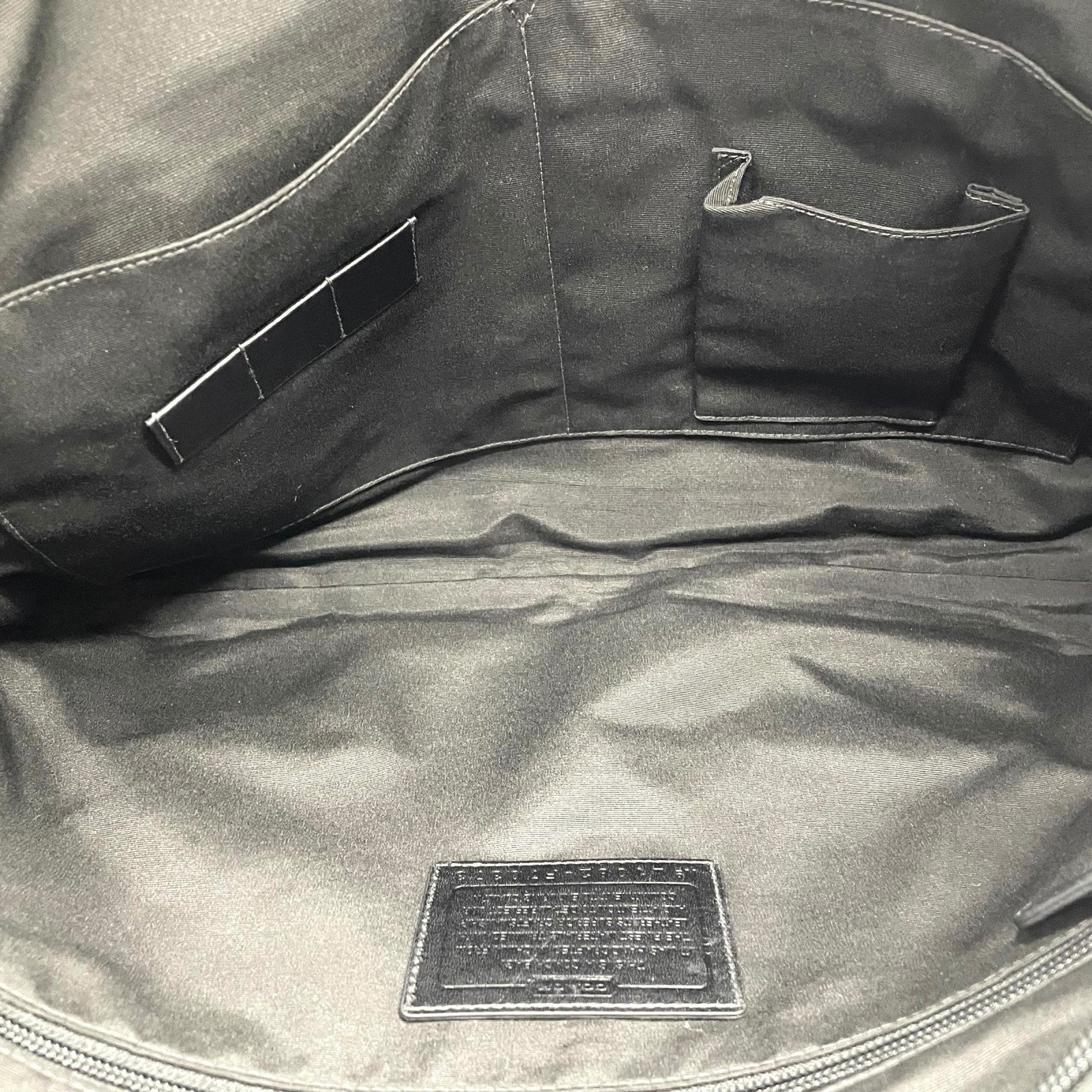 COACH コーチ ビジネスバッグ ブリーフケース 黒 ブラック キャンバス レザー シルバー金具 ステッチ ロゴチャーム付き ファスナー開閉 メンズ X2