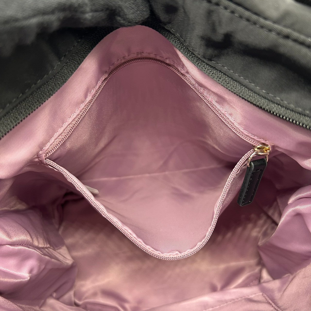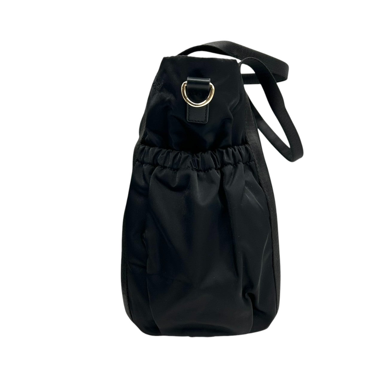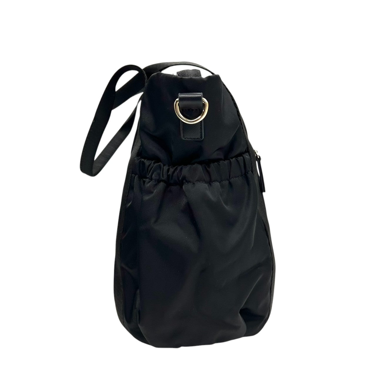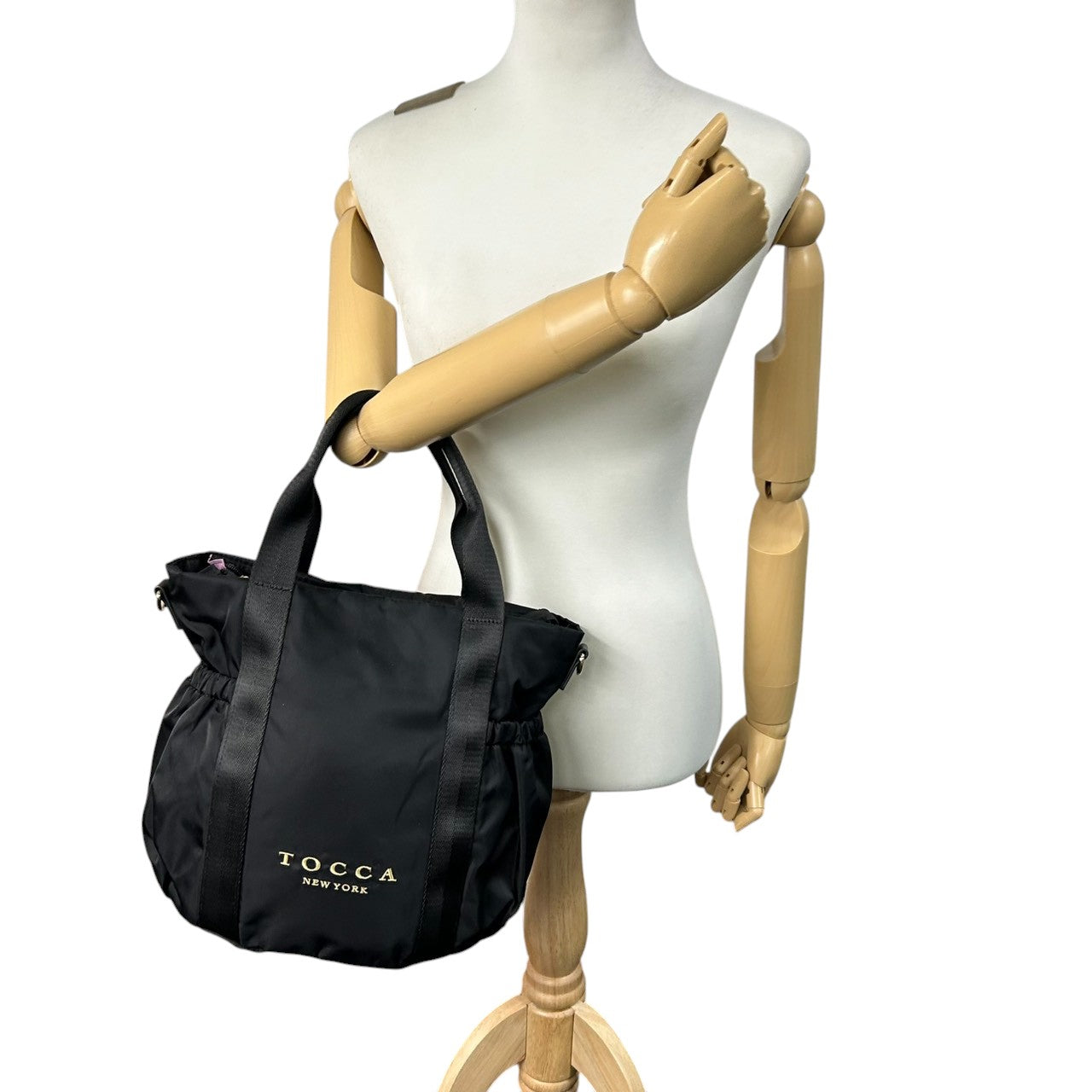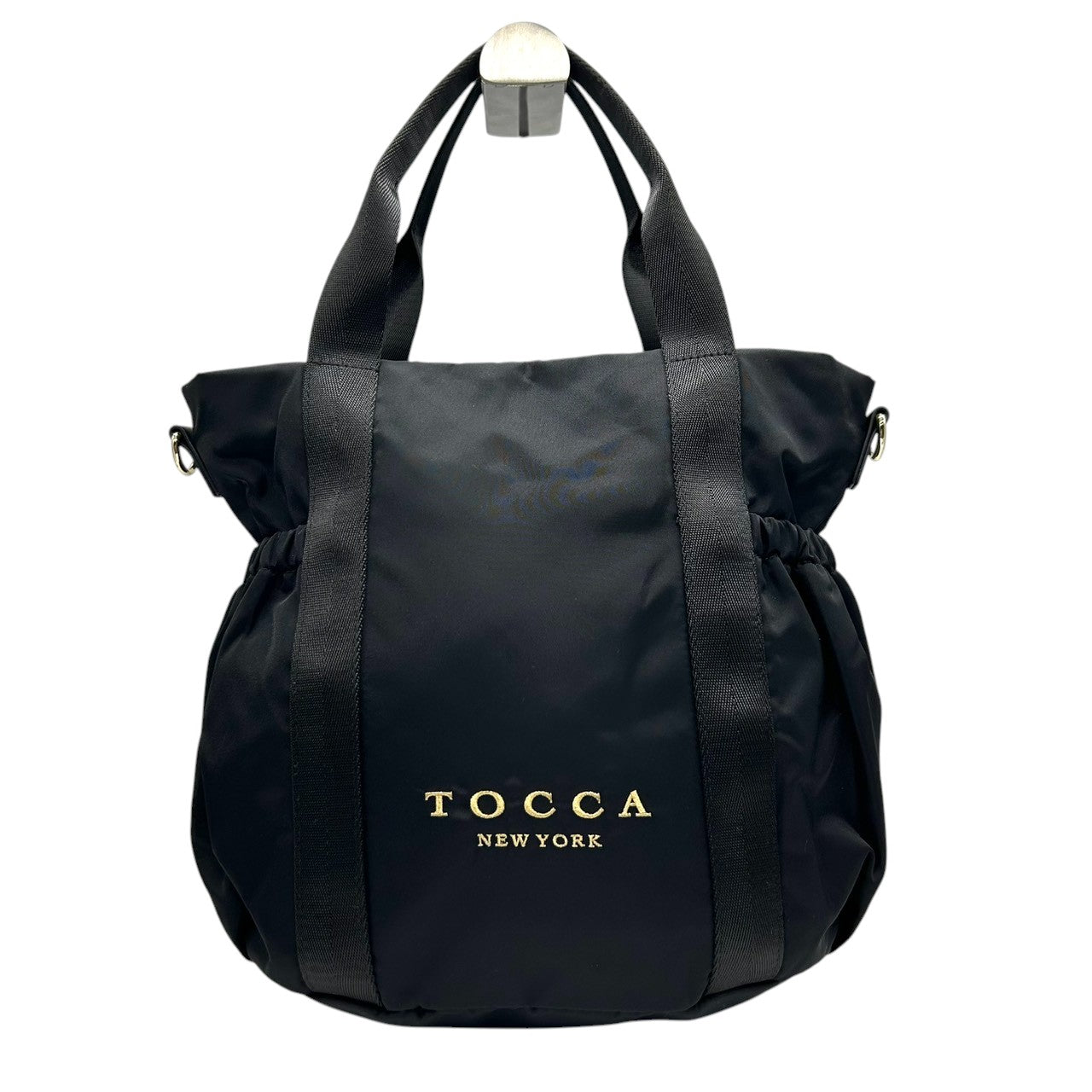 【未使用級】トッカ 2WAY トートバッグ ナイロン ブラック A4収納可 斜め掛け可 レディース ハンドバッグ ショルダーバッグ ロゴ マザーズバッグ 通勤 通学 軽量 エレガント フェミニン サイドギャザー 自立可 ゴールド金具 クリーニング済み s21