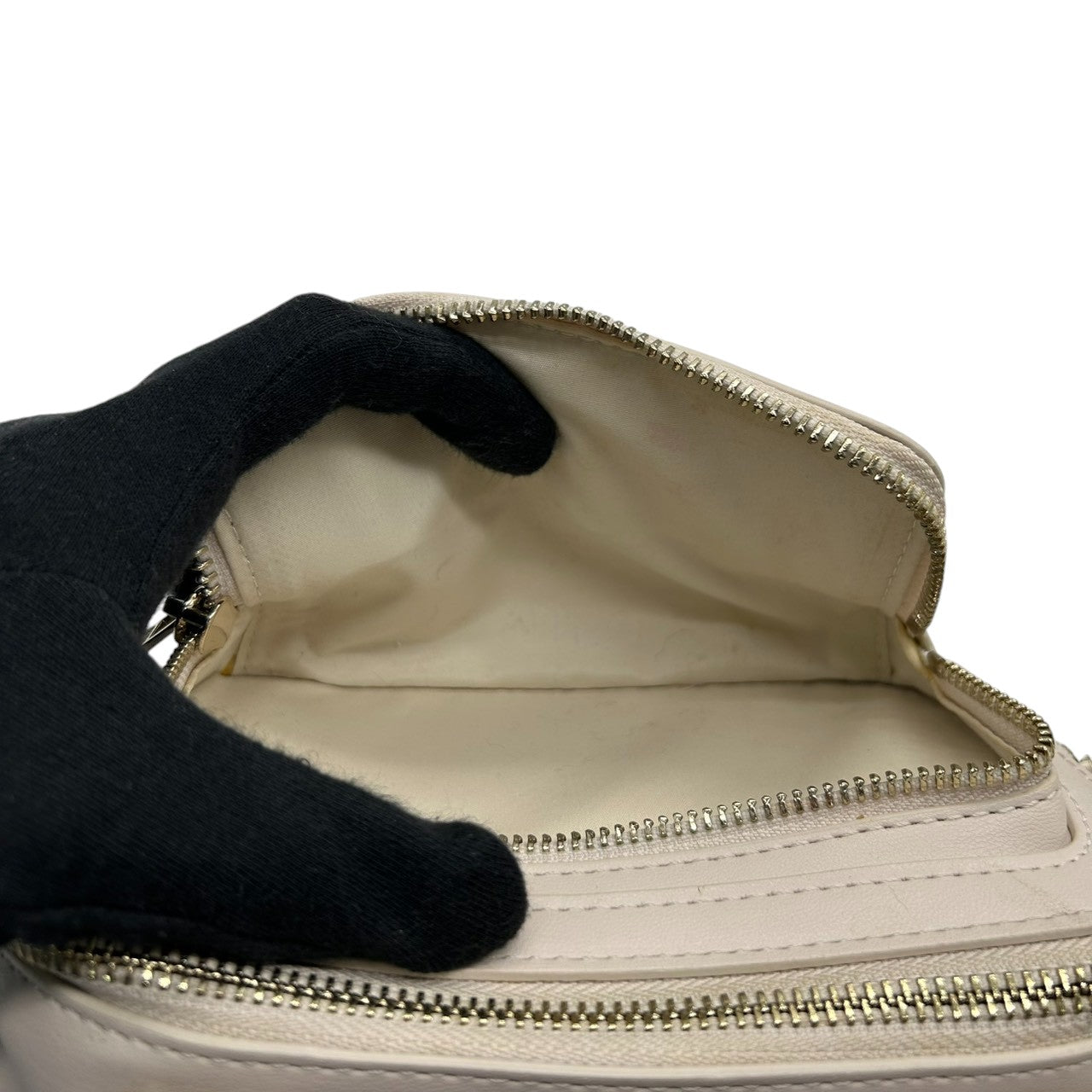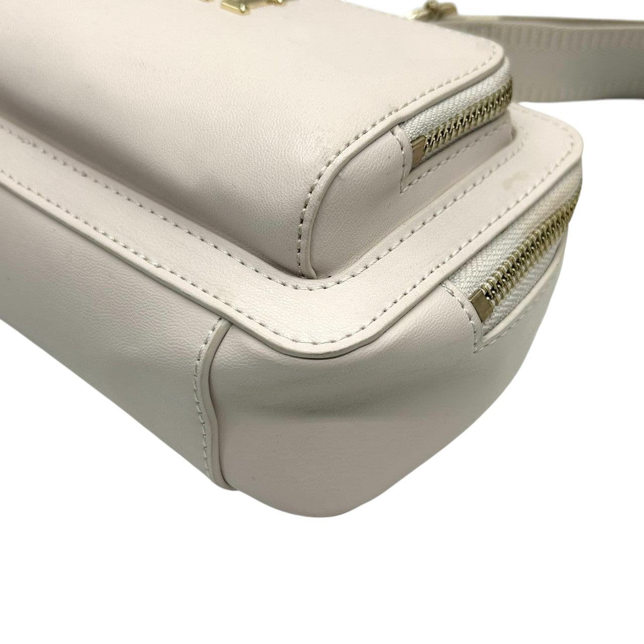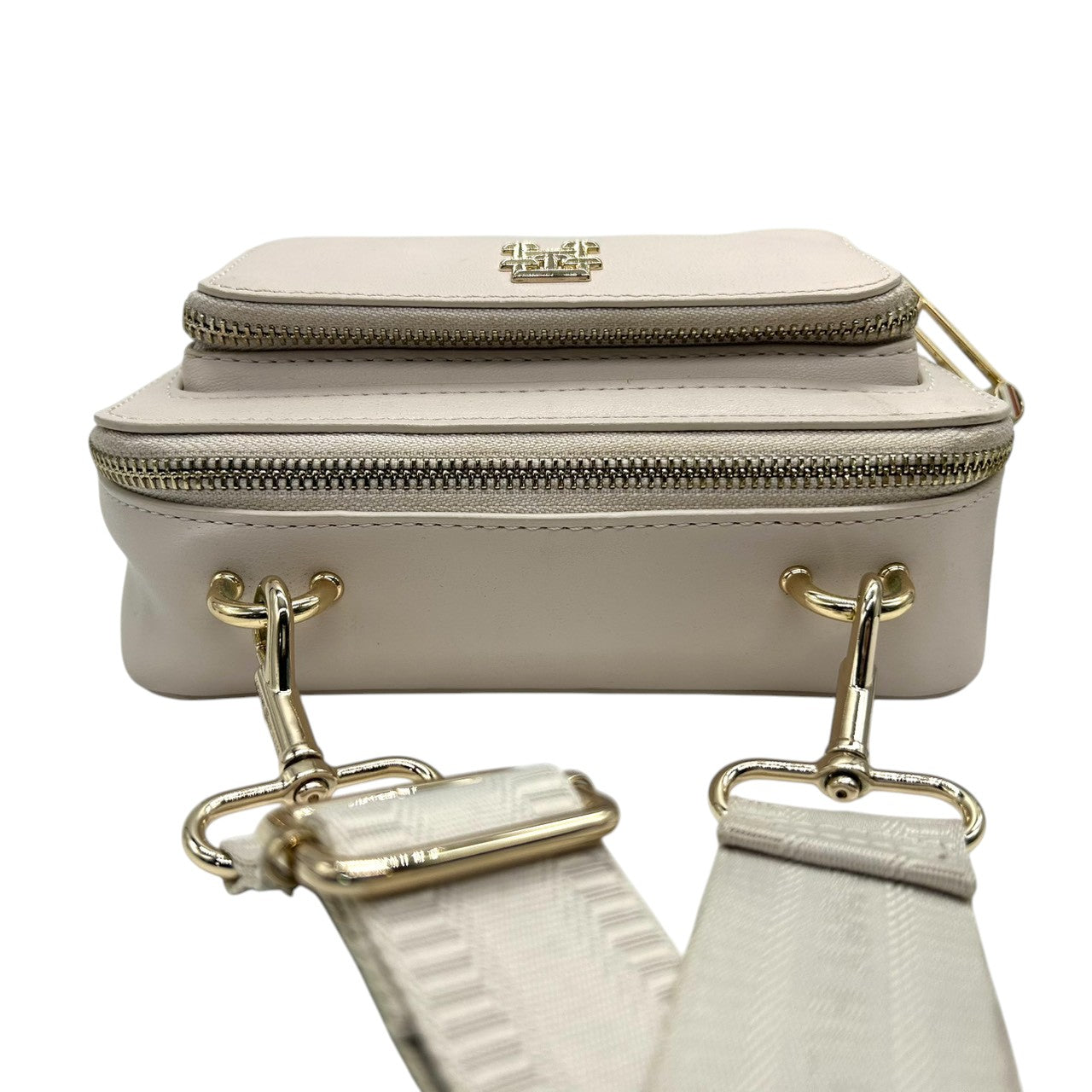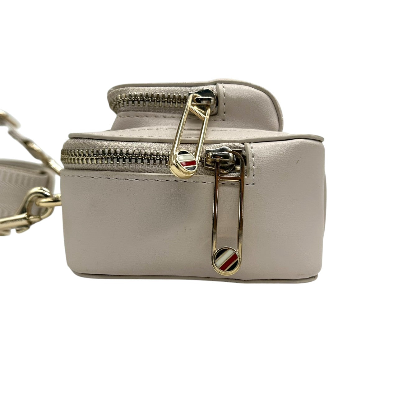 【美品】トミーヒルフィガー ショルダーバッグ レザー 本革 ホワイト THロゴ カメラバッグ ポシェット 斜め掛け可 レディース コンパクト ミニショルダー ゴールド金具 カジュアル スポーティー デイリーユース ワイドストラップ クリーニング済み s21