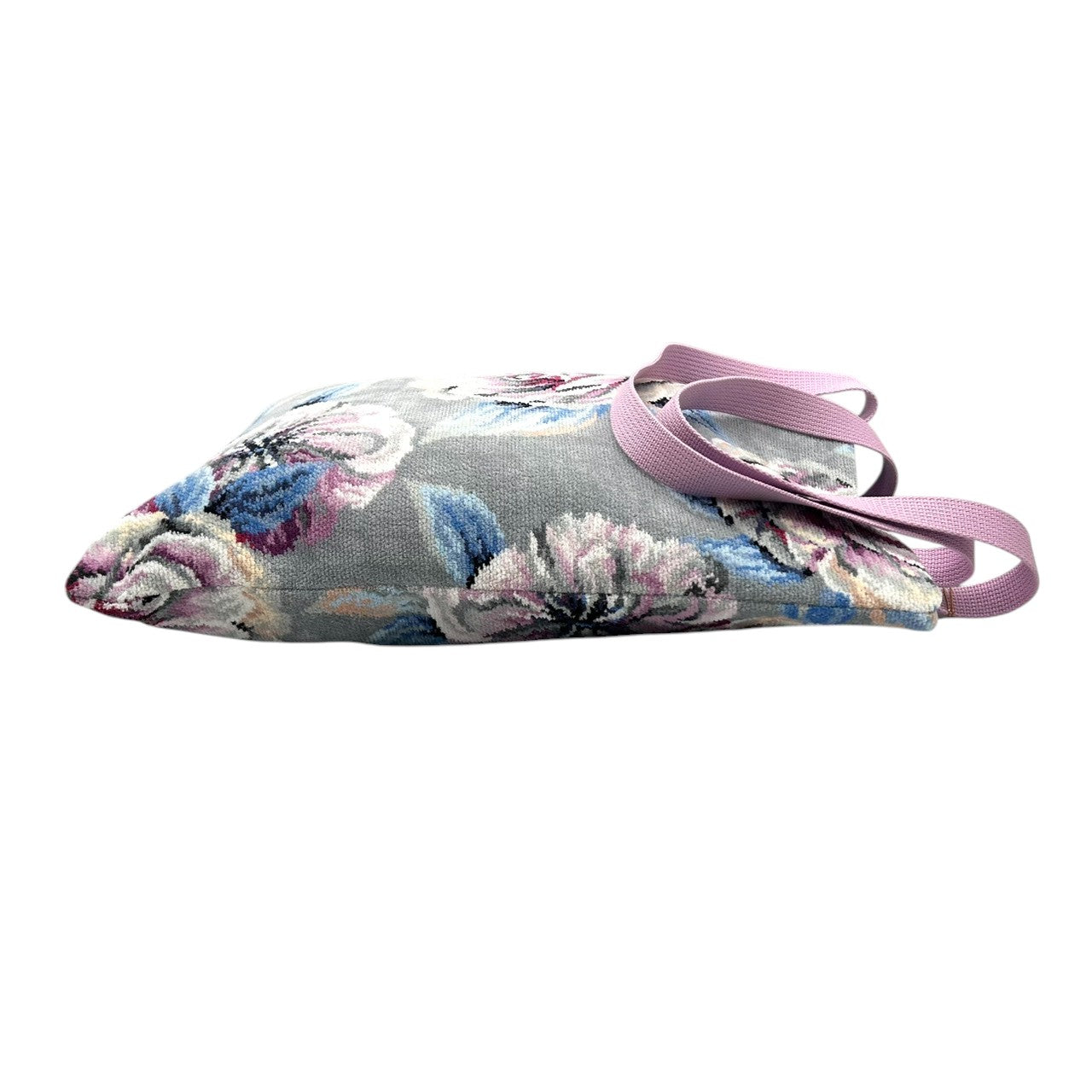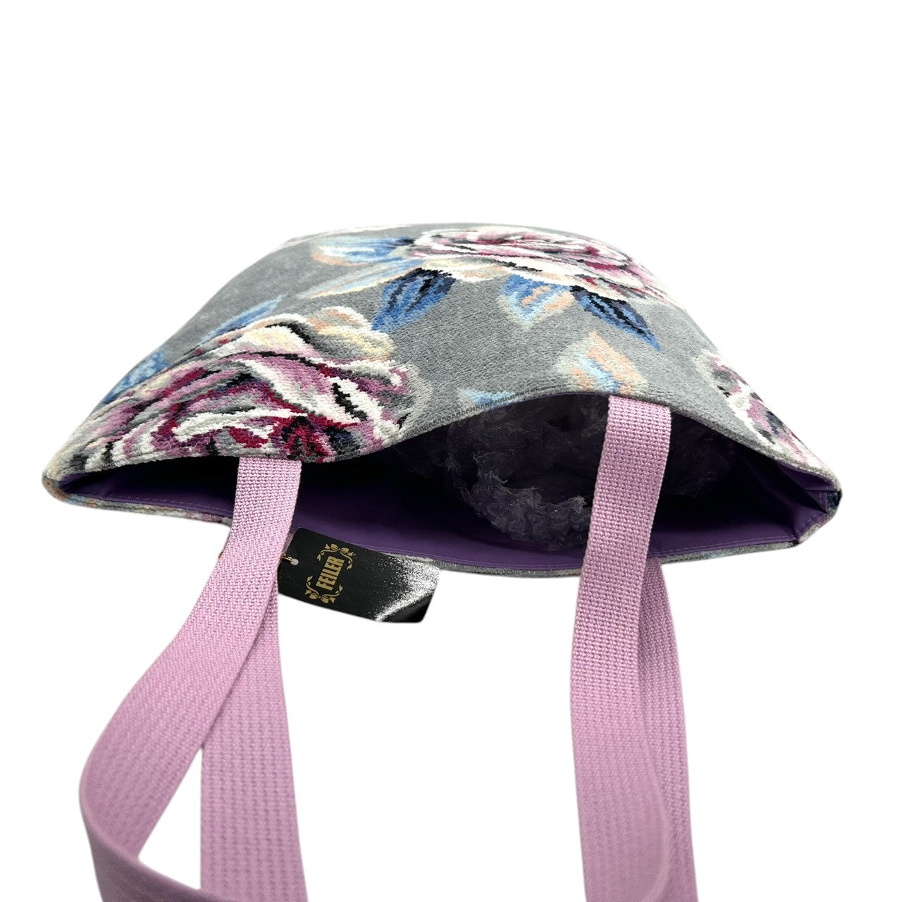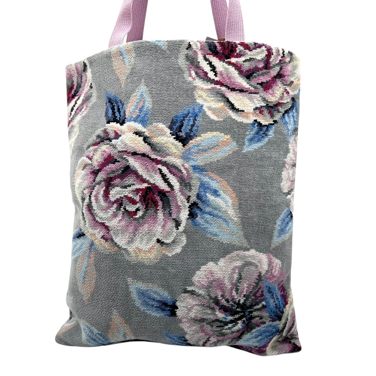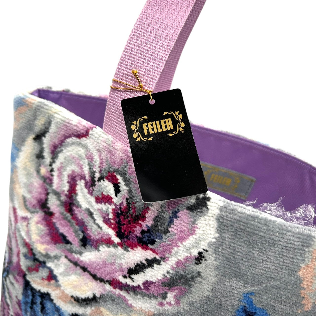 【未使用級】 FEILER ローランサン フェイラー トートバッグ シェニール織 花柄 ローズ グレー A4収納可 大容量 肩掛け ワンショルダー レディース ハンドバッグ エレガント フェミニン 上品 軽量 お出かけ デイリーユース クリーニング済み s21