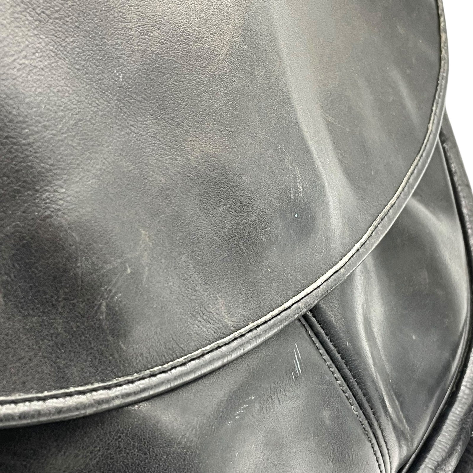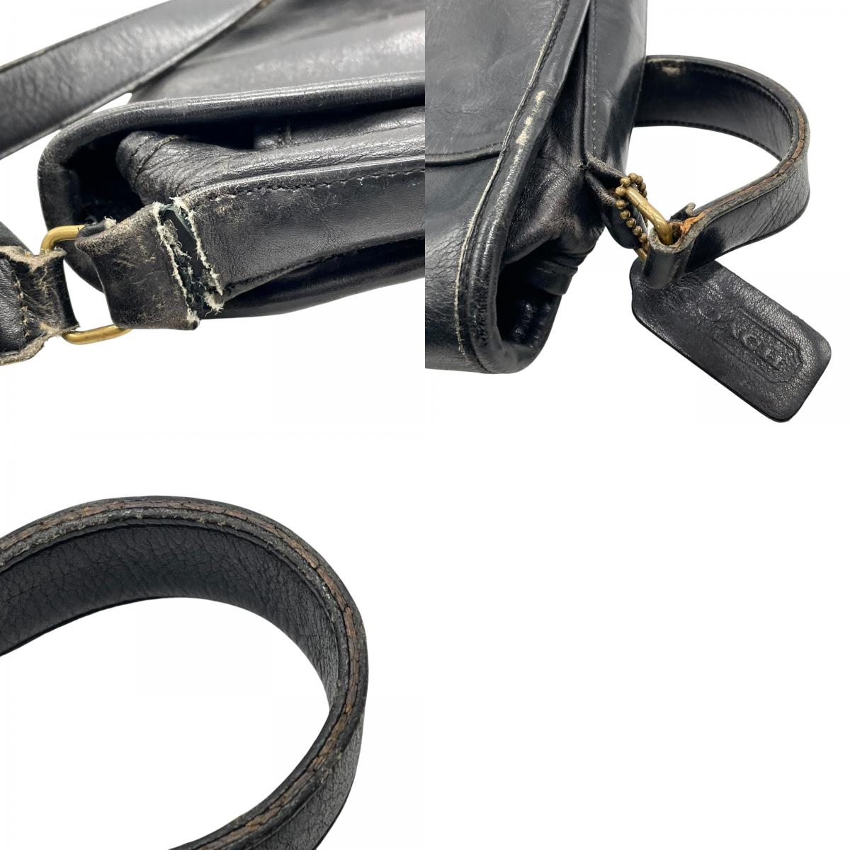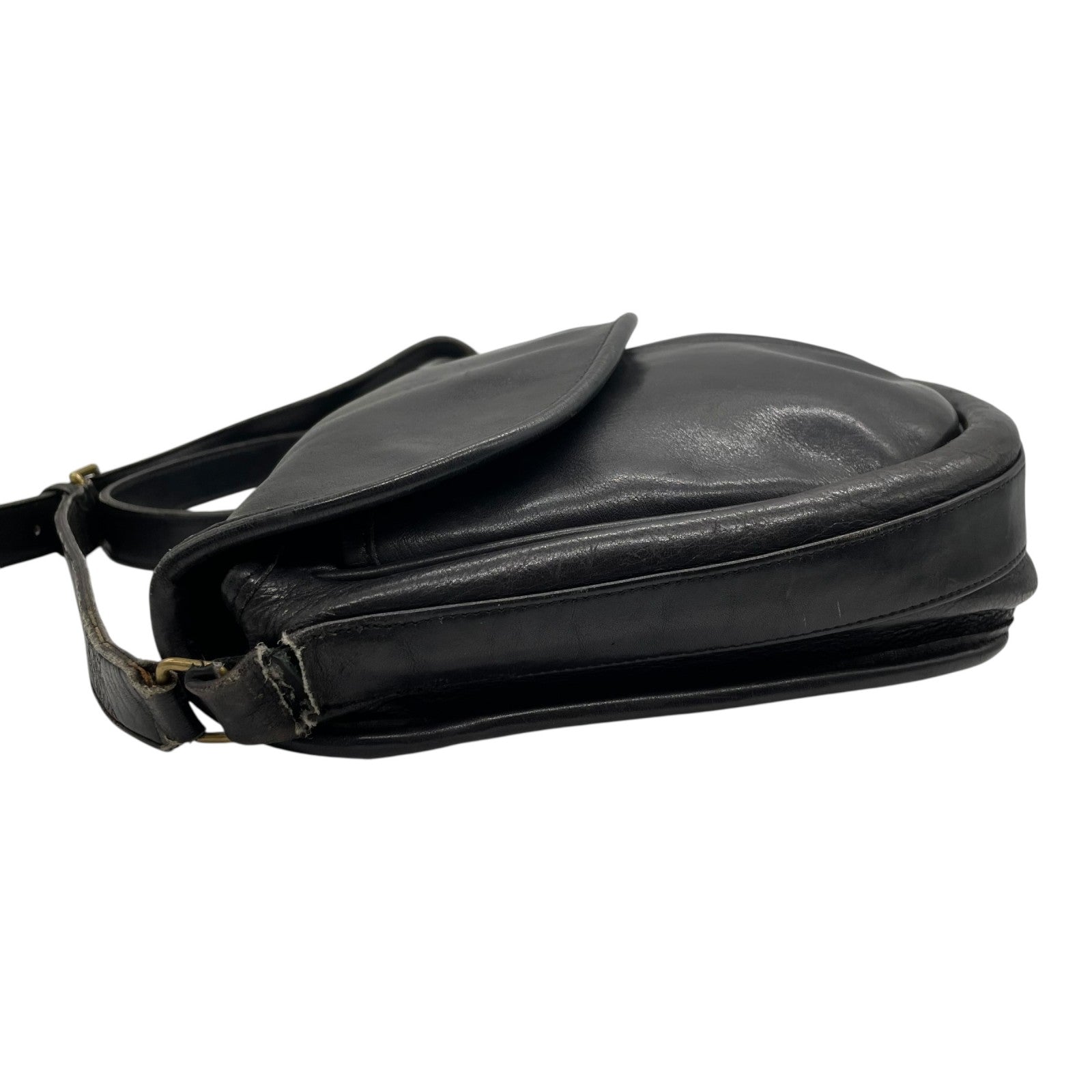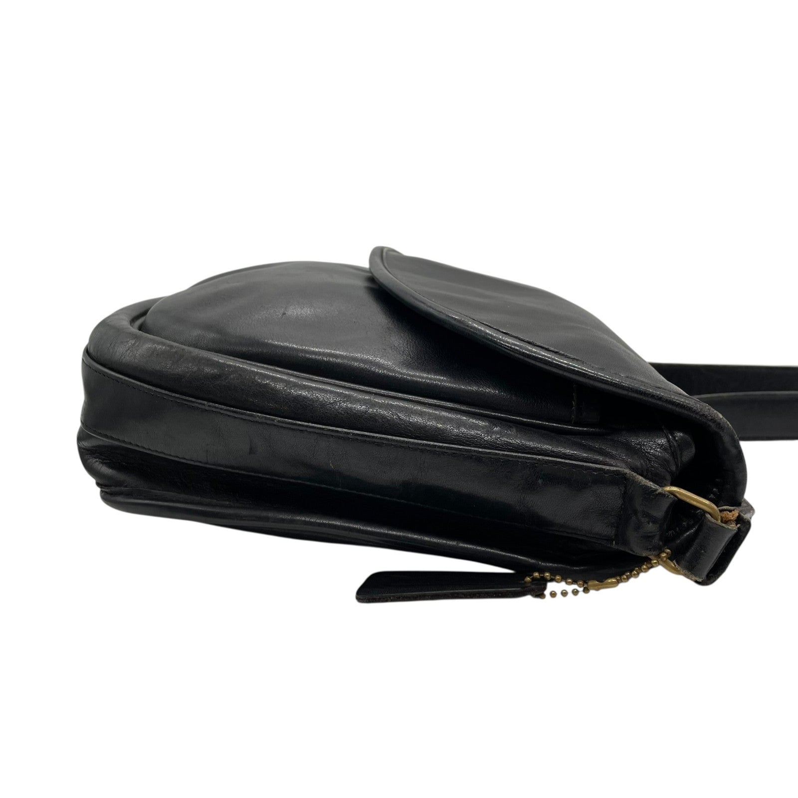 オールドコーチ COACH ショルダーバッグ メッセンジャーバッグ 黒 ブラック レザー ゴールド金具 ロゴチャーム付き フラップ開閉 ヴィンテージ メンズ レディース E2