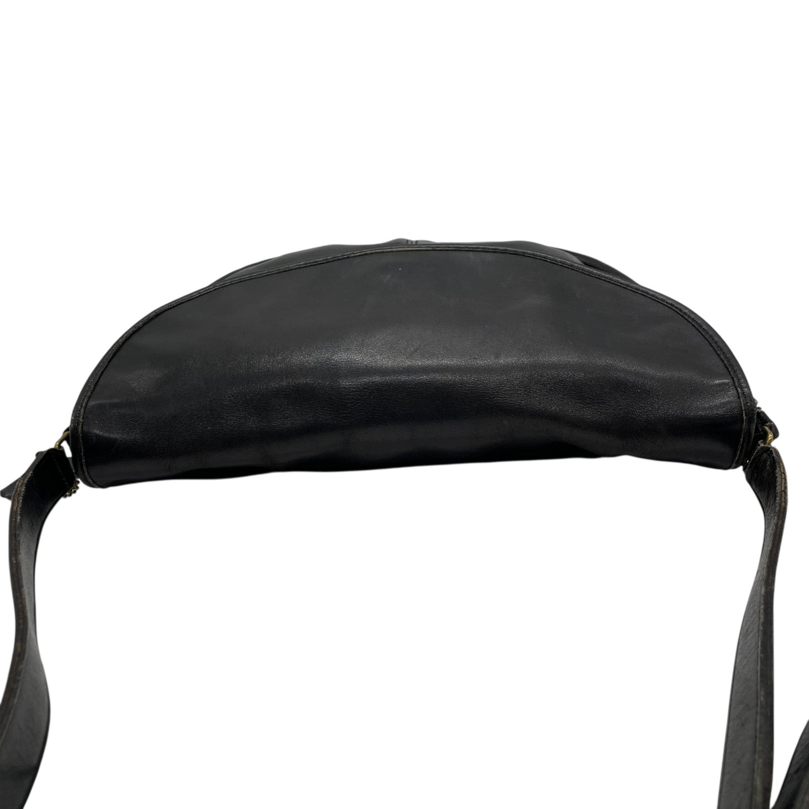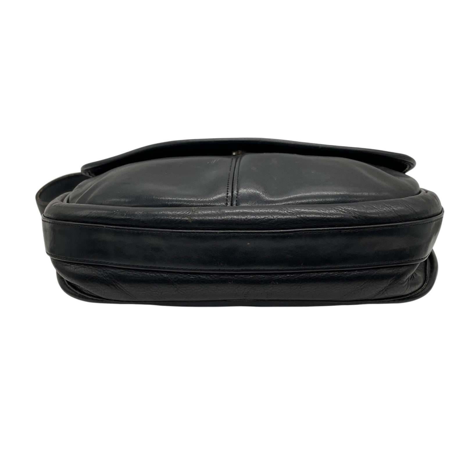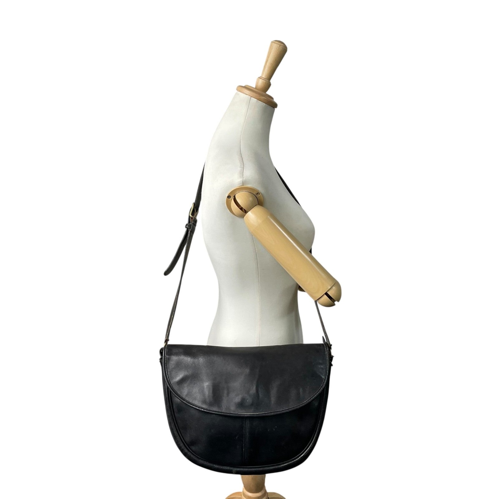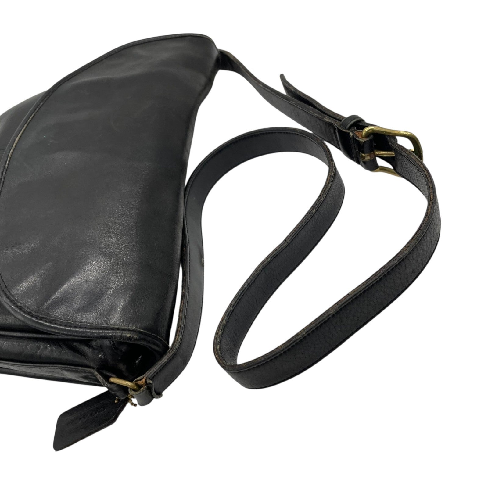 オールドコーチ COACH ショルダーバッグ メッセンジャーバッグ 黒 ブラック レザー ゴールド金具 ロゴチャーム付き フラップ開閉 ヴィンテージ メンズ レディース E2
