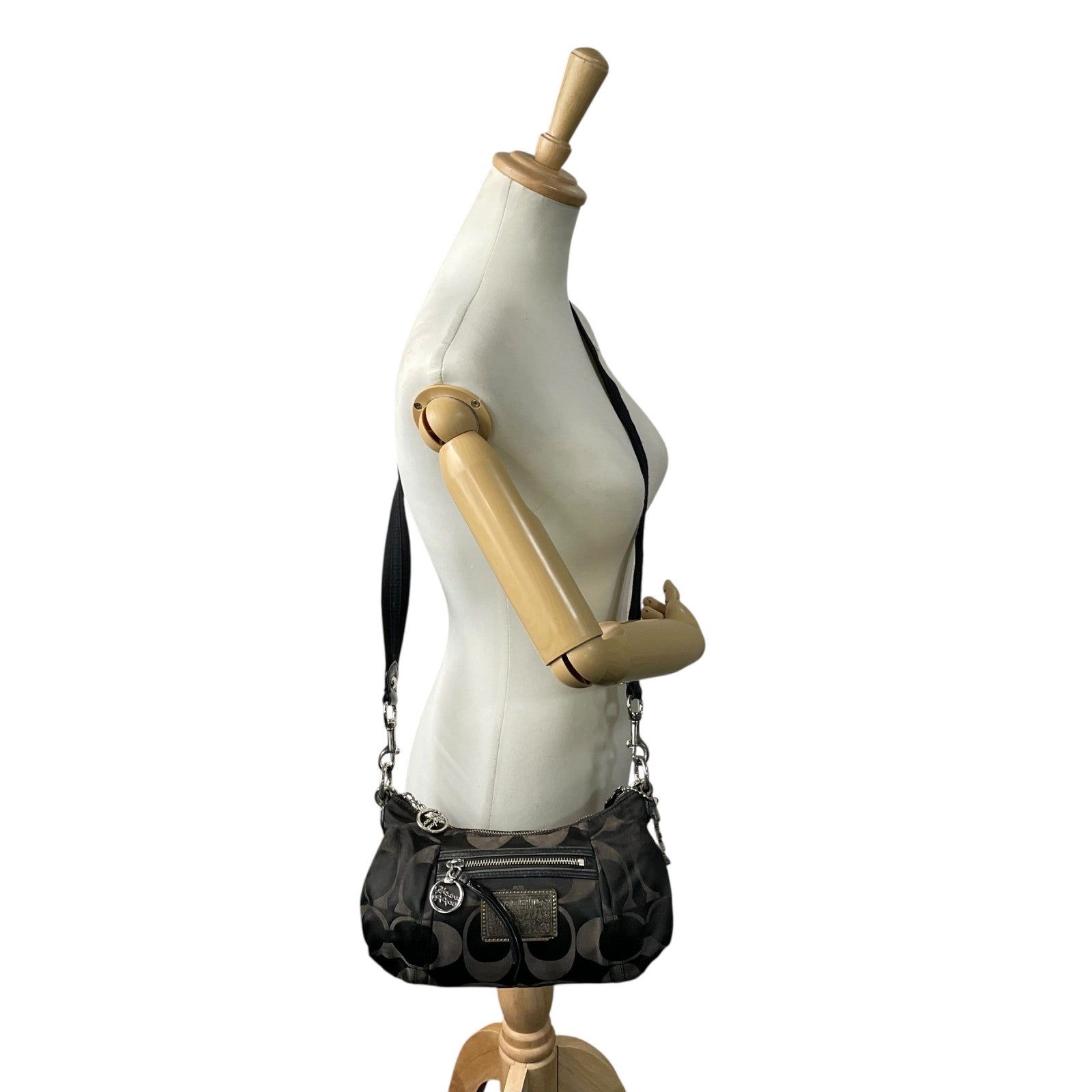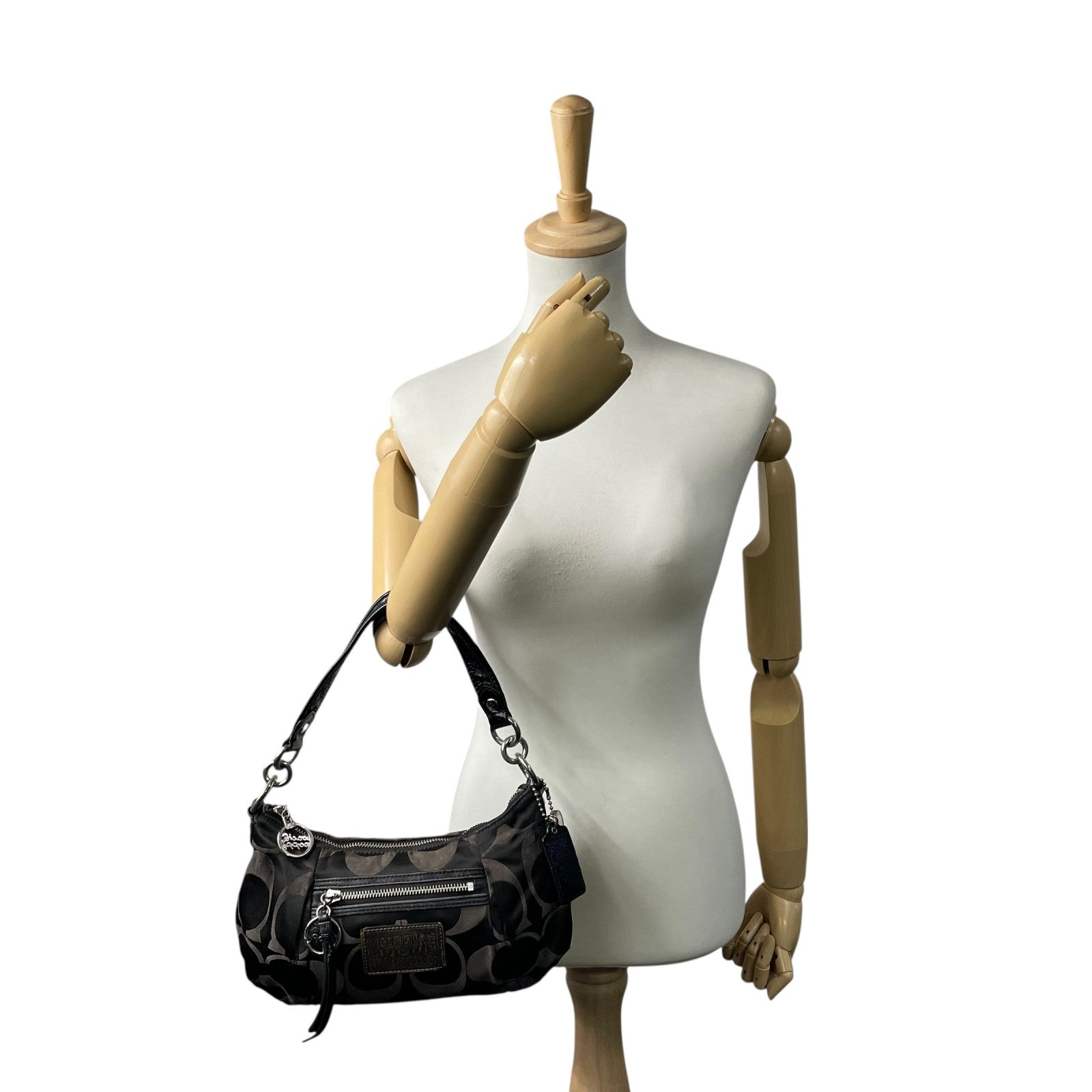 コーチ COACH 2WAY ハンドバッグ ショルダーバッグ ポピー シグネチャー 黒 ブラック キャンバス シルバー金具 手提げ 肩掛け可 斜め掛け可 ロゴ レディース U5