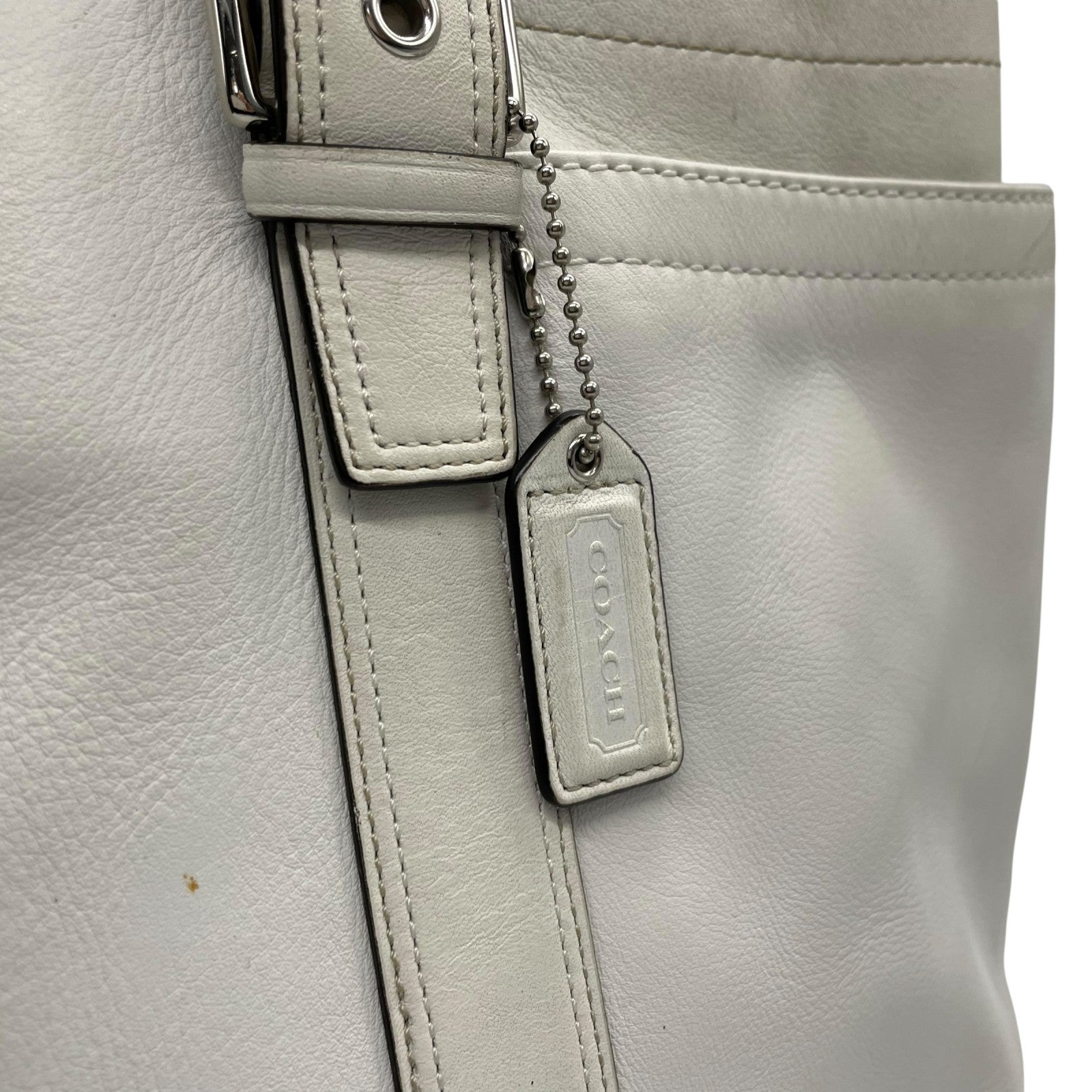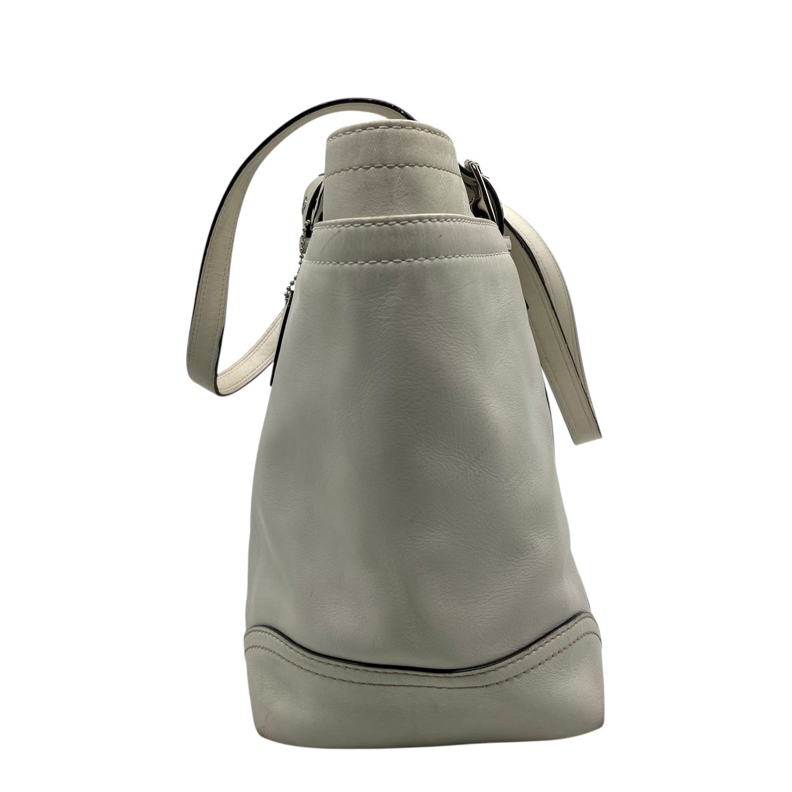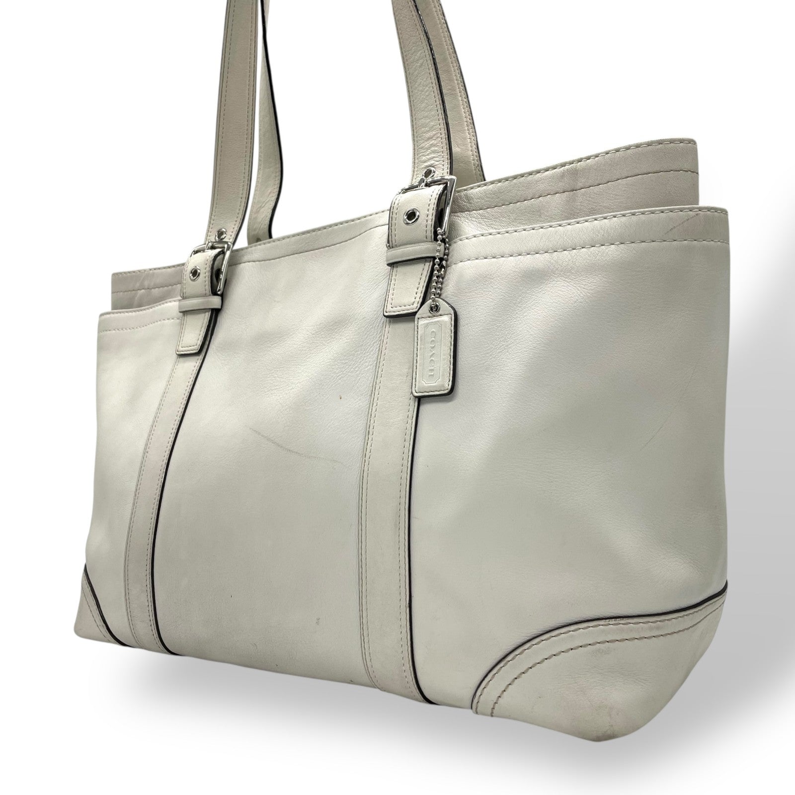 コーチ COACH トートバッグ ホワイト 白 レザー A4収納可 肩掛け可 ロゴチャーム シルバー金具 レディース T1