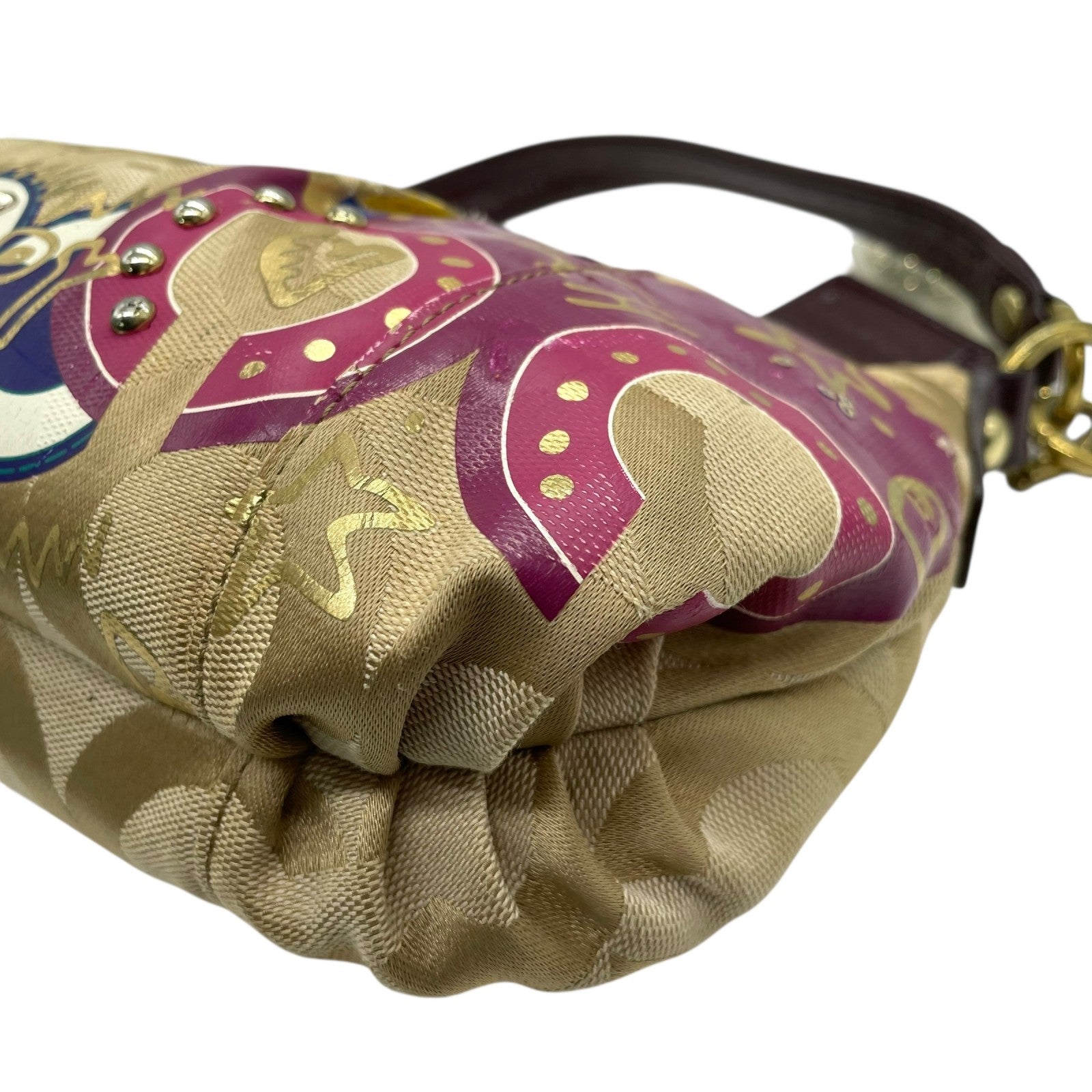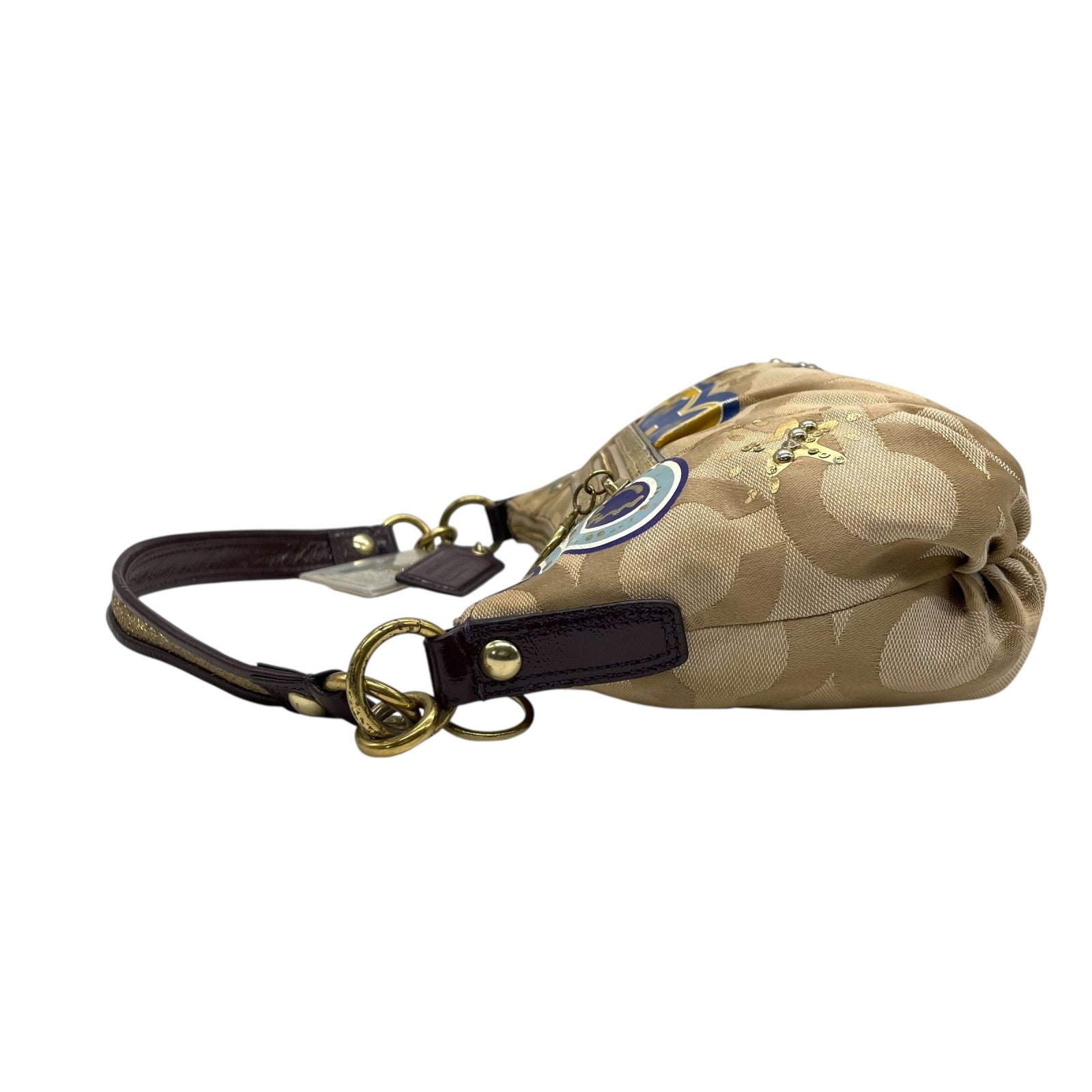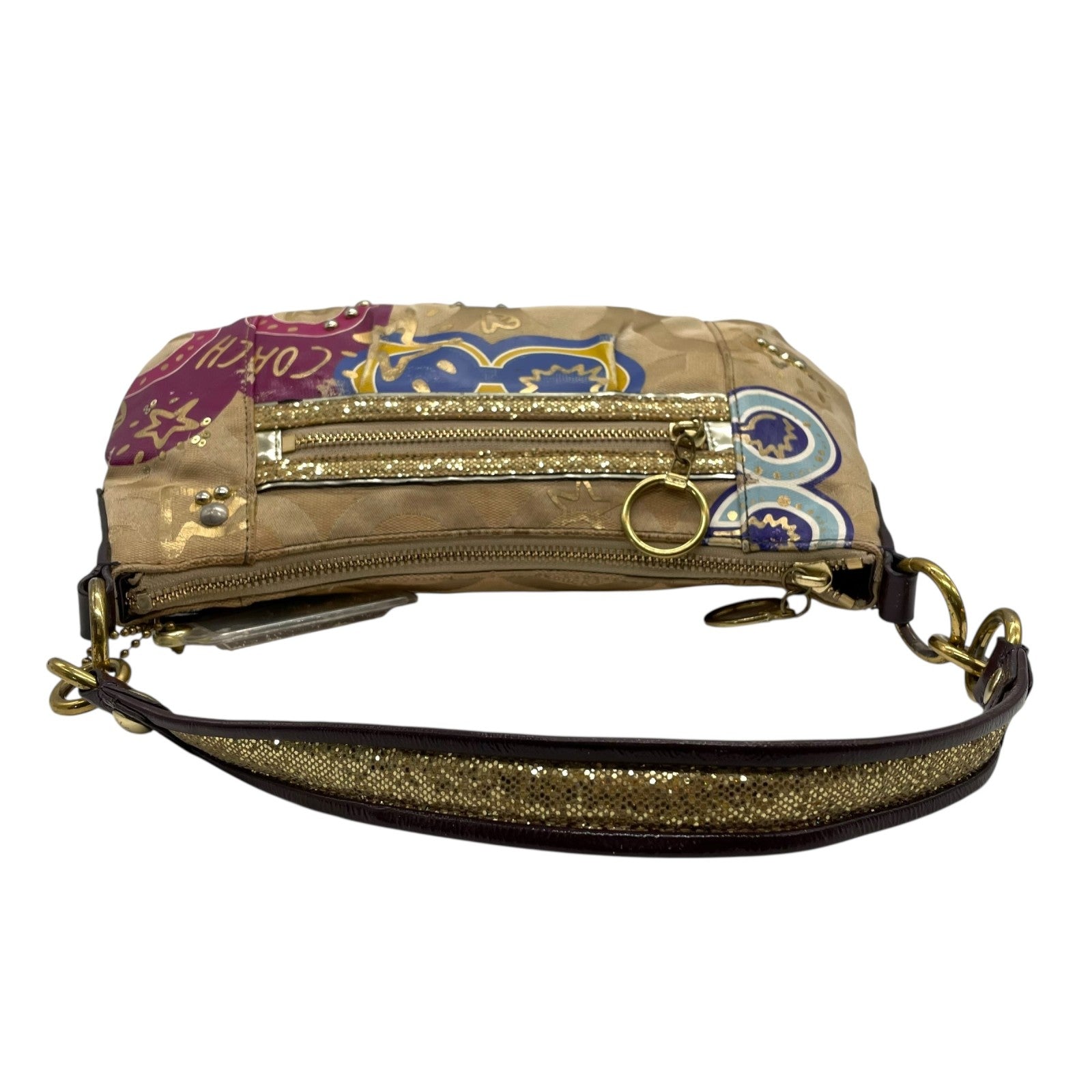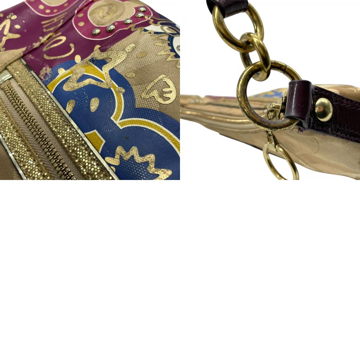 コーチ COACH 2WAY ハンドバッグ ショルダーバッグ ポピー オプアート シグネチャー ベージュ マルチカラー キャンバス ゴールド金具 ロゴチャーム付き 手提げ 斜め掛け可 レディース T1