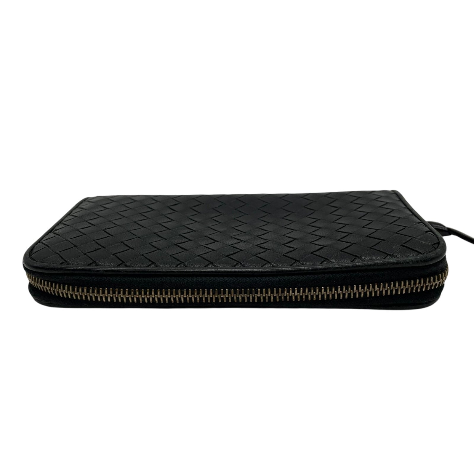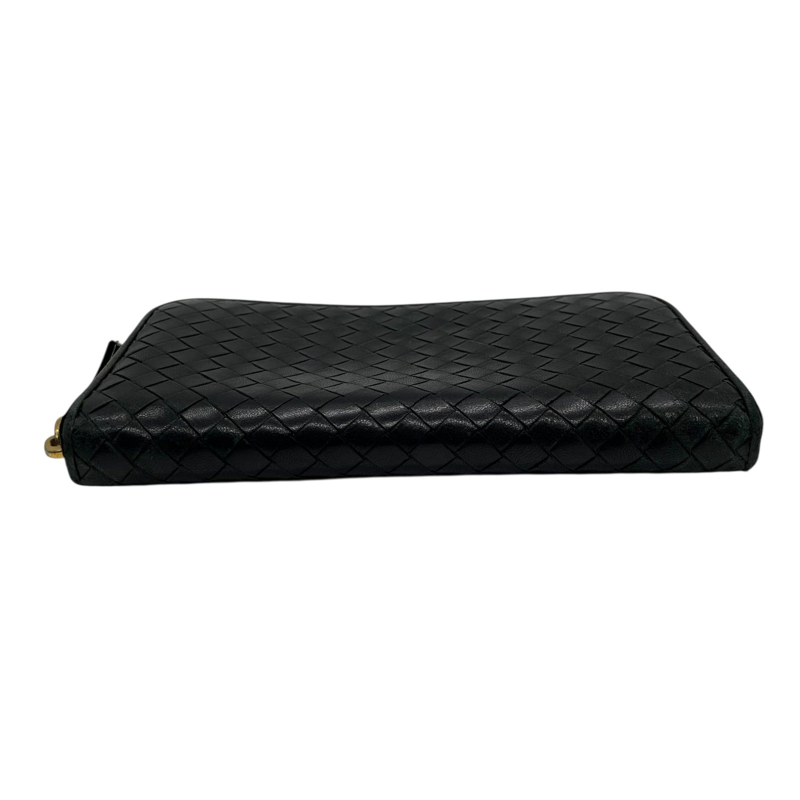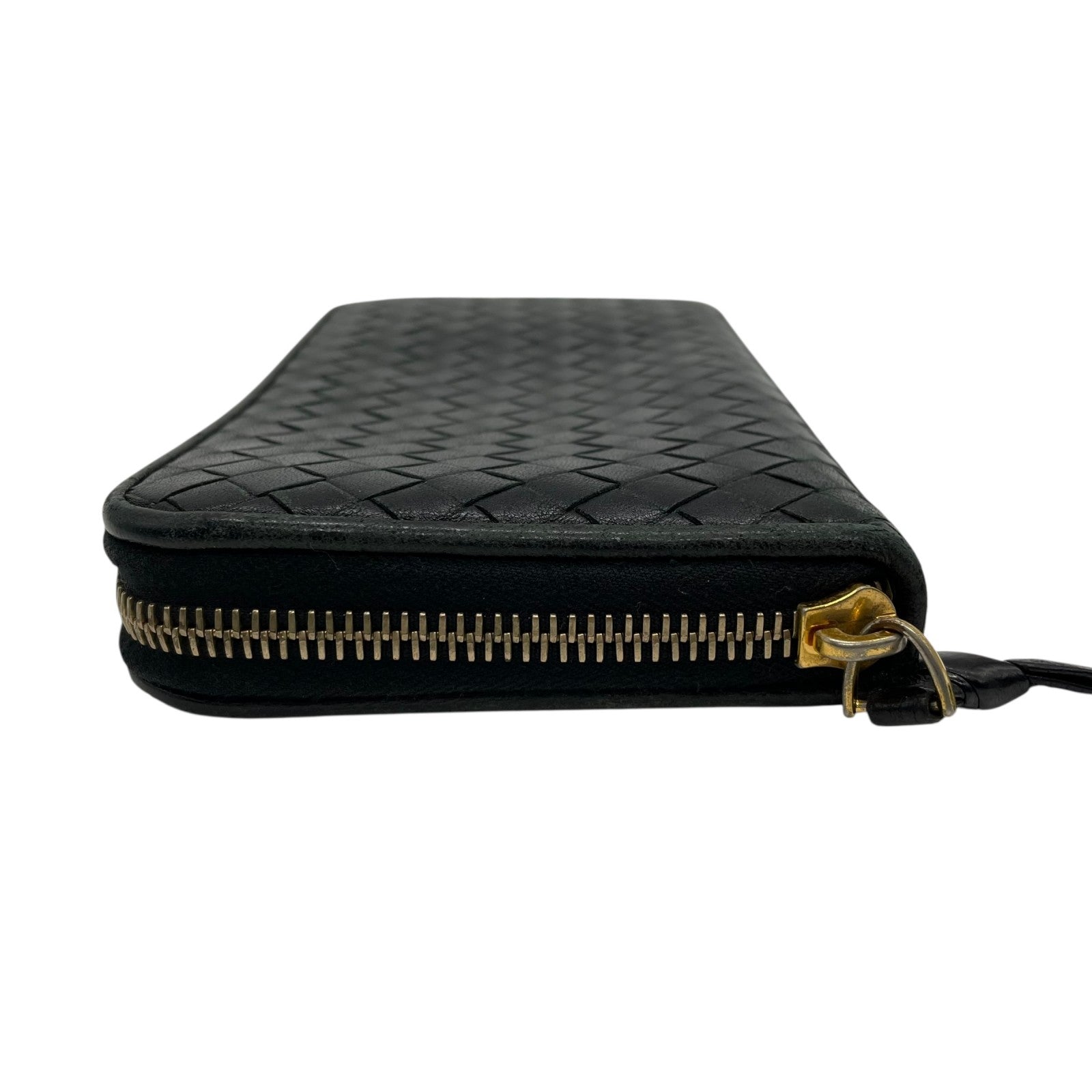 ボッテガヴェネタ BOTTEGA VENETA 長財布 イントレチャート ラウンドファスナー 黒 ブラック レザー ゴールド金具 メンズ レディース M5