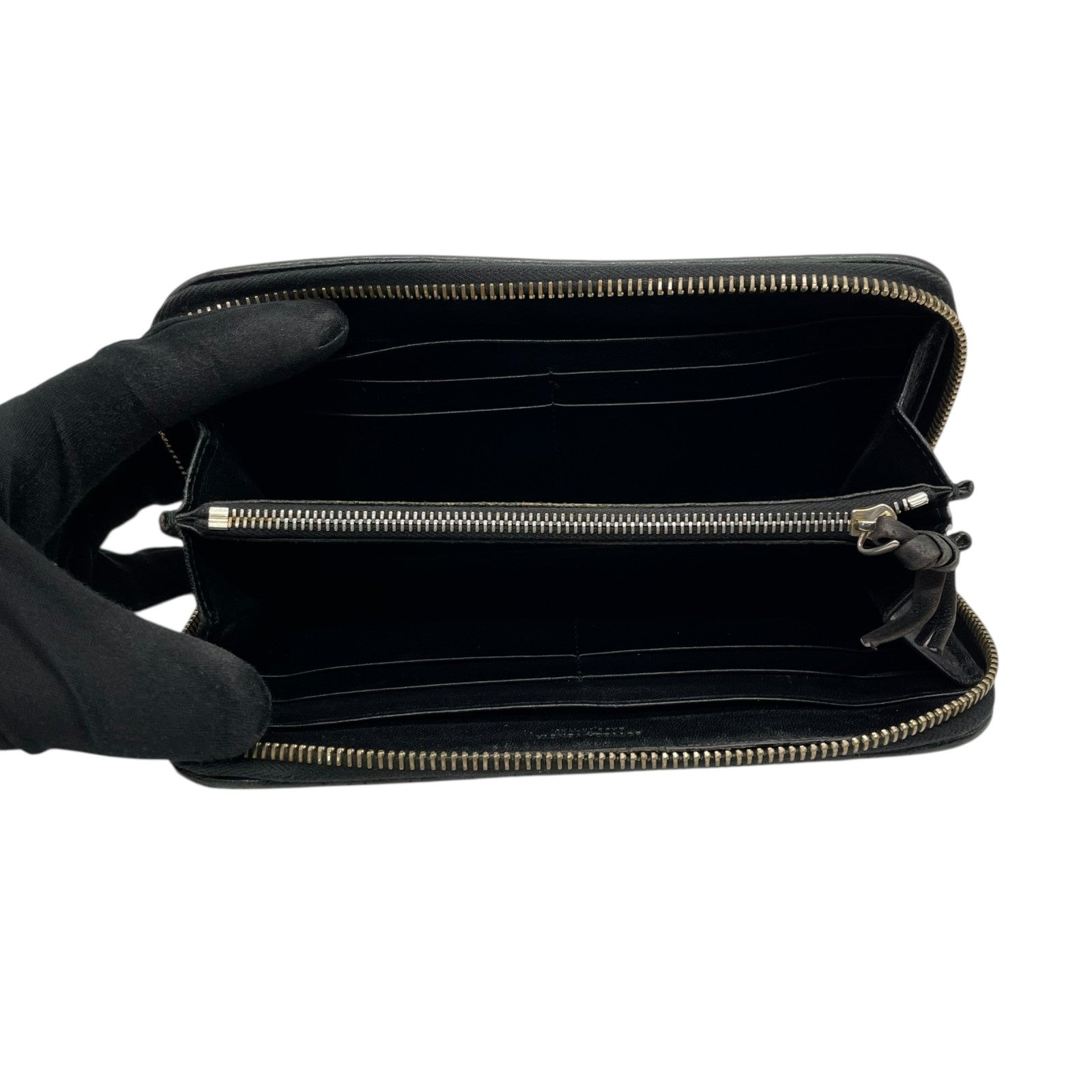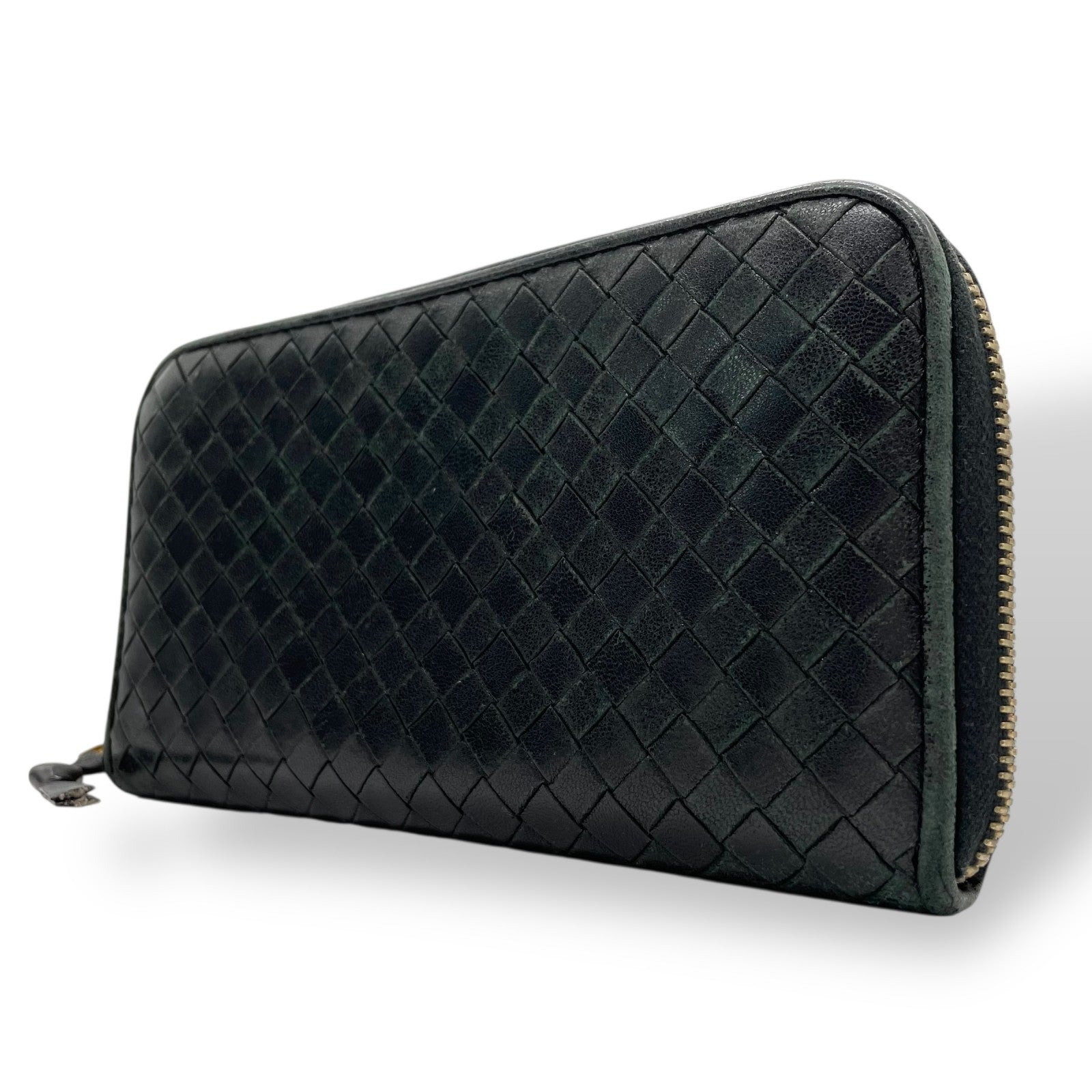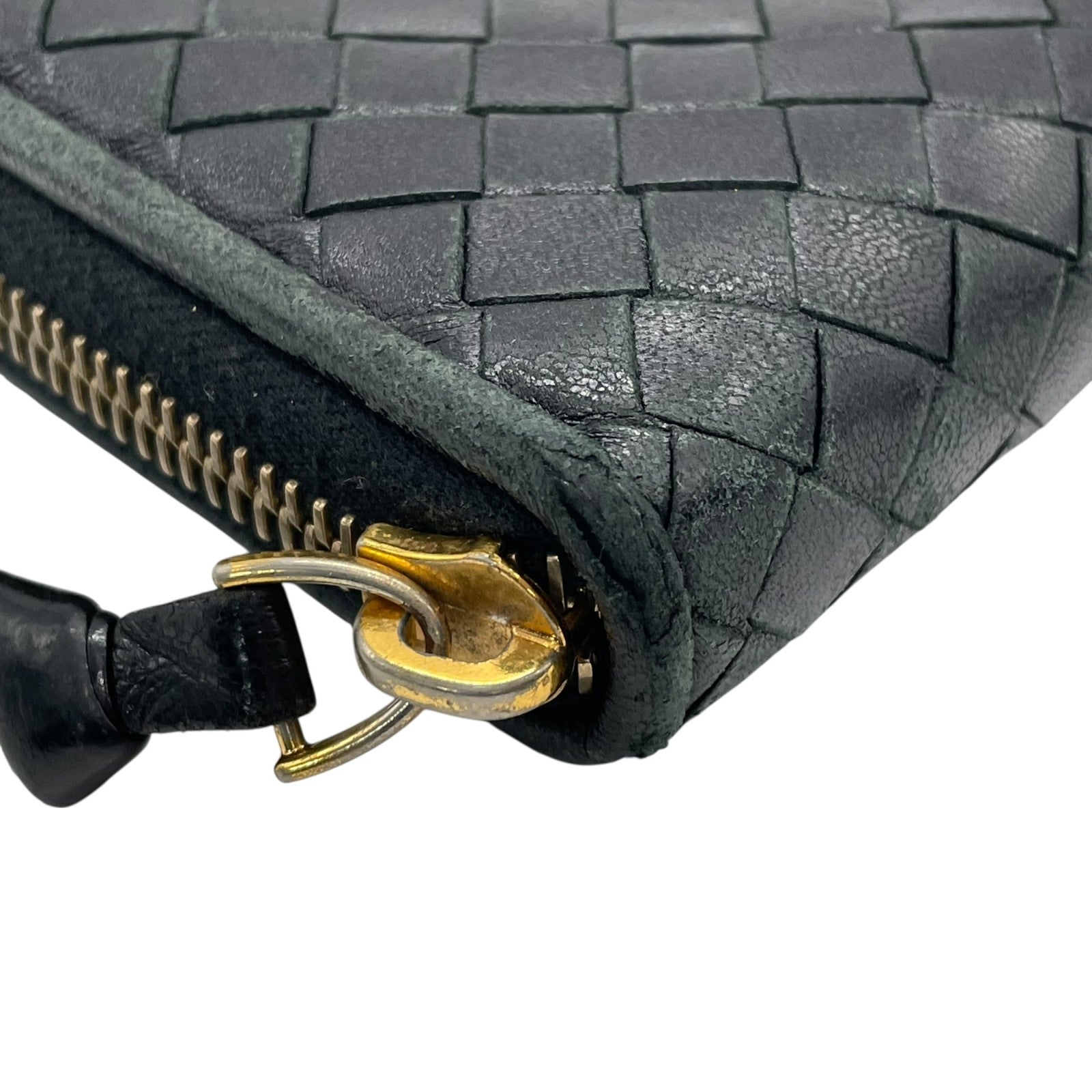 ボッテガヴェネタ BOTTEGA VENETA 長財布 イントレチャート ラウンドファスナー 黒 ブラック レザー ゴールド金具 メンズ レディース M5