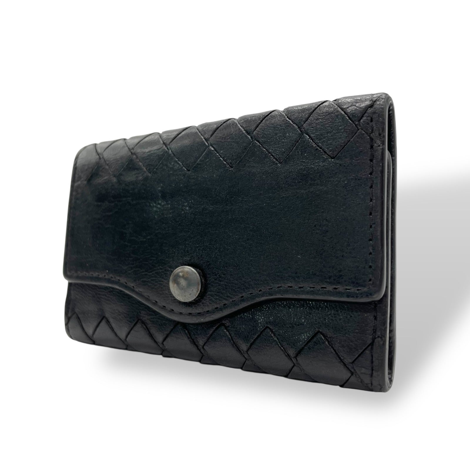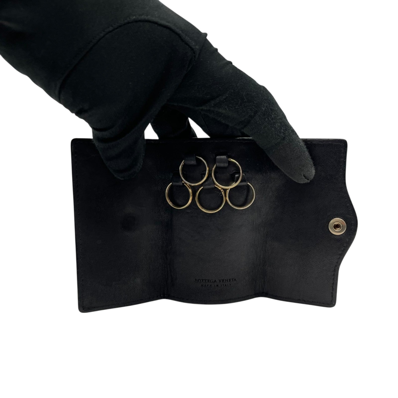 ボッテガヴェネタ BOTTEGA VENETA 三つ折り 5連 キーケース イントレチャート 黒 ブラック レザー ゴールド金具 メンズ レディース M5