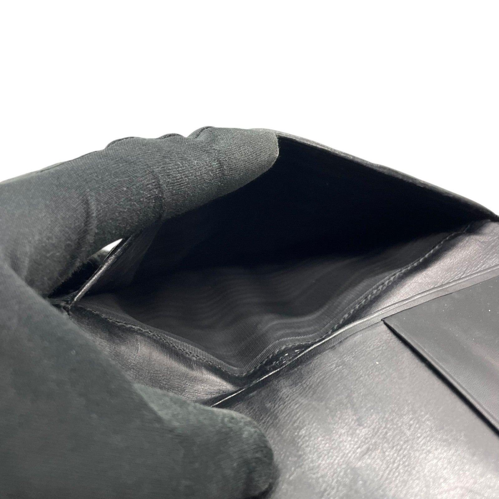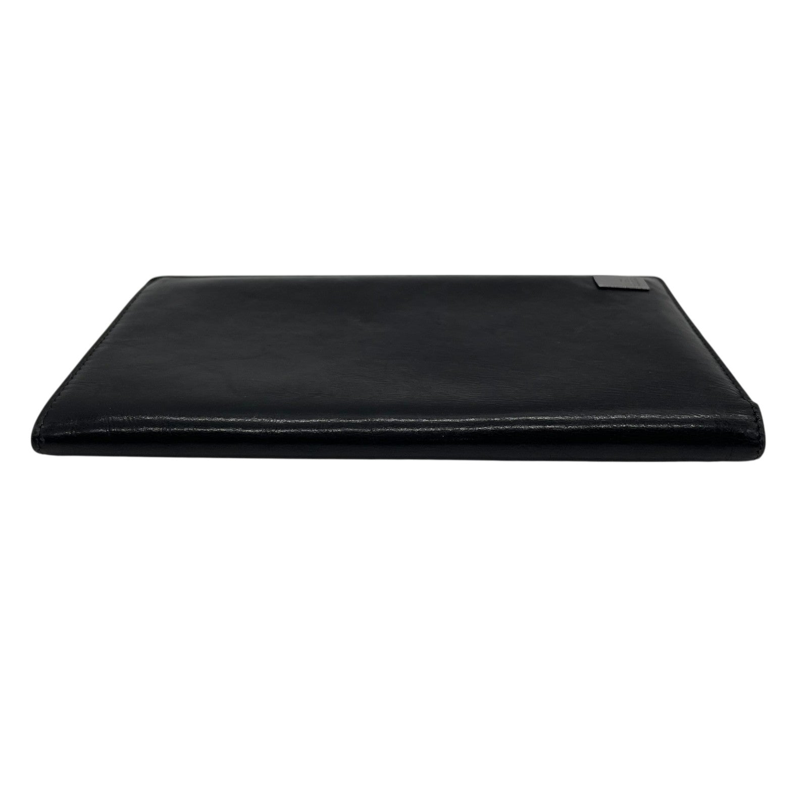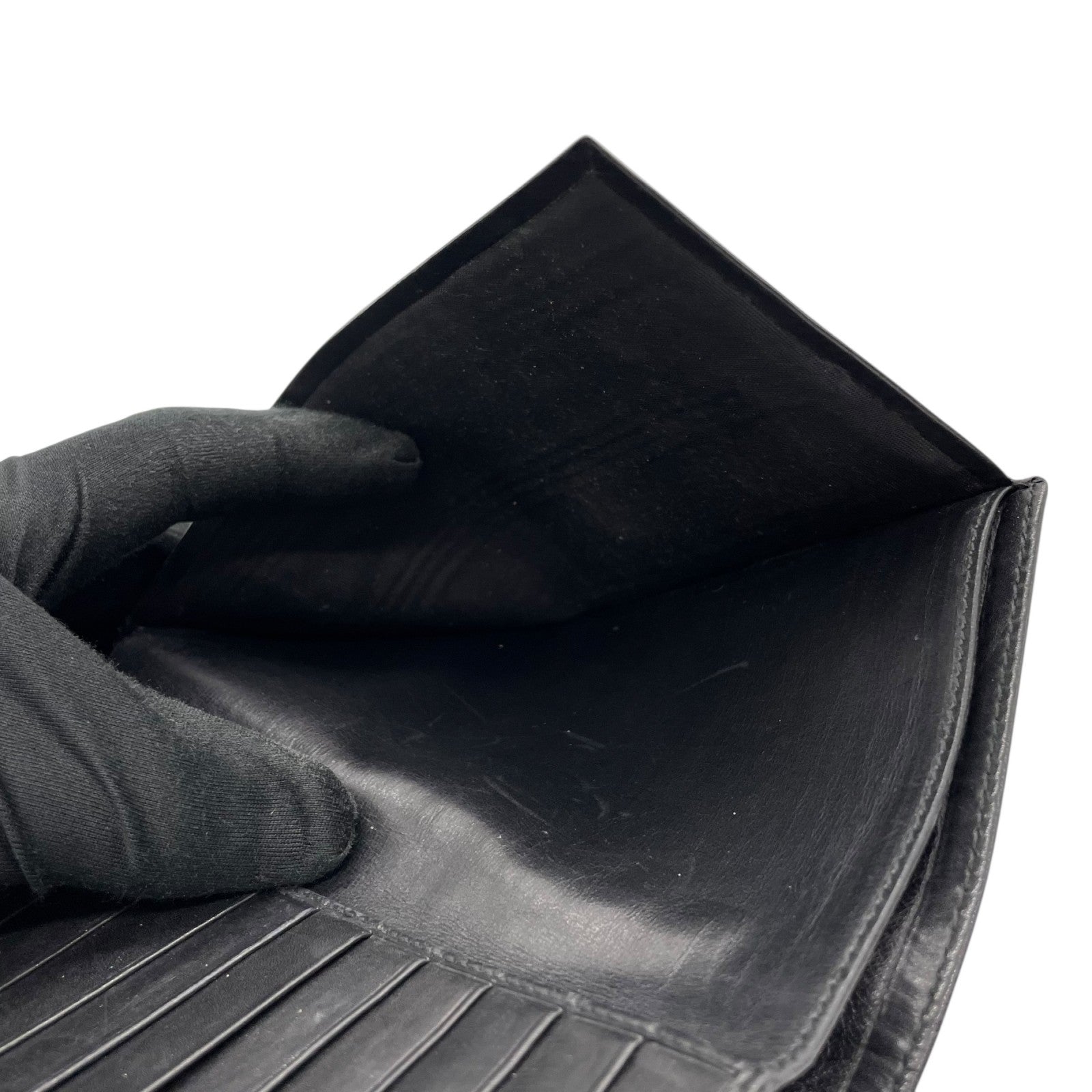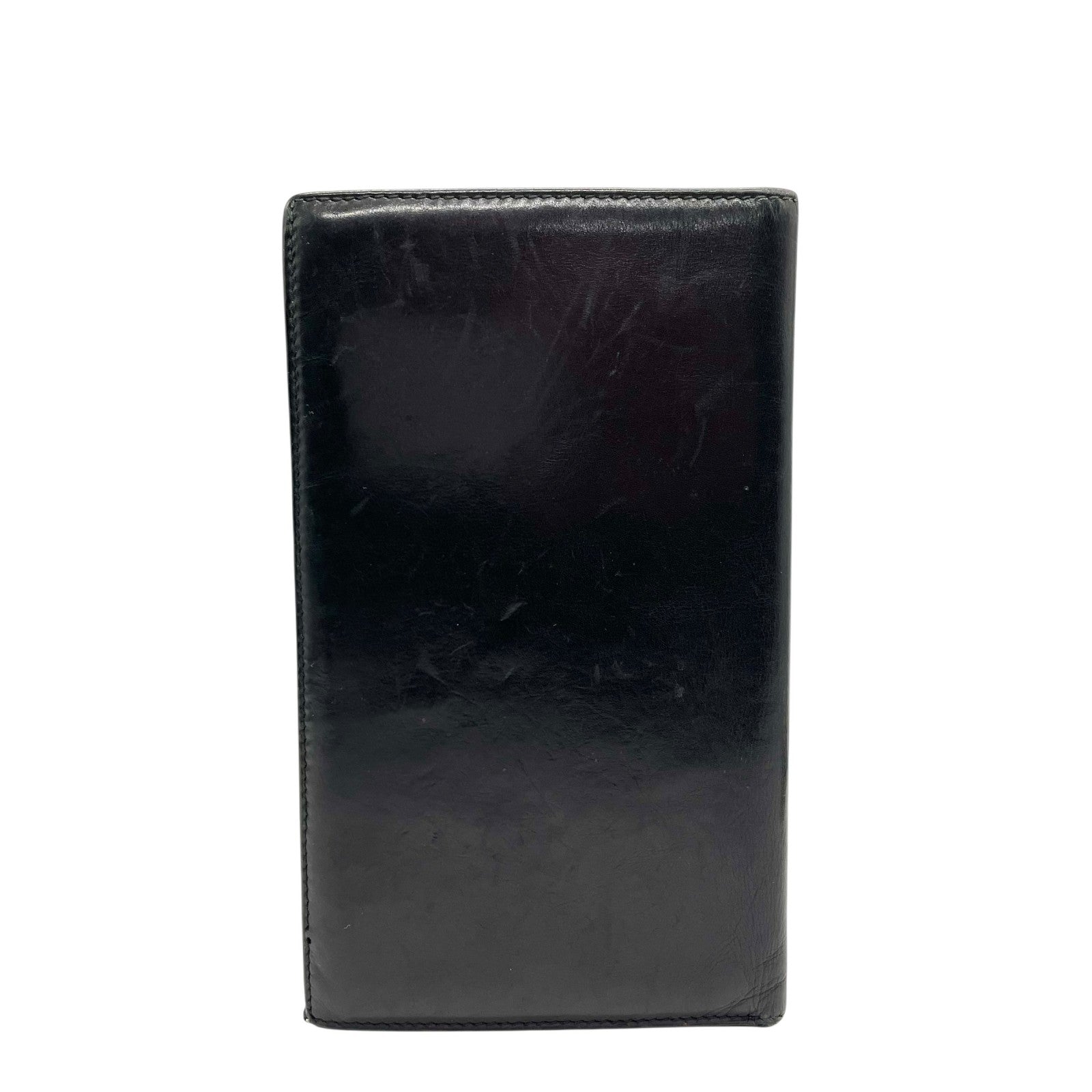 グッチ GUCCI 二つ折り 長財布 札入れ 黒 ブラック レザー シルバー金具 ロゴプレート メンズ 小銭入れなし M5