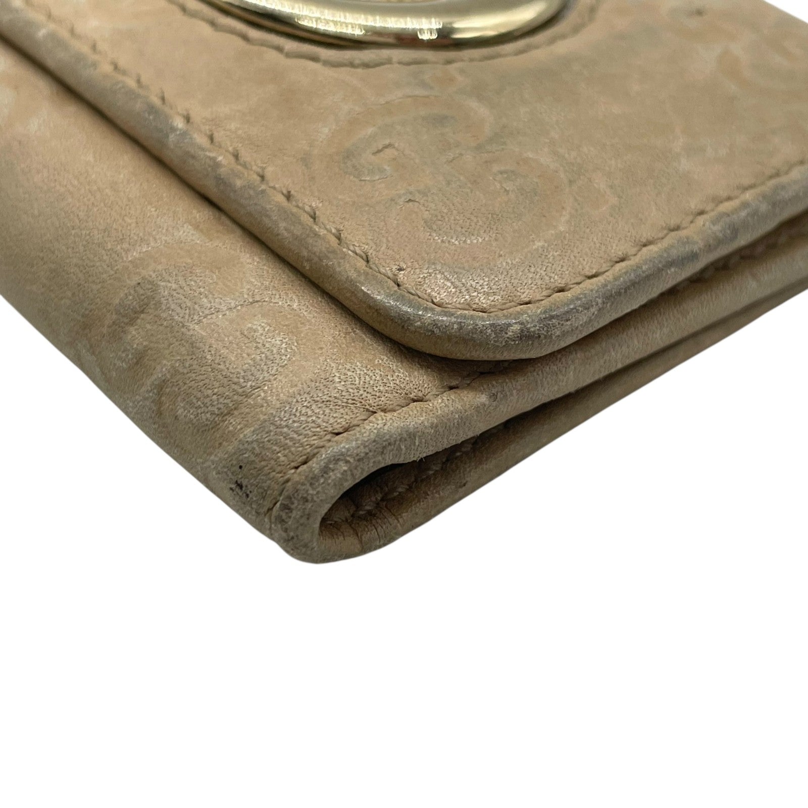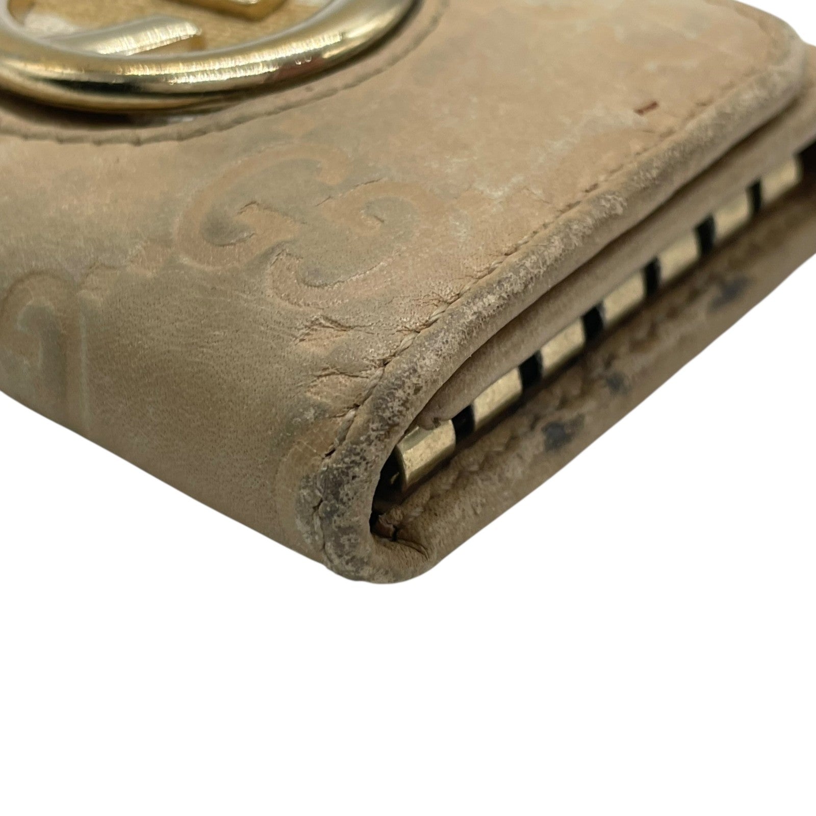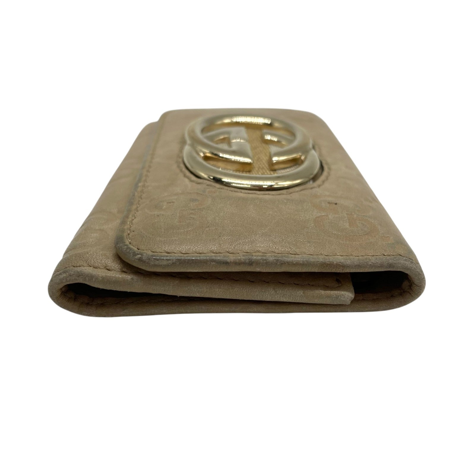 グッチ GUCCI グッチシマ 三つ折り キーケース インターロッキングG ベージュ レザー ゴールド金具 レディース M5
