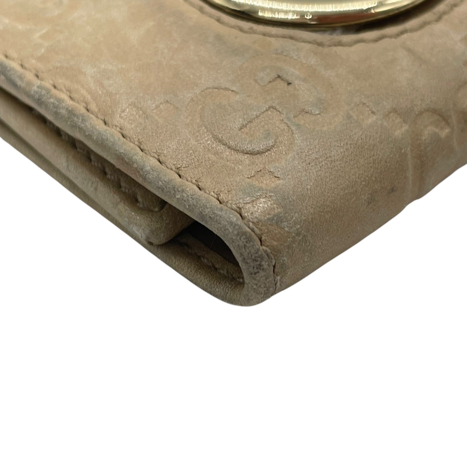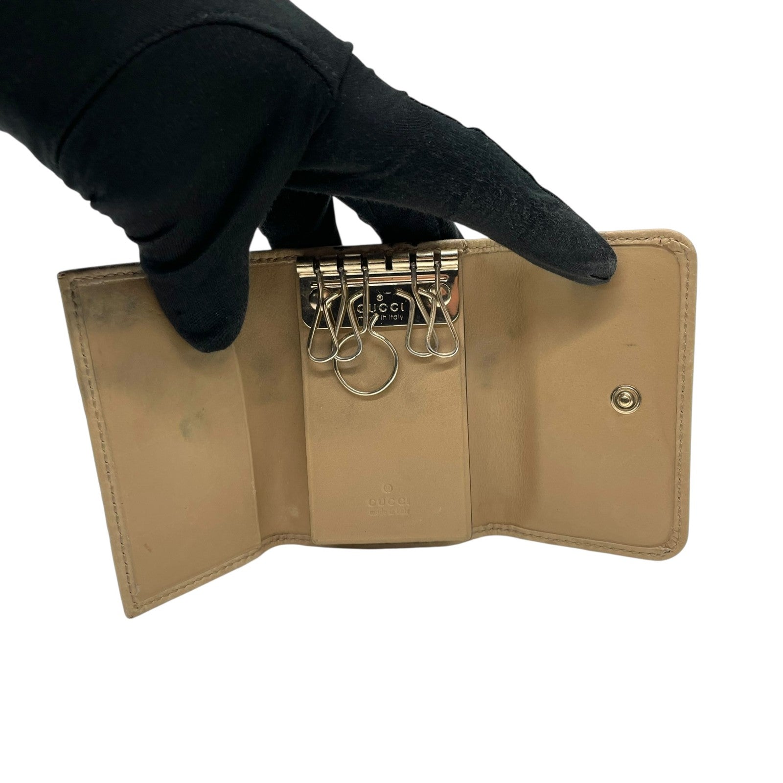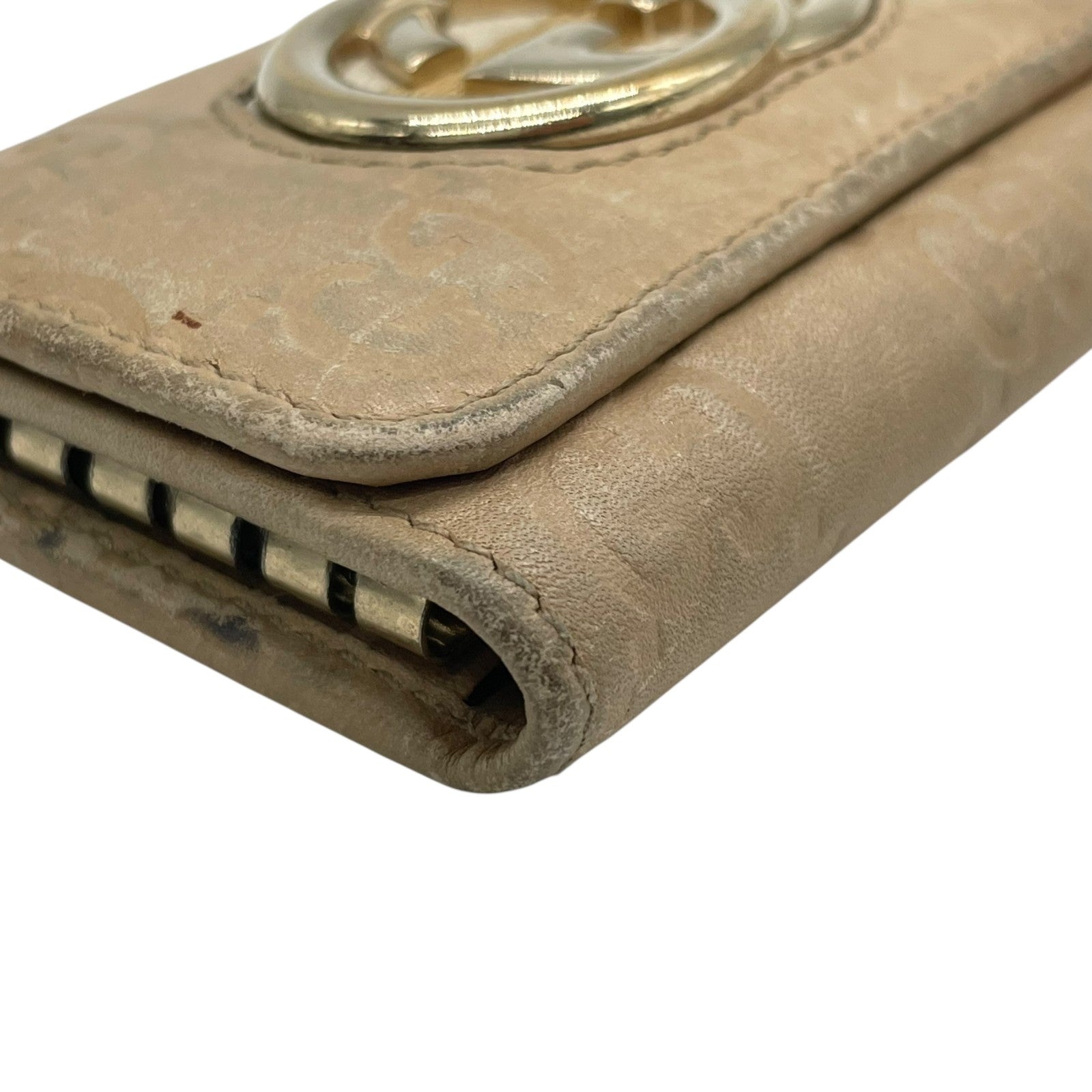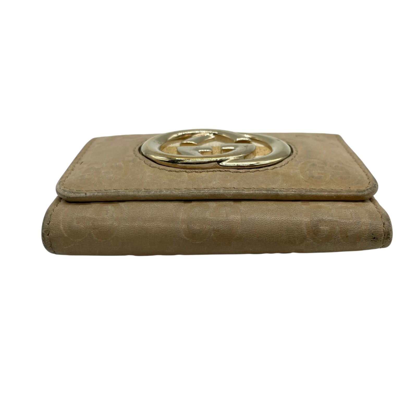 グッチ GUCCI グッチシマ 三つ折り キーケース インターロッキングG ベージュ レザー ゴールド金具 レディース M5