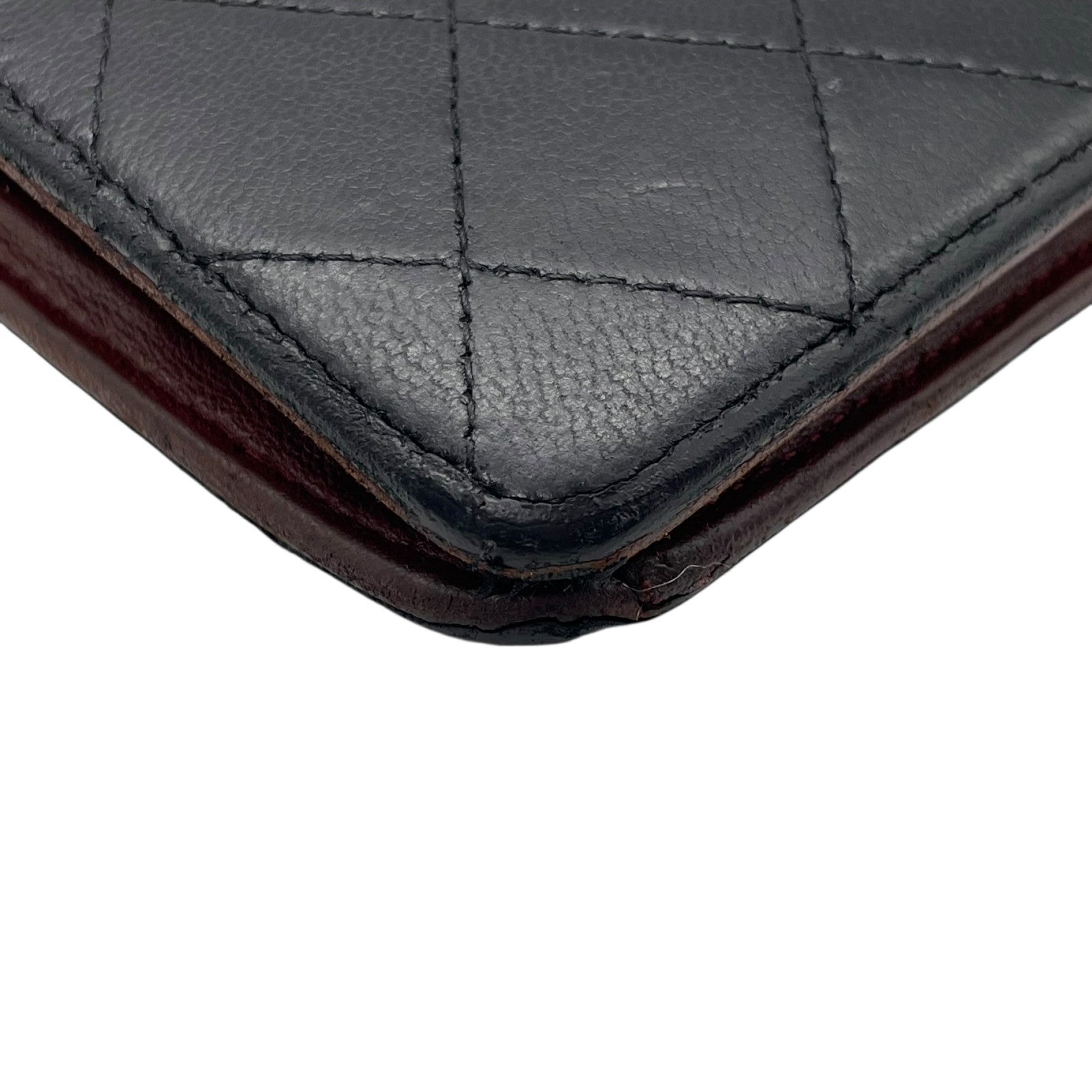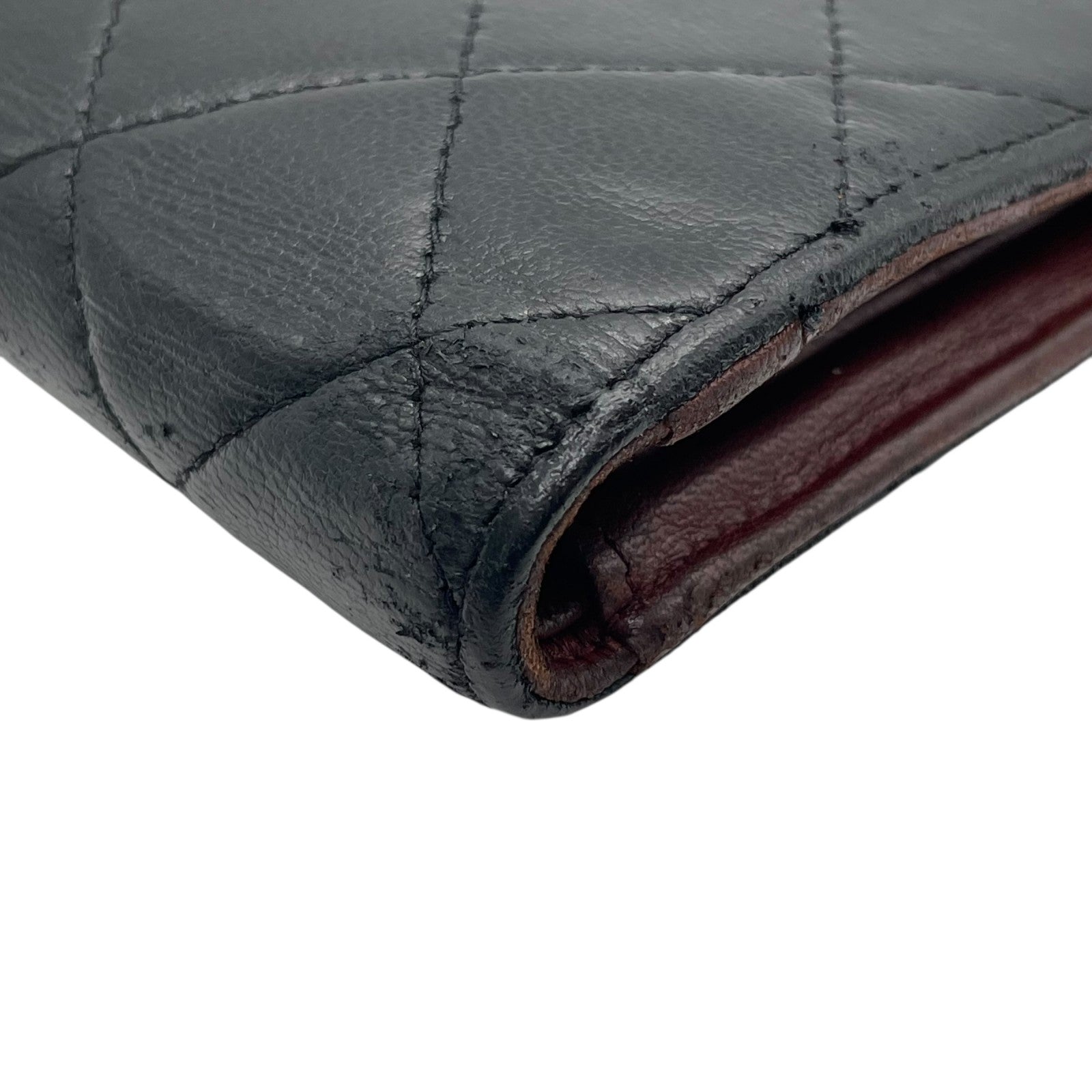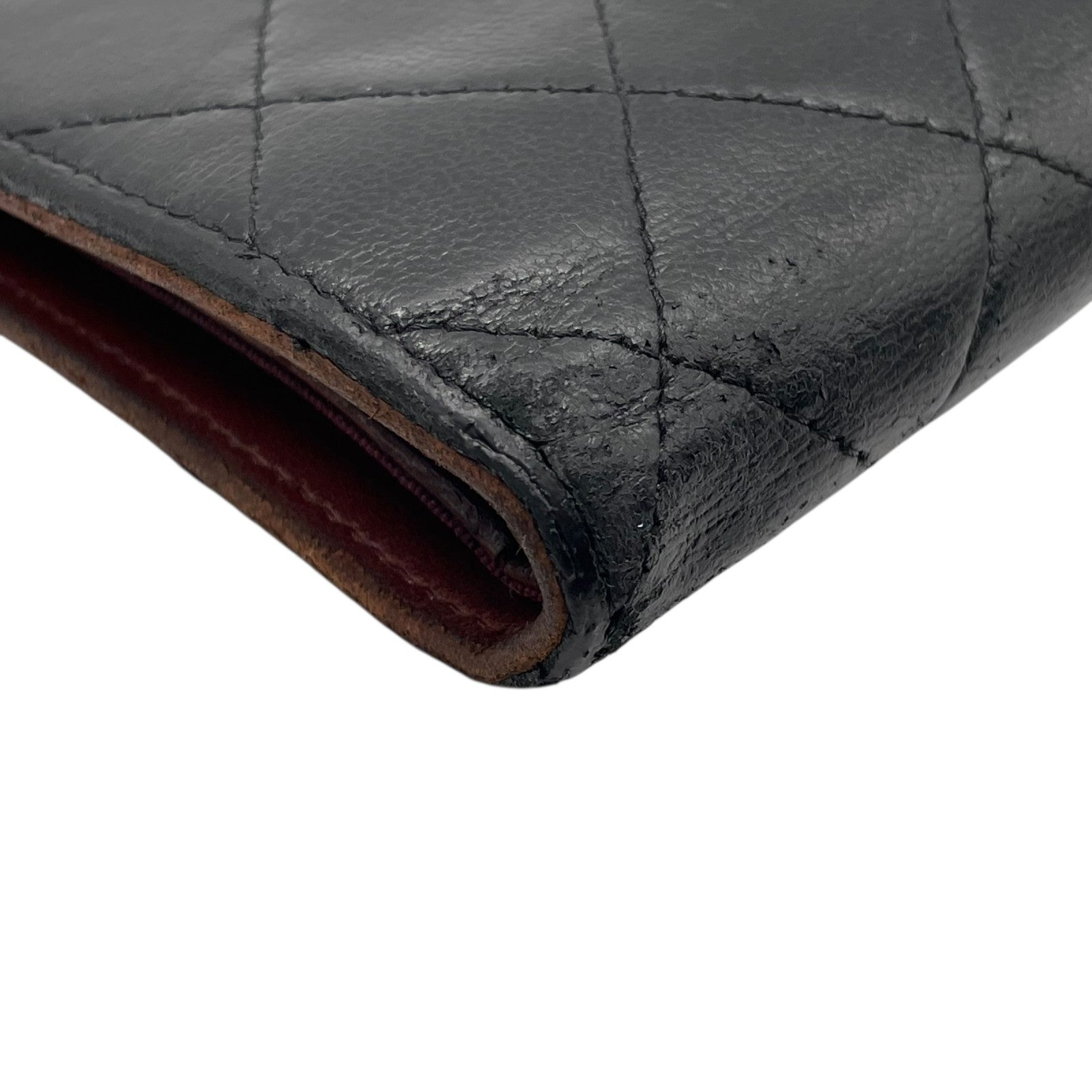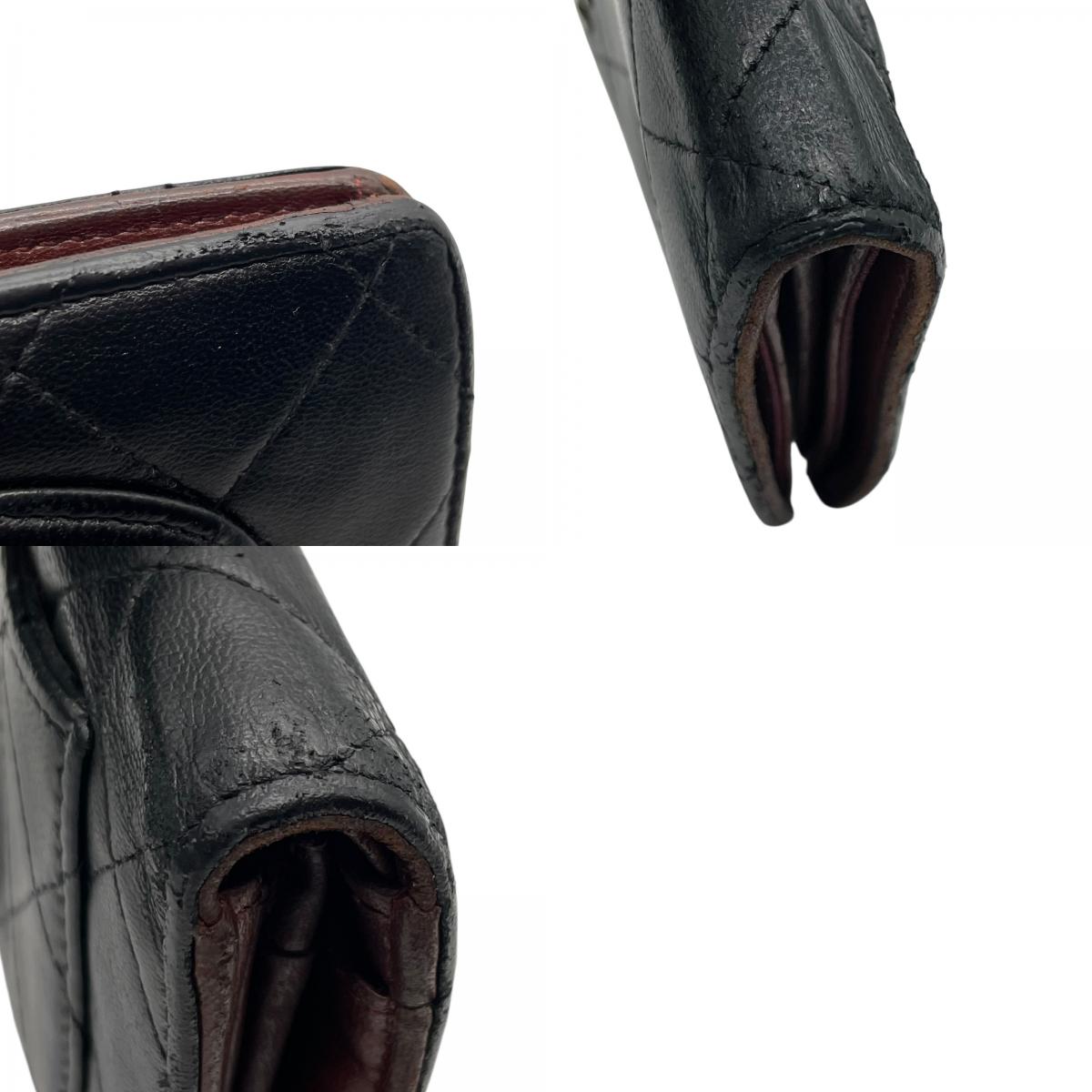 CHANEL シャネル 二つ折り 長財布 マトラッセ 黒 ブラック 茶 ブラウン レザー キャビアスキン ココマーク シルバー金具 レディース W4