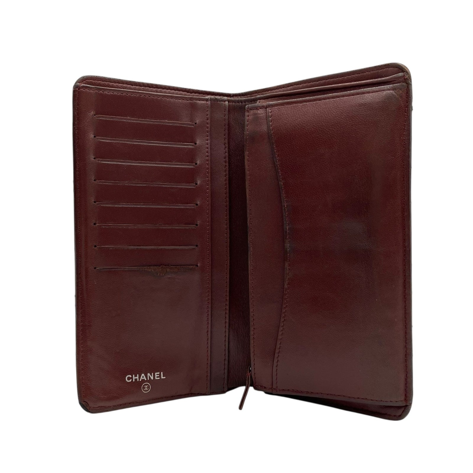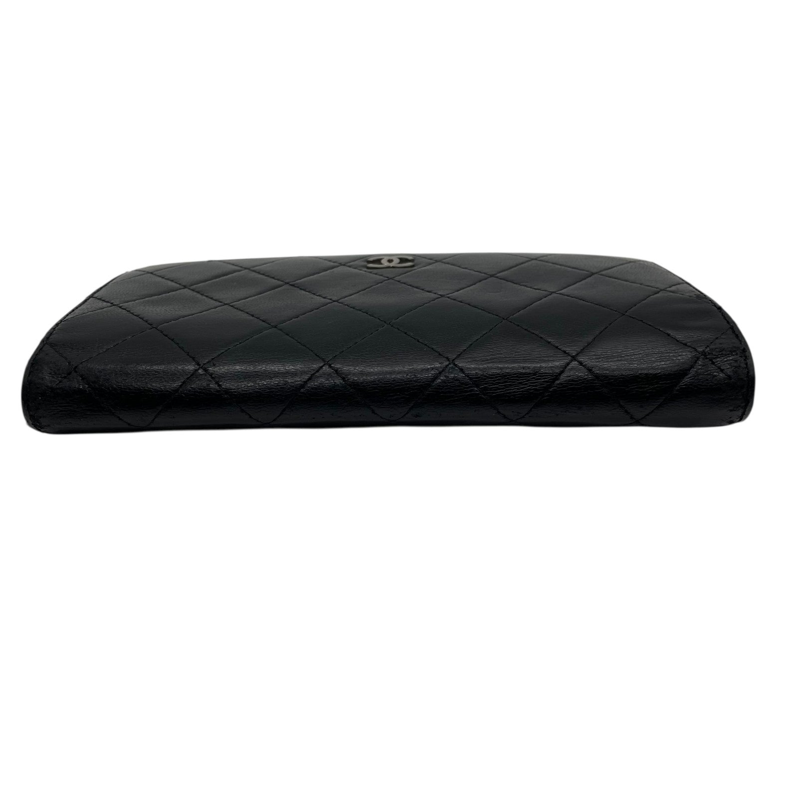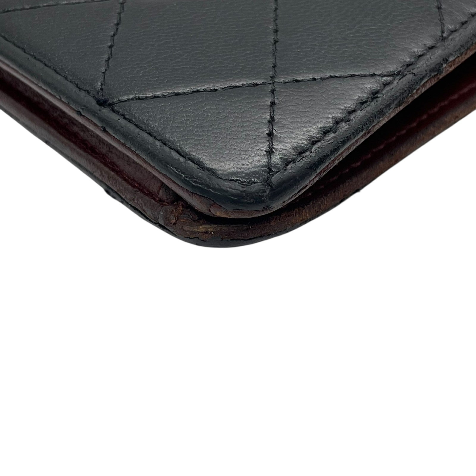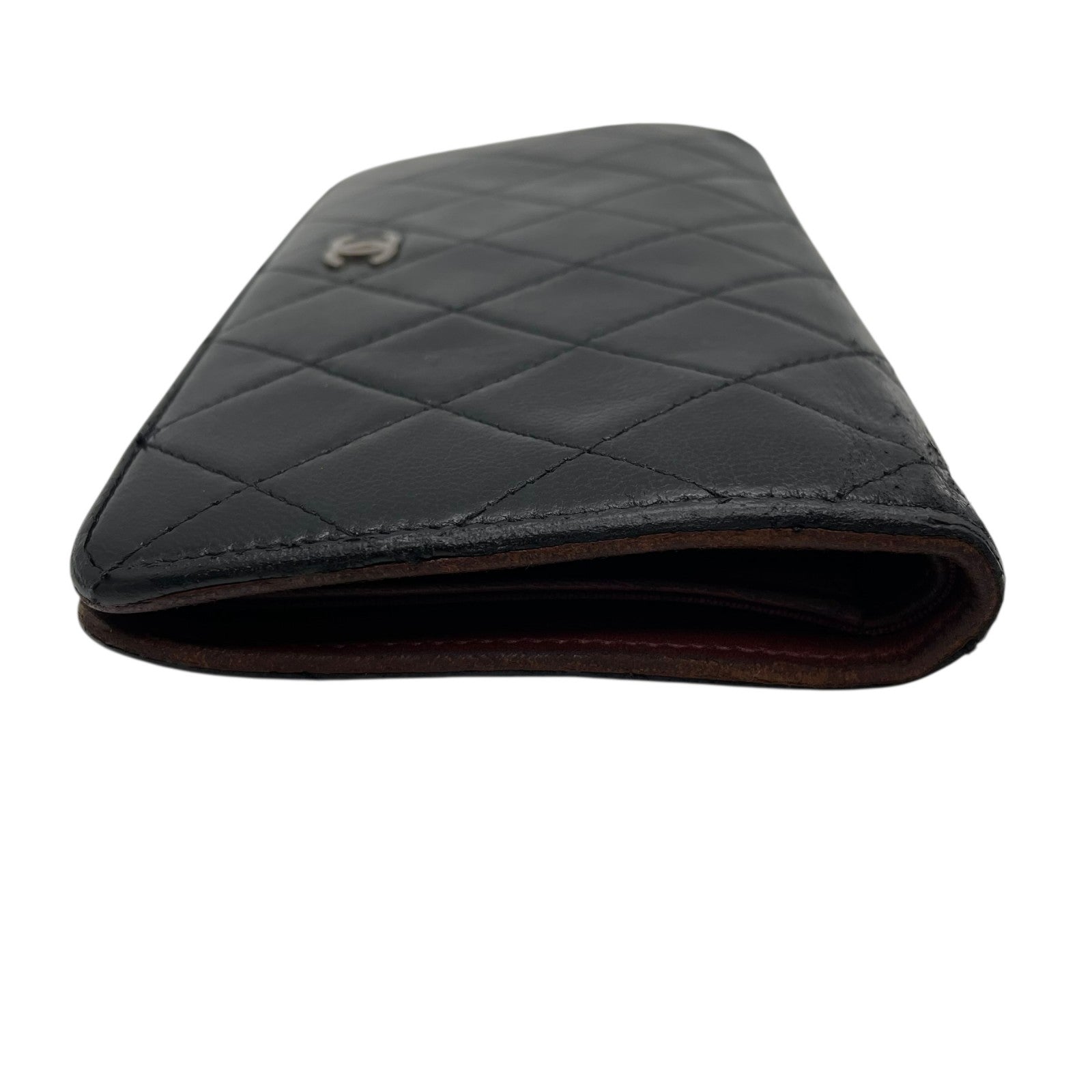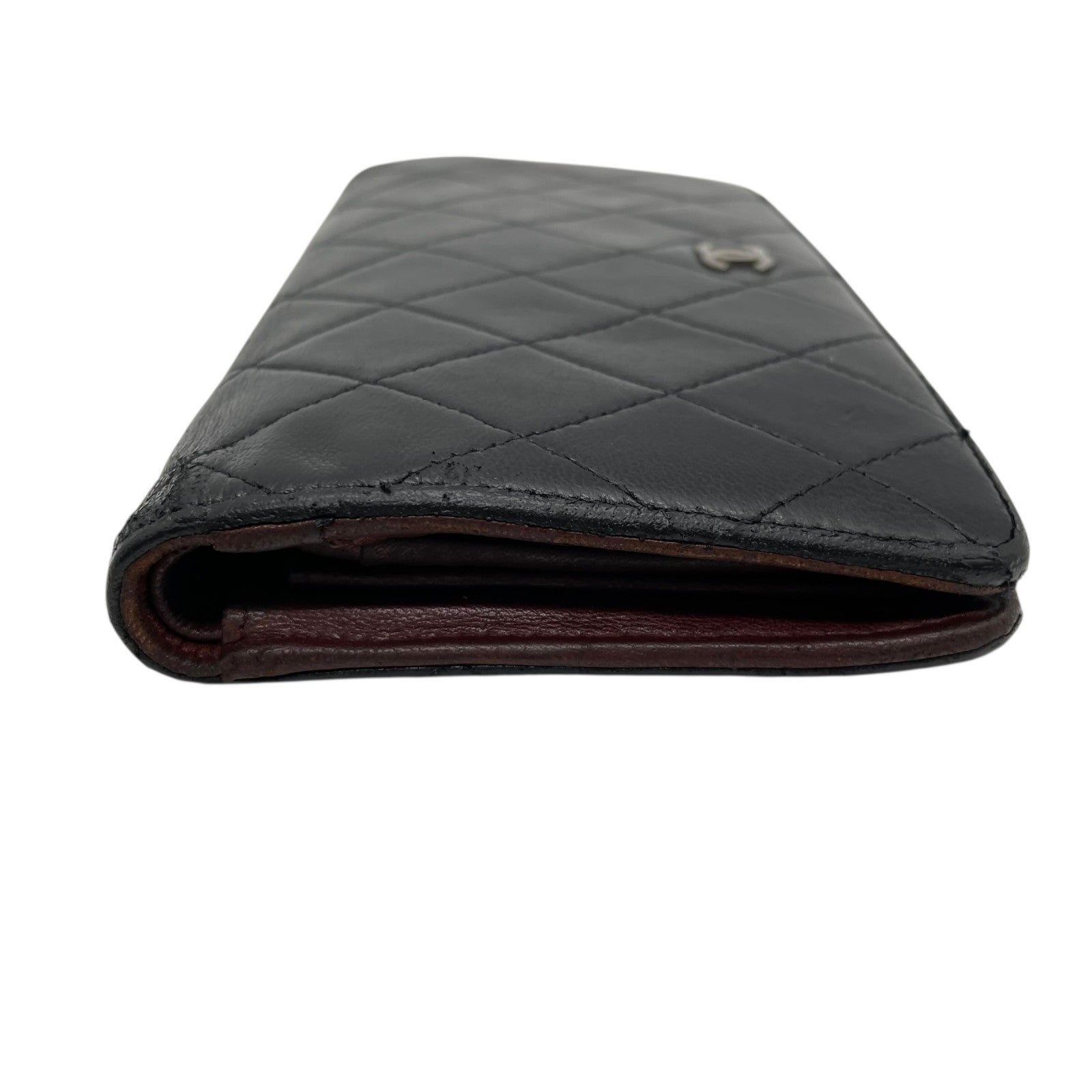 CHANEL シャネル 二つ折り 長財布 マトラッセ 黒 ブラック 茶 ブラウン レザー キャビアスキン ココマーク シルバー金具 レディース W4