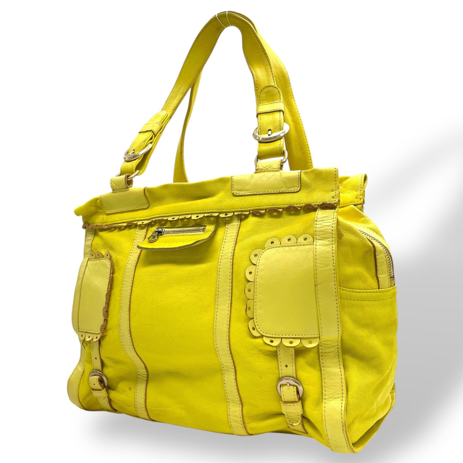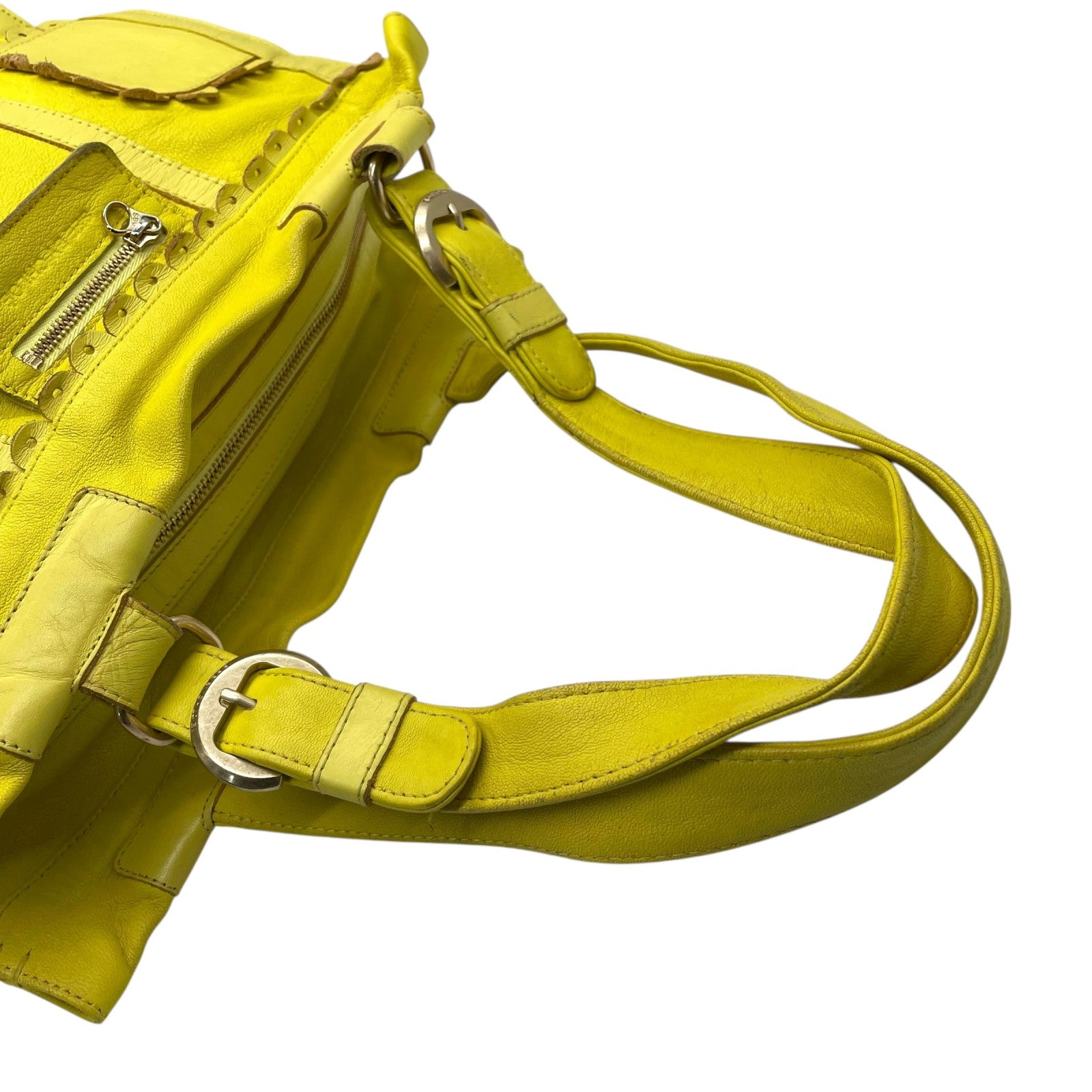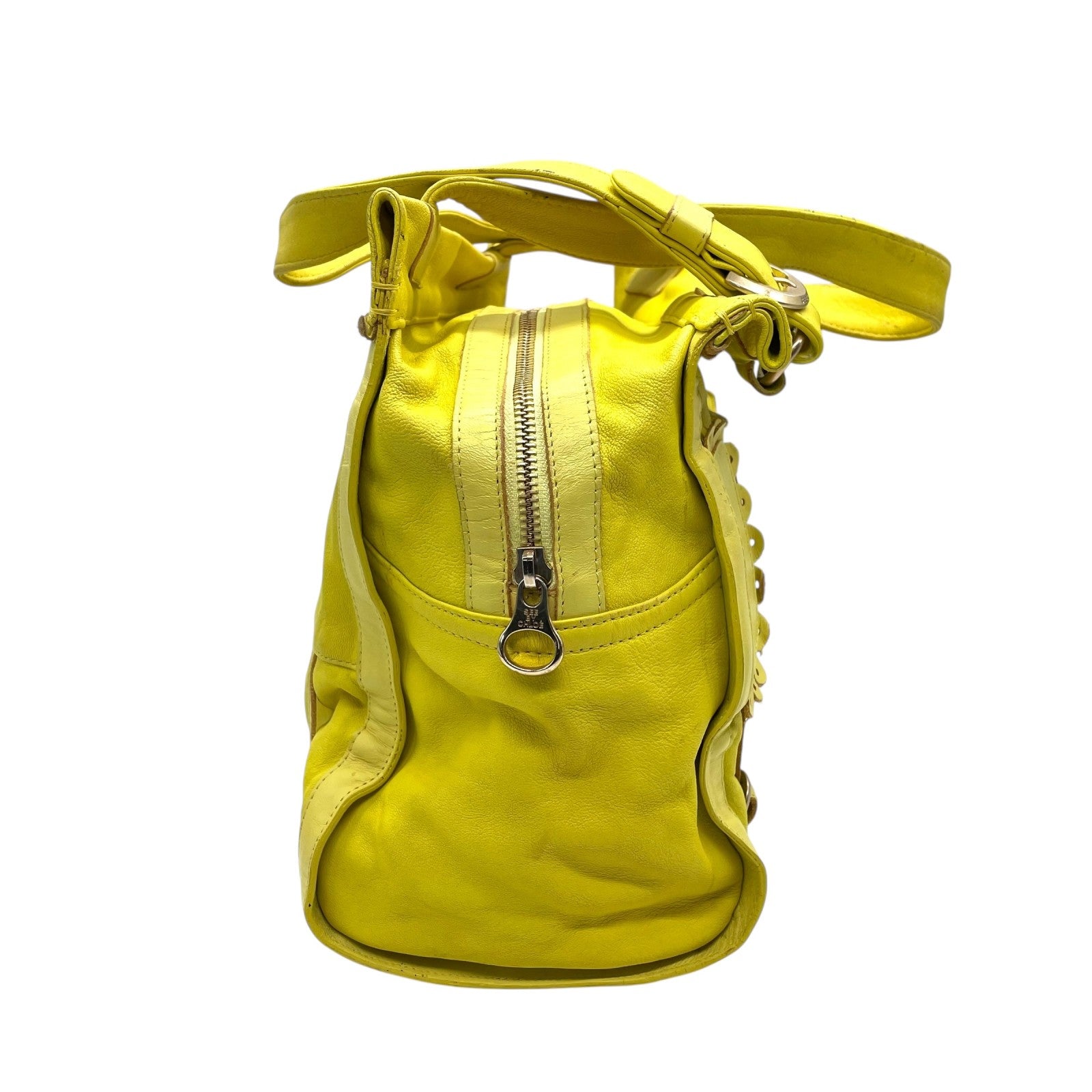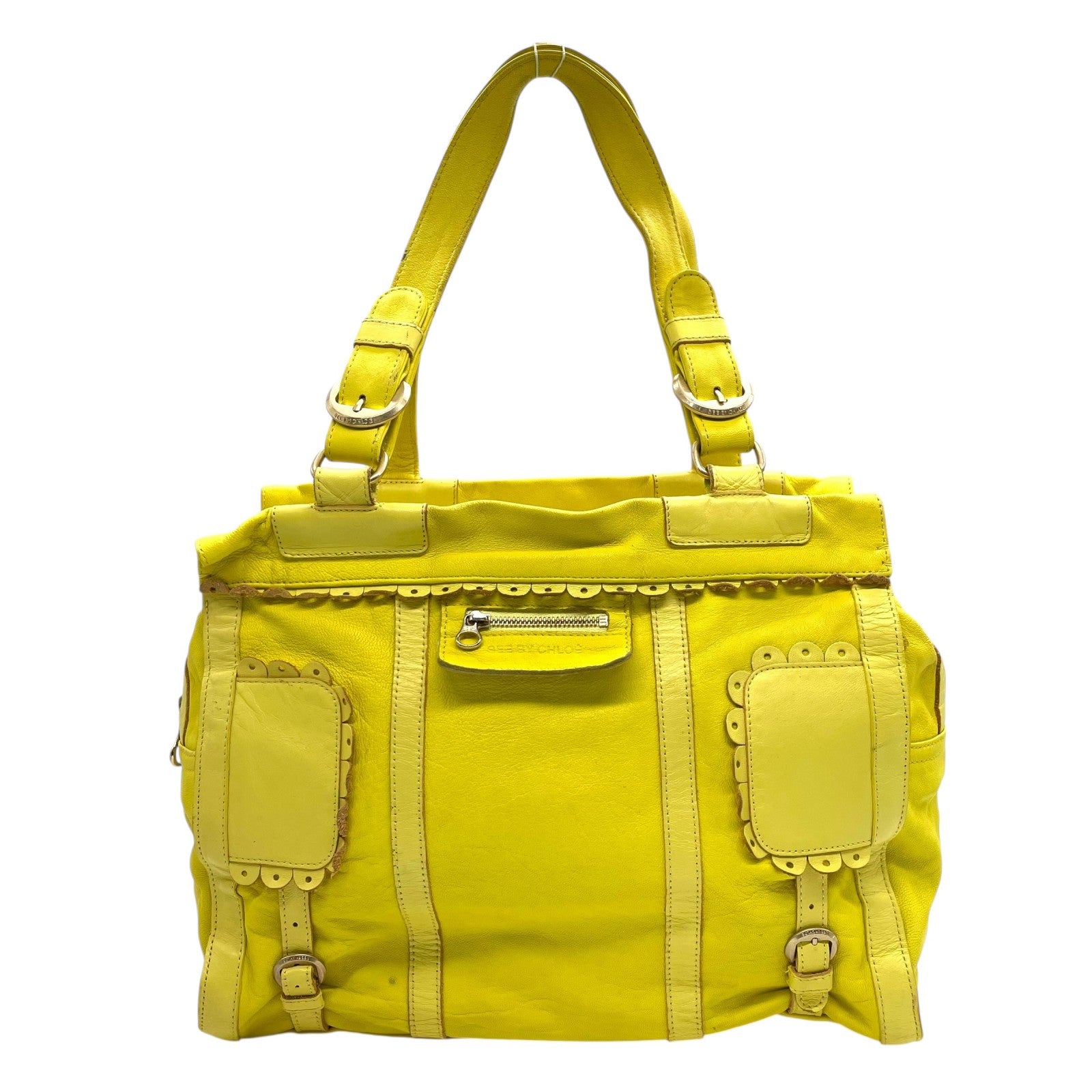 シーバイクロエ SEE BY CHLOE ハンドバッグ トートバッグ 黄色 レモンイエロー レザー ゴールド金具 ロゴ ベルト フリル ファスナー開閉 肩掛け可 レディース U12
