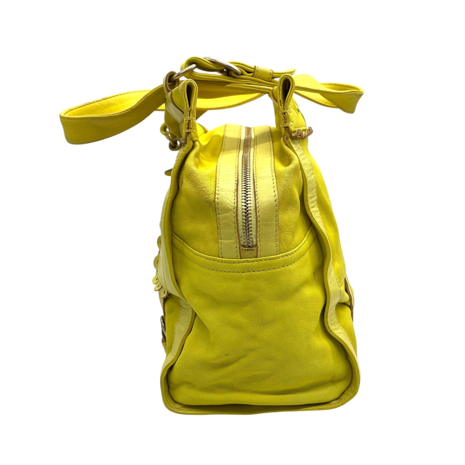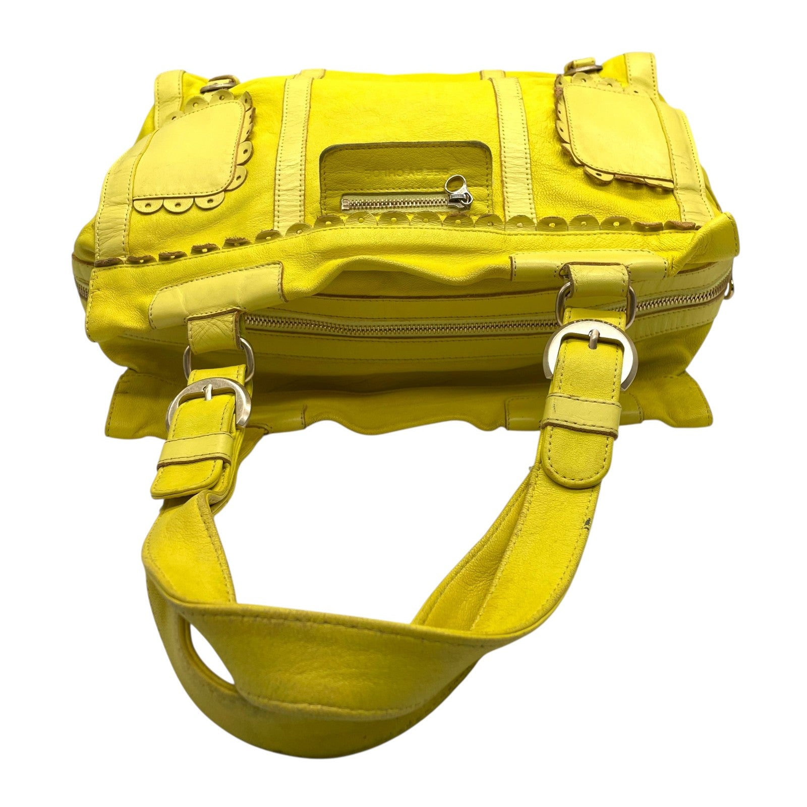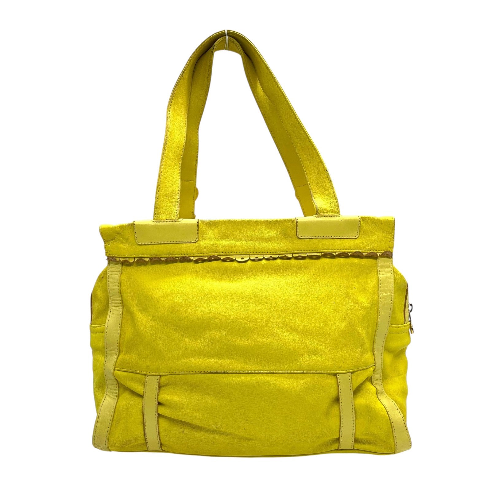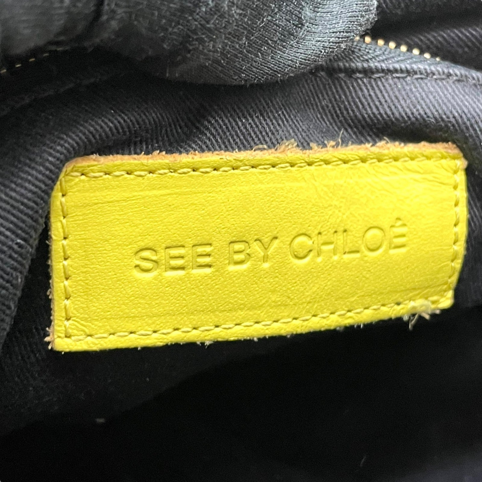 シーバイクロエ SEE BY CHLOE ハンドバッグ トートバッグ 黄色 レモンイエロー レザー ゴールド金具 ロゴ ベルト フリル ファスナー開閉 肩掛け可 レディース U12