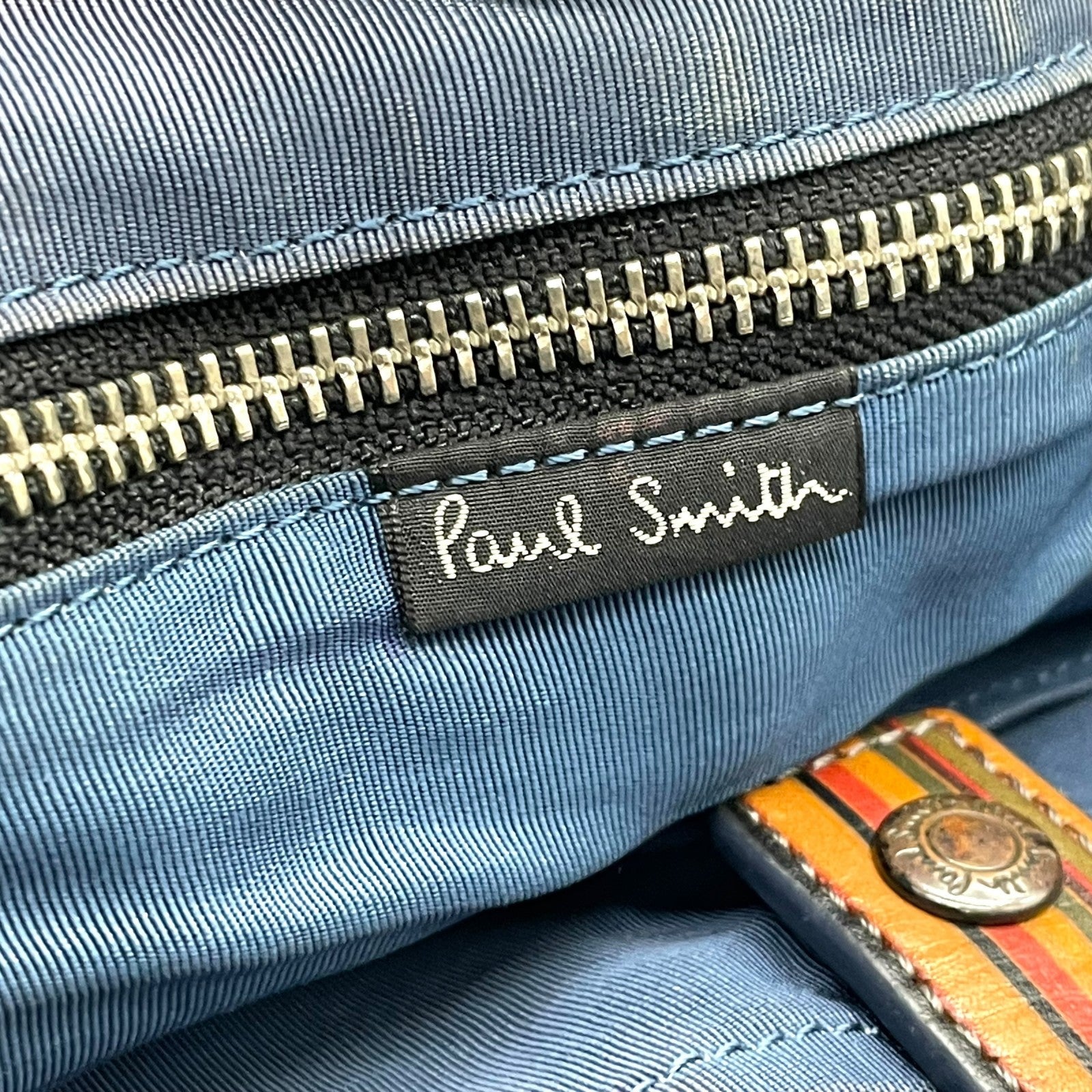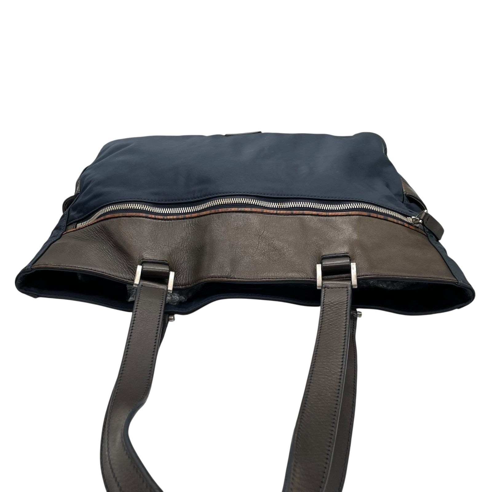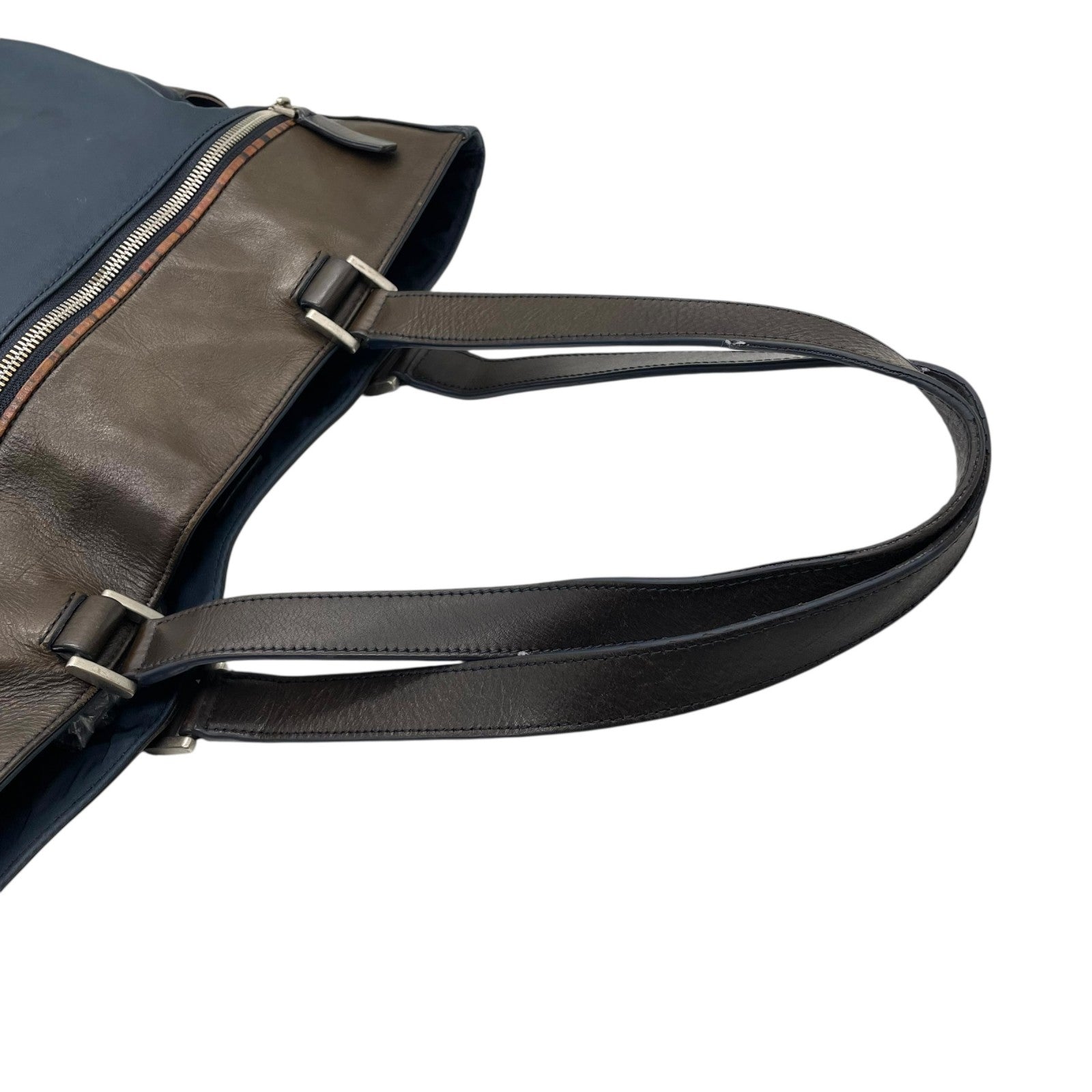 Paul Smith ポールスミス ZIP SIGNATURE ジップシグネチャー トートバッグ ビジネストート 紺 ネイビー 茶 ブラウン マルチストライプ ナイロン レザー シルバー金具 肩掛け可 メンズ X2